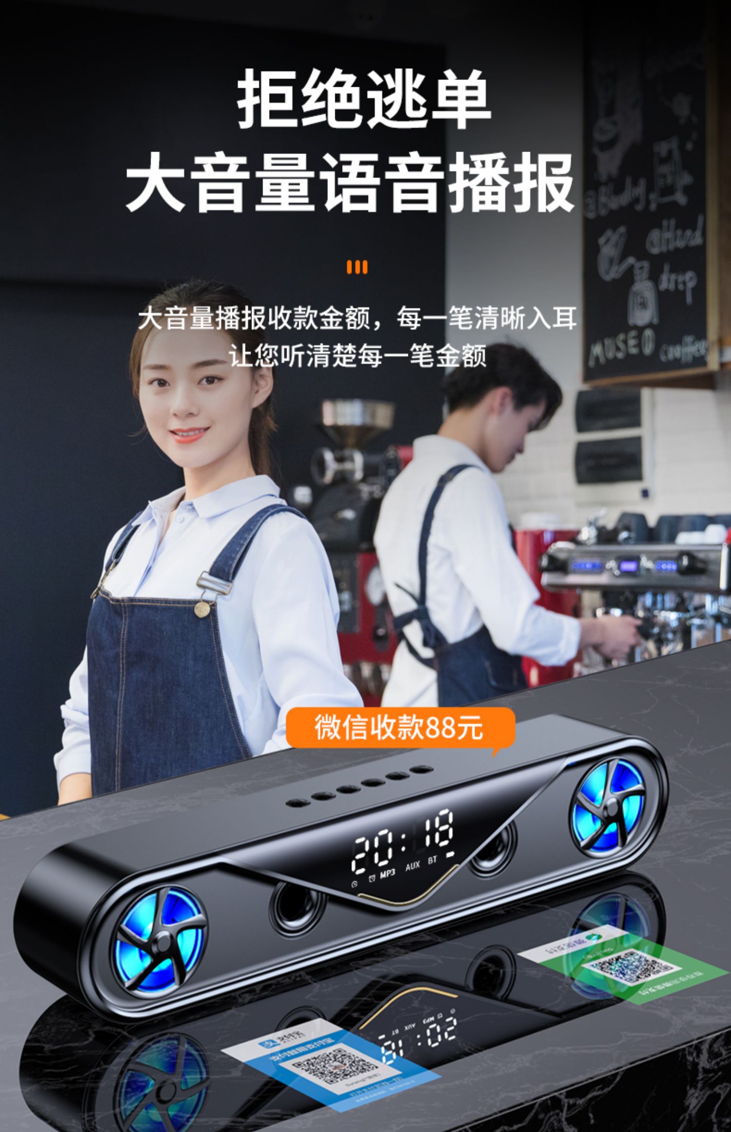 • 商品名称:科凌新款无线蓝牙音箱家用迷你小音响微信收款语音大音量支付宝低音炮店铺专用小型闹钟无线车载户外播报器