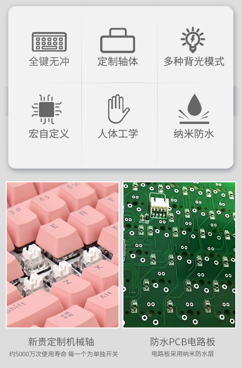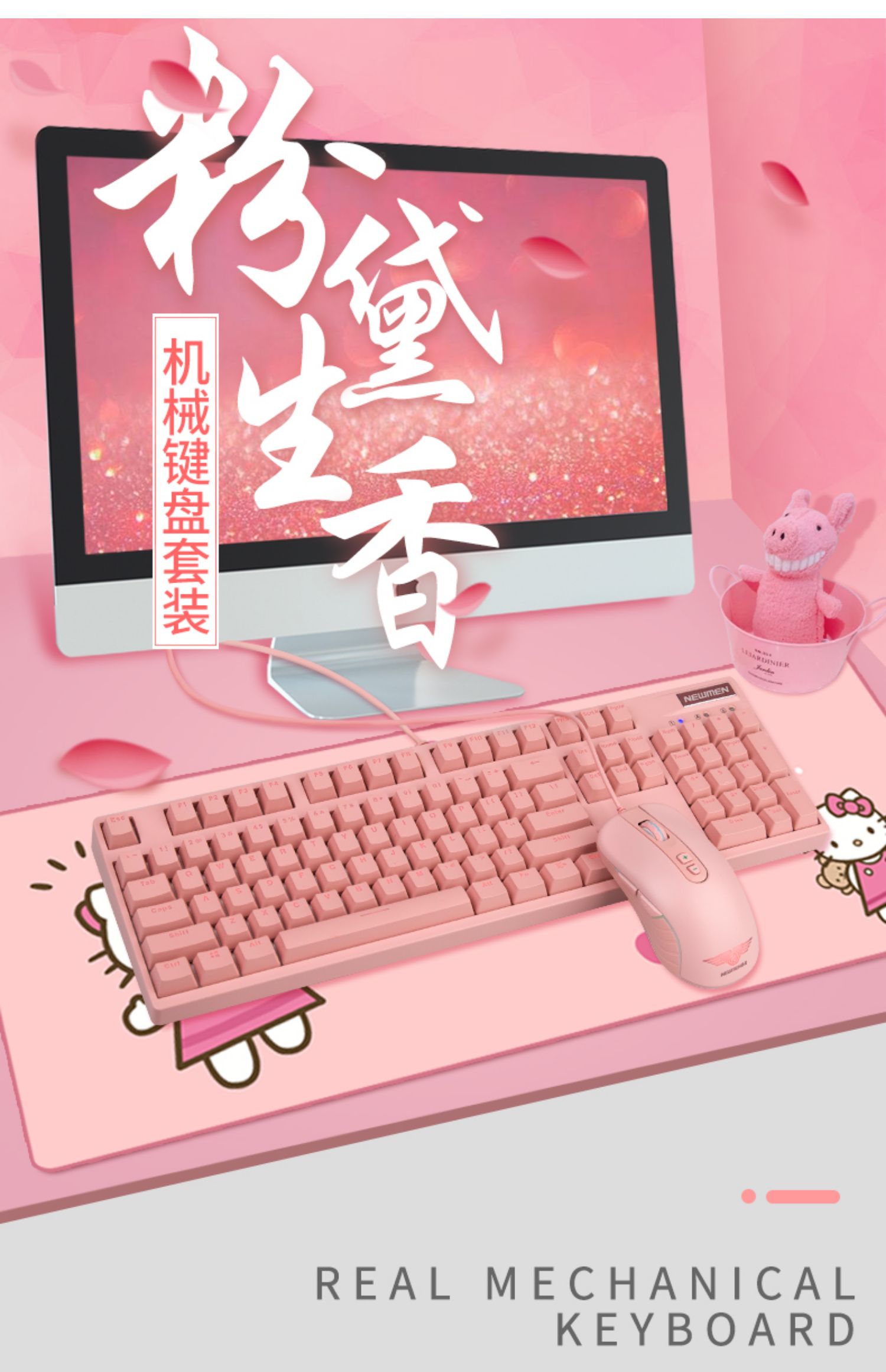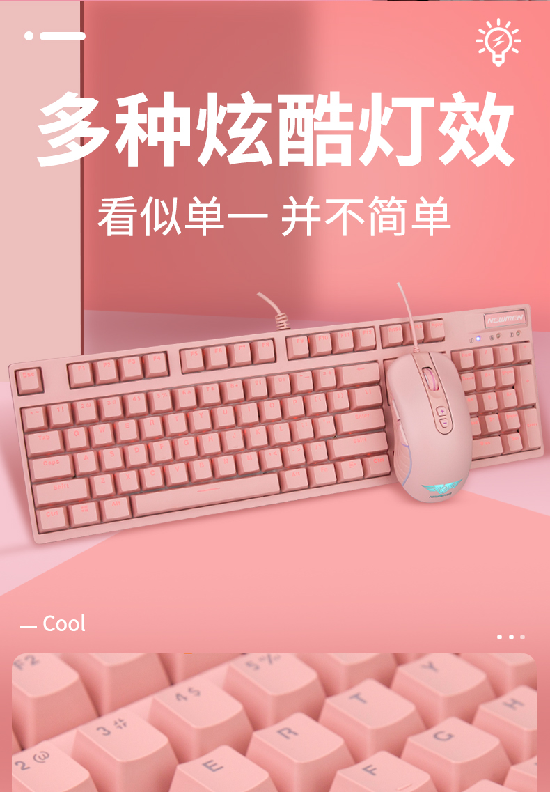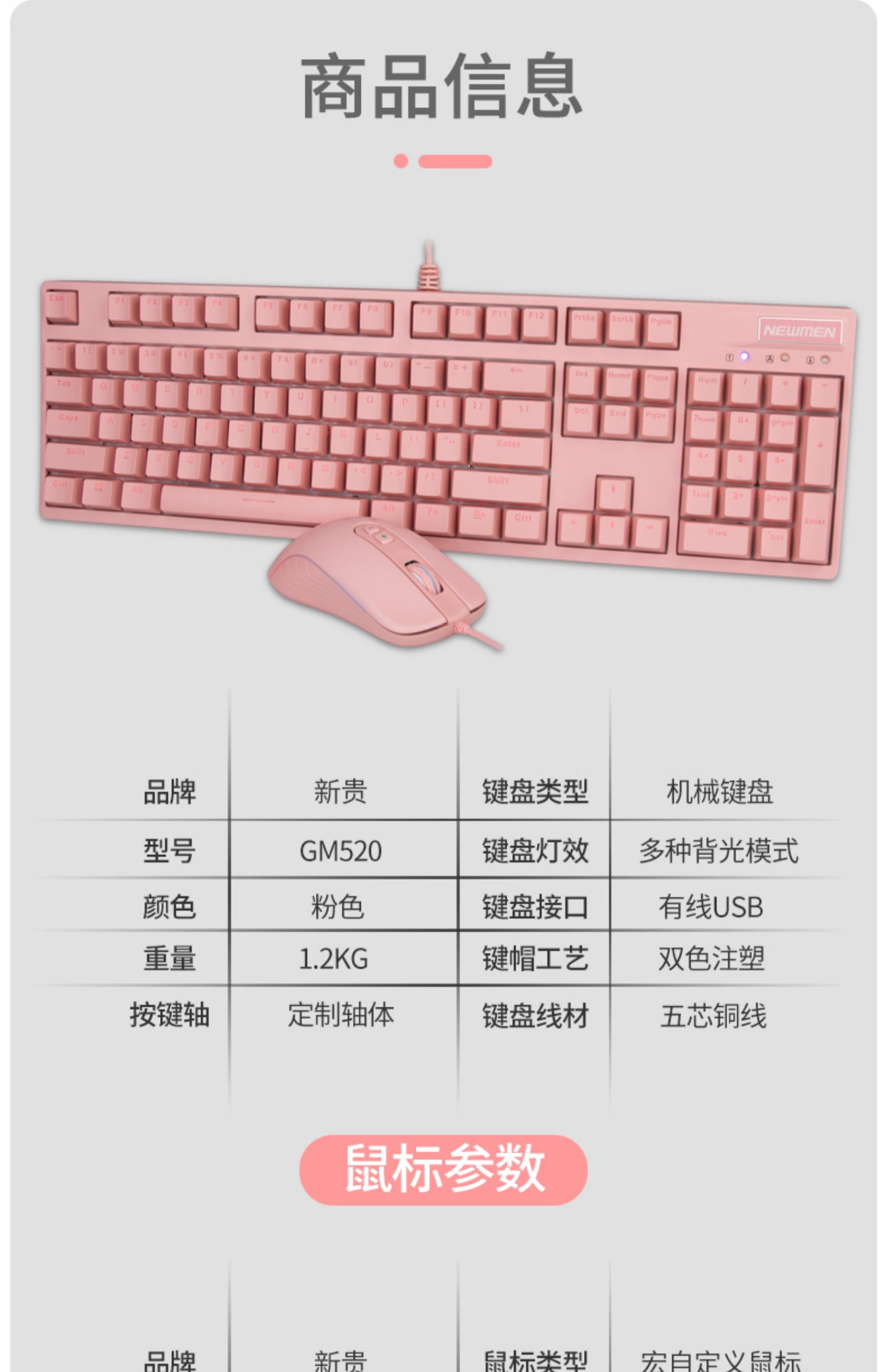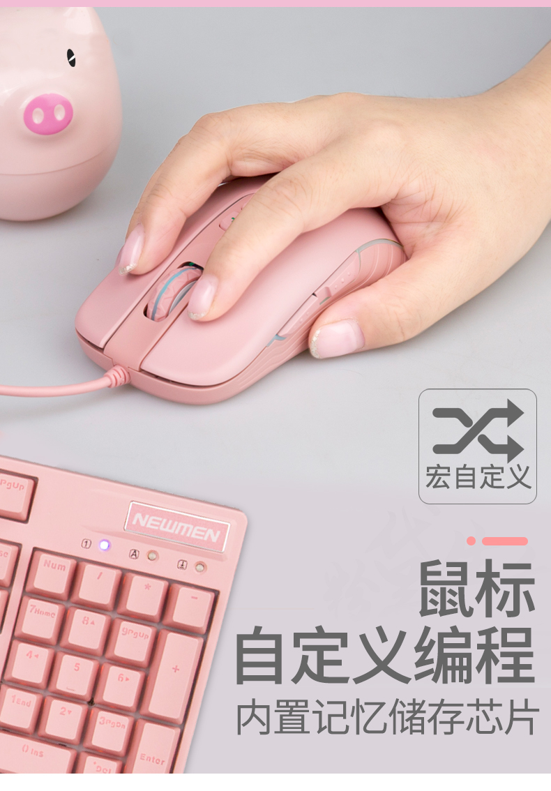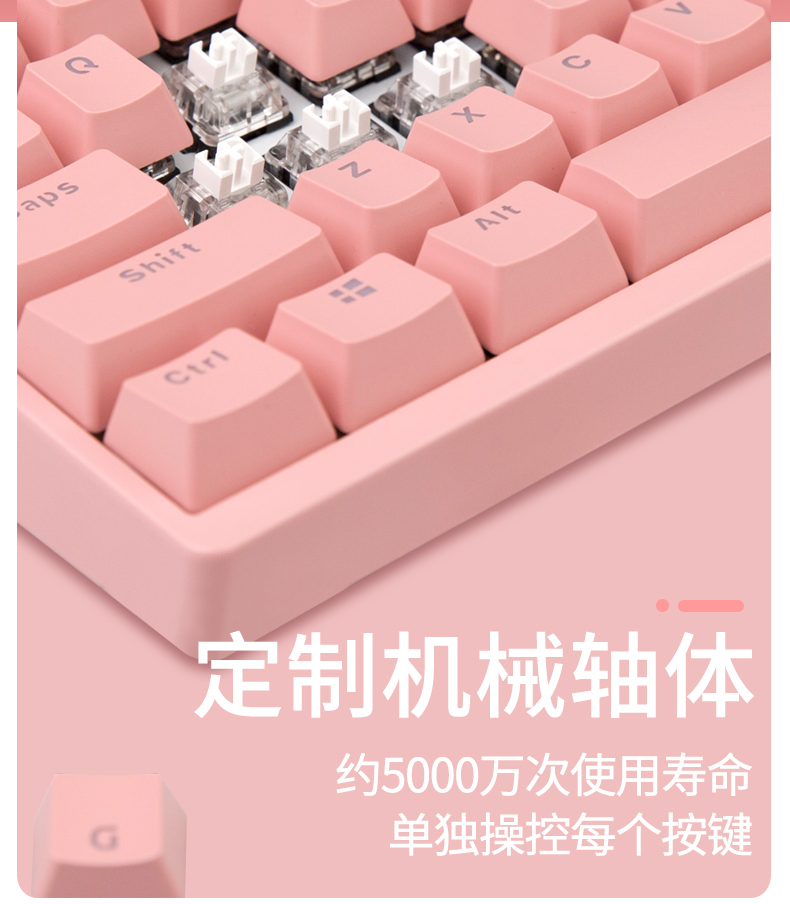 • 商品名称:新贵GM520可爱女生粉色插拔轴真机械键盘青轴电竞笔记本游戏有线