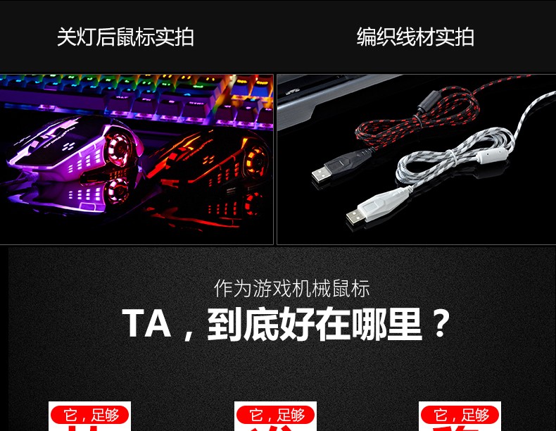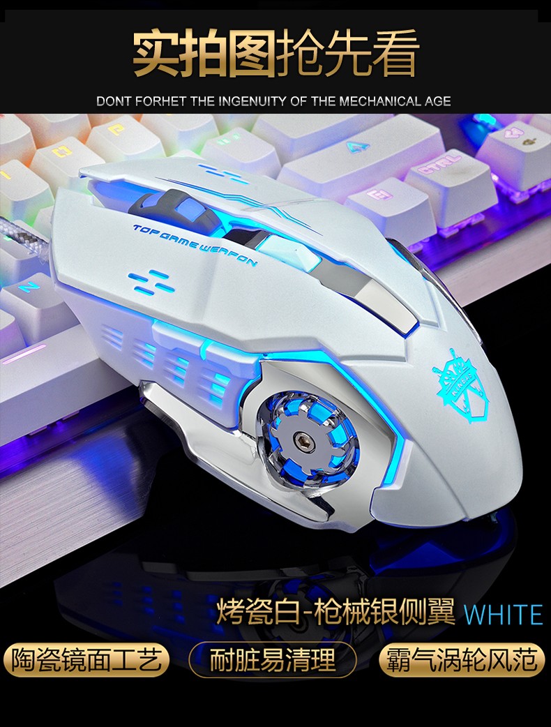 • 商品名称:机械牧马人游戏电竞有线鼠标宏专用家用办公男女生台式电脑笔记本吃鸡静音无声网吧适用惠普华硕戴尔联想粉色