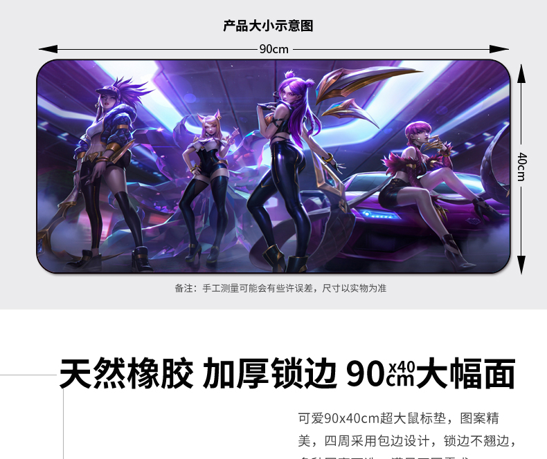 • 商品名称:超大号鼠标垫游戏电竞桌垫加大加厚可爱动漫卡通创意家用键盘垫