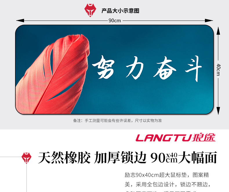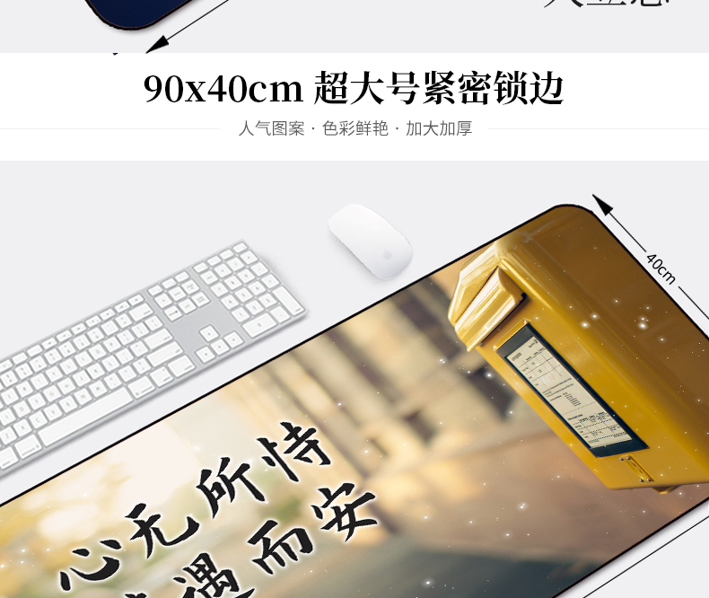 • 商品名称:办公励志超大鼠标垫加厚锁边定制90x40游戏家用可爱创意写字桌垫