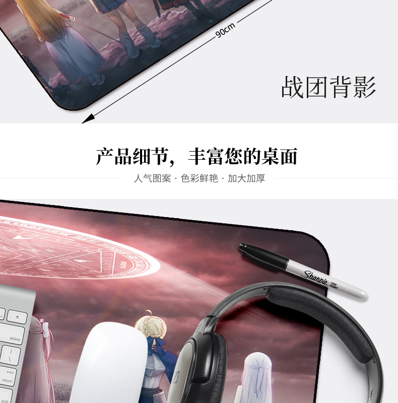 • 商品名称:鼠标垫超大号加厚锁边加大游戏电竞卡通动漫少女可爱家用创意桌垫