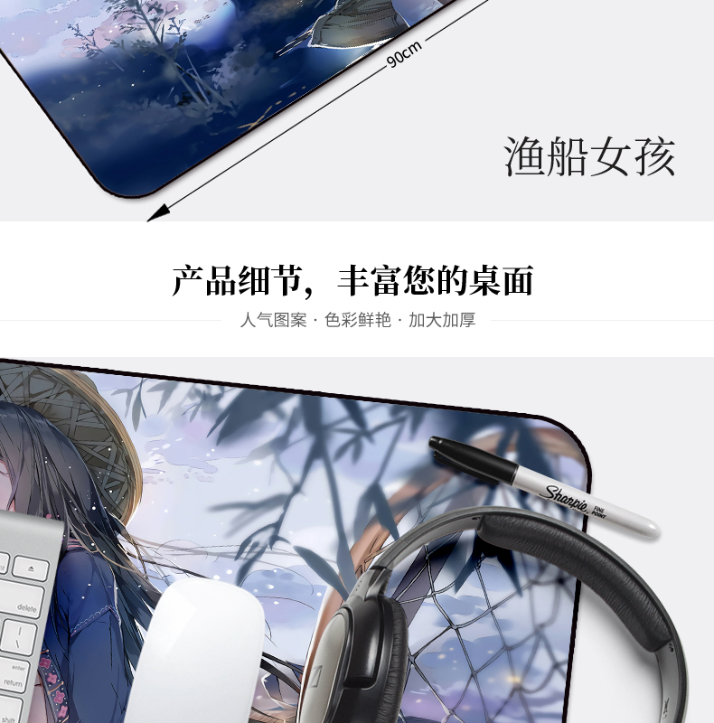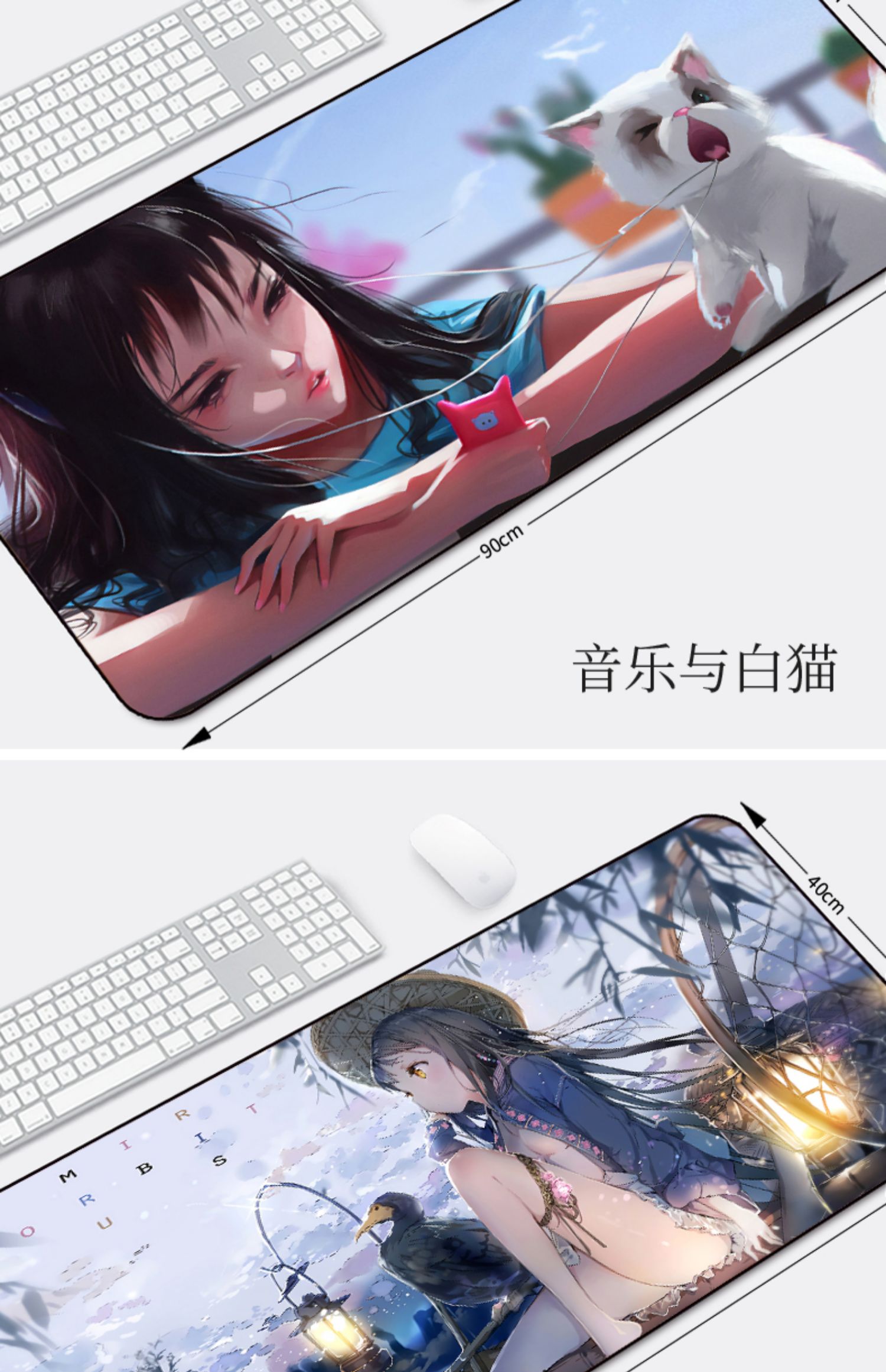 • 商品名称:鼠标垫超大号定制电竞游戏卡通少女可爱加厚锁边家用电脑桌键盘垫