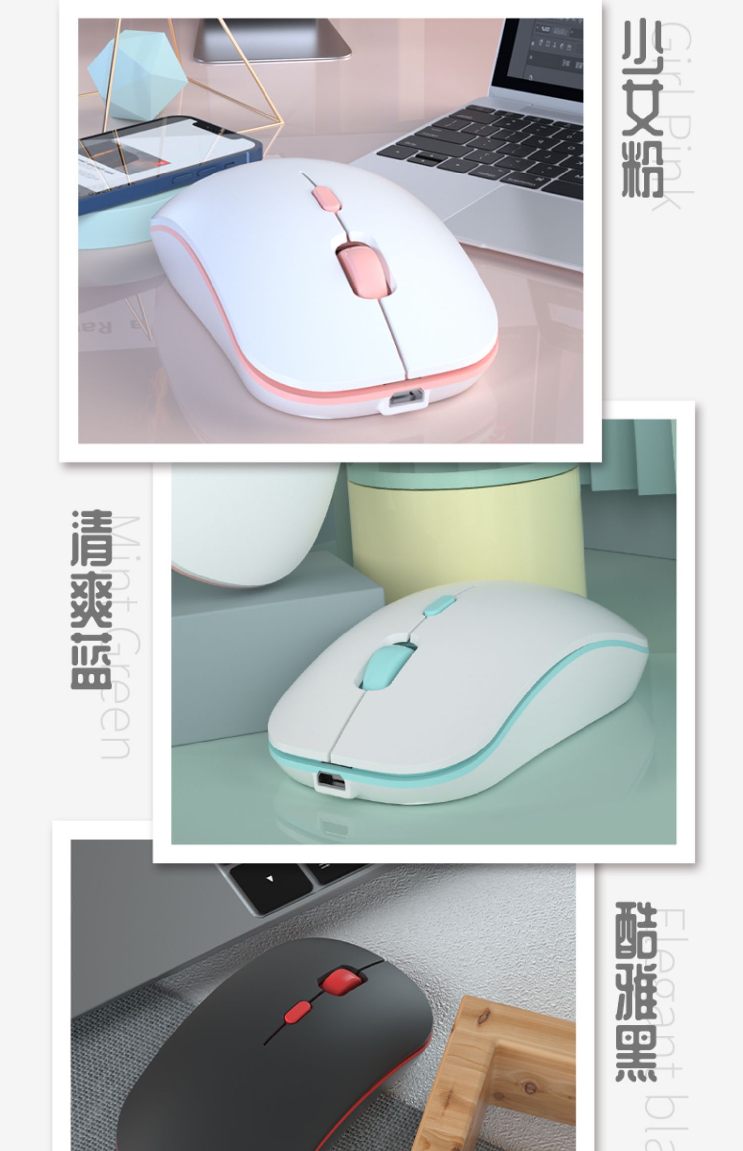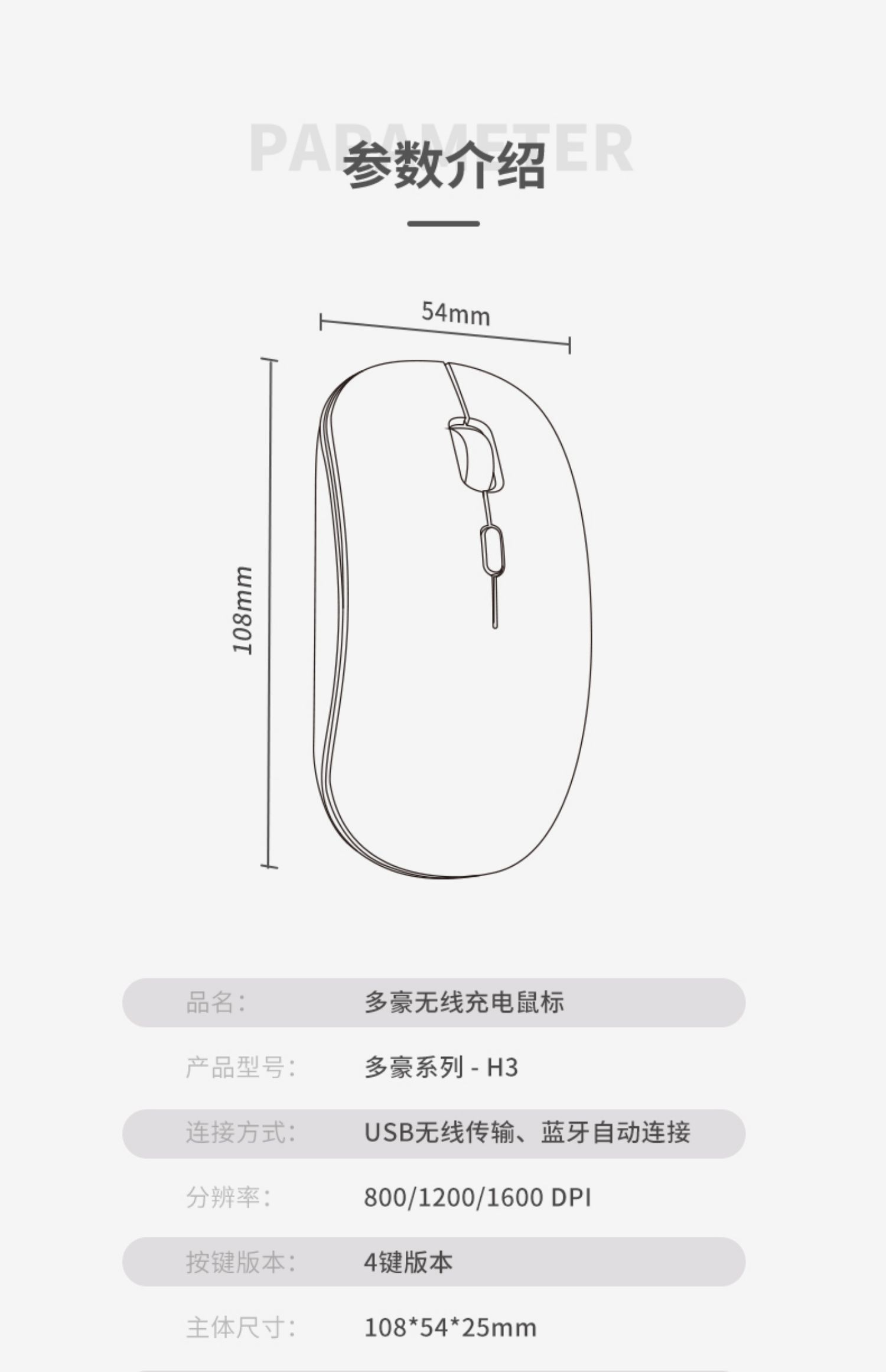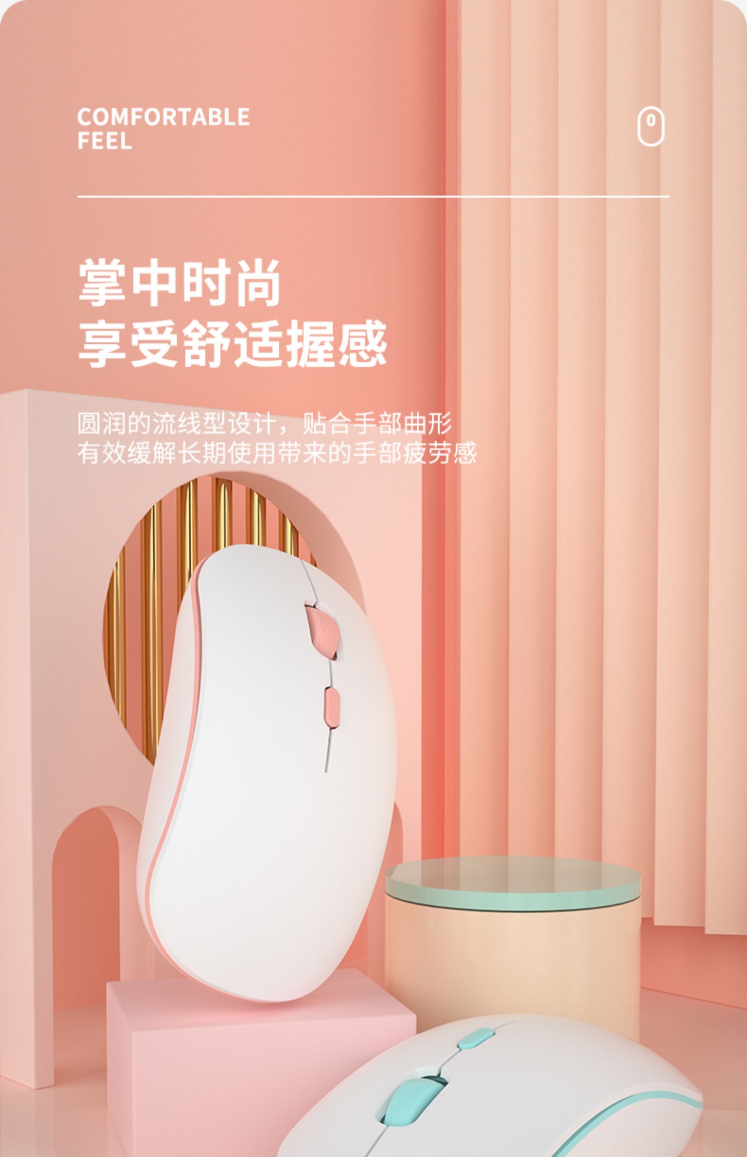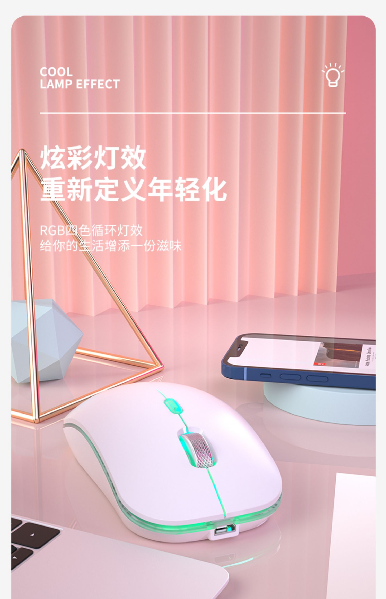 • 商品名称:可充电无线鼠标 静音无声笔记本电脑台式家用办公游戏适用华为苹果惠普联想男女生通用可爱 无限鼠标蓝牙双模