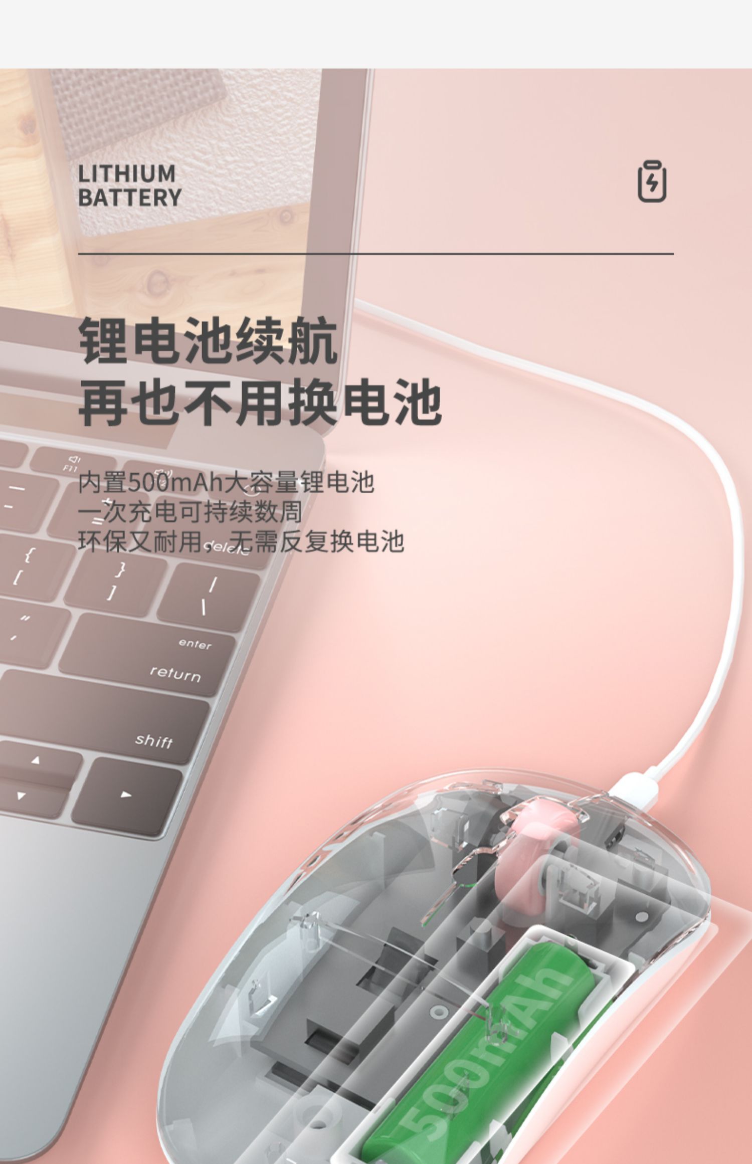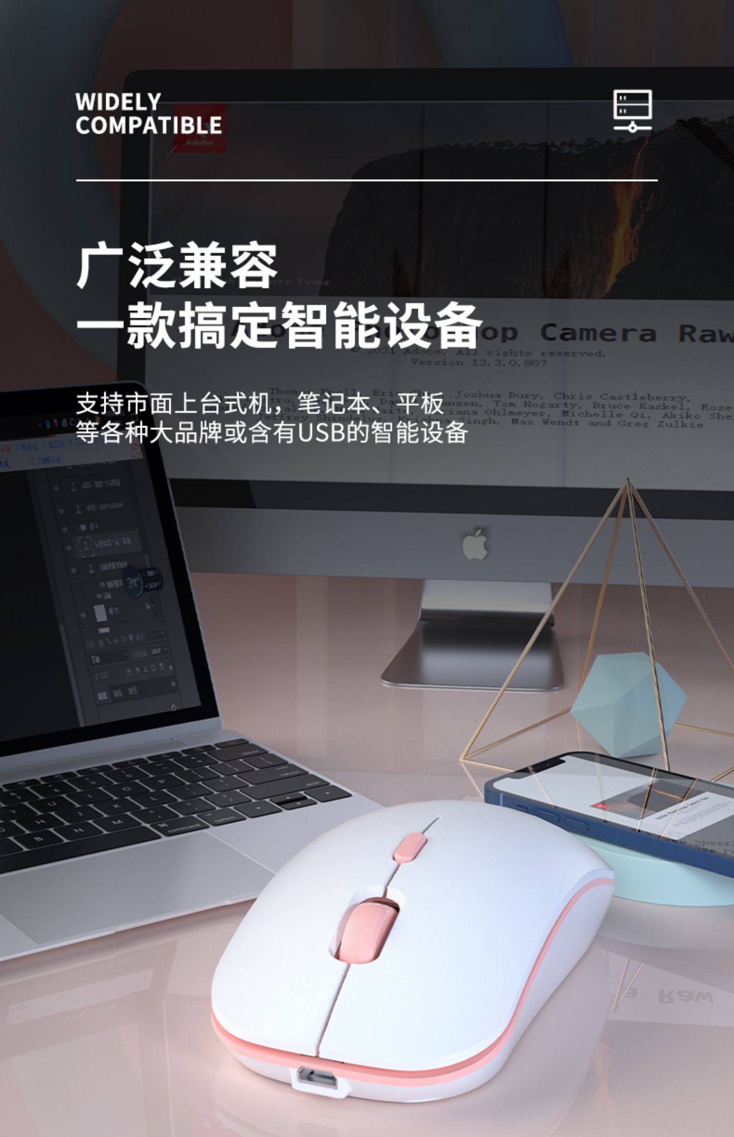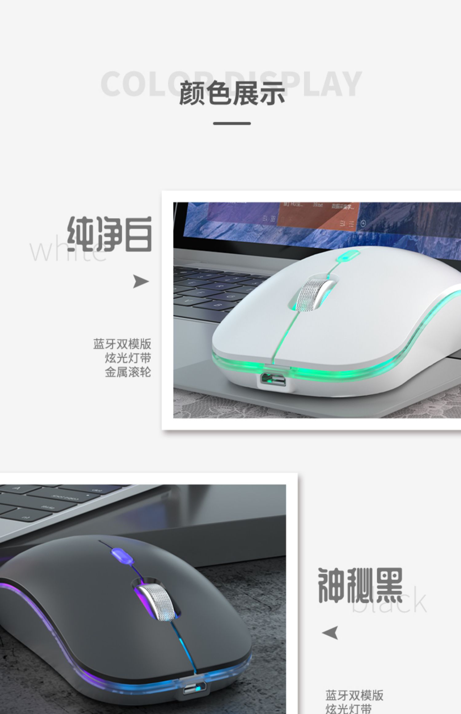 • 商品名称:可充电无线鼠标 静音无声笔记本电脑台式家用办公游戏适用华为苹果惠普联想男女生通用可爱 无限鼠标蓝牙双模