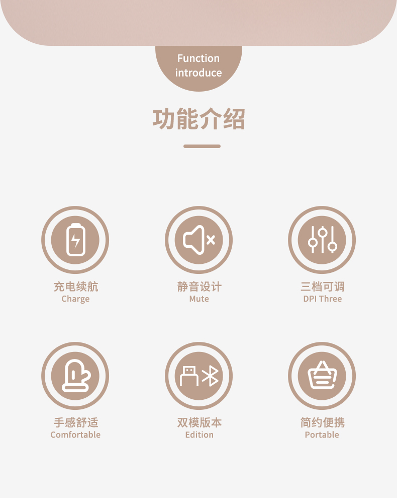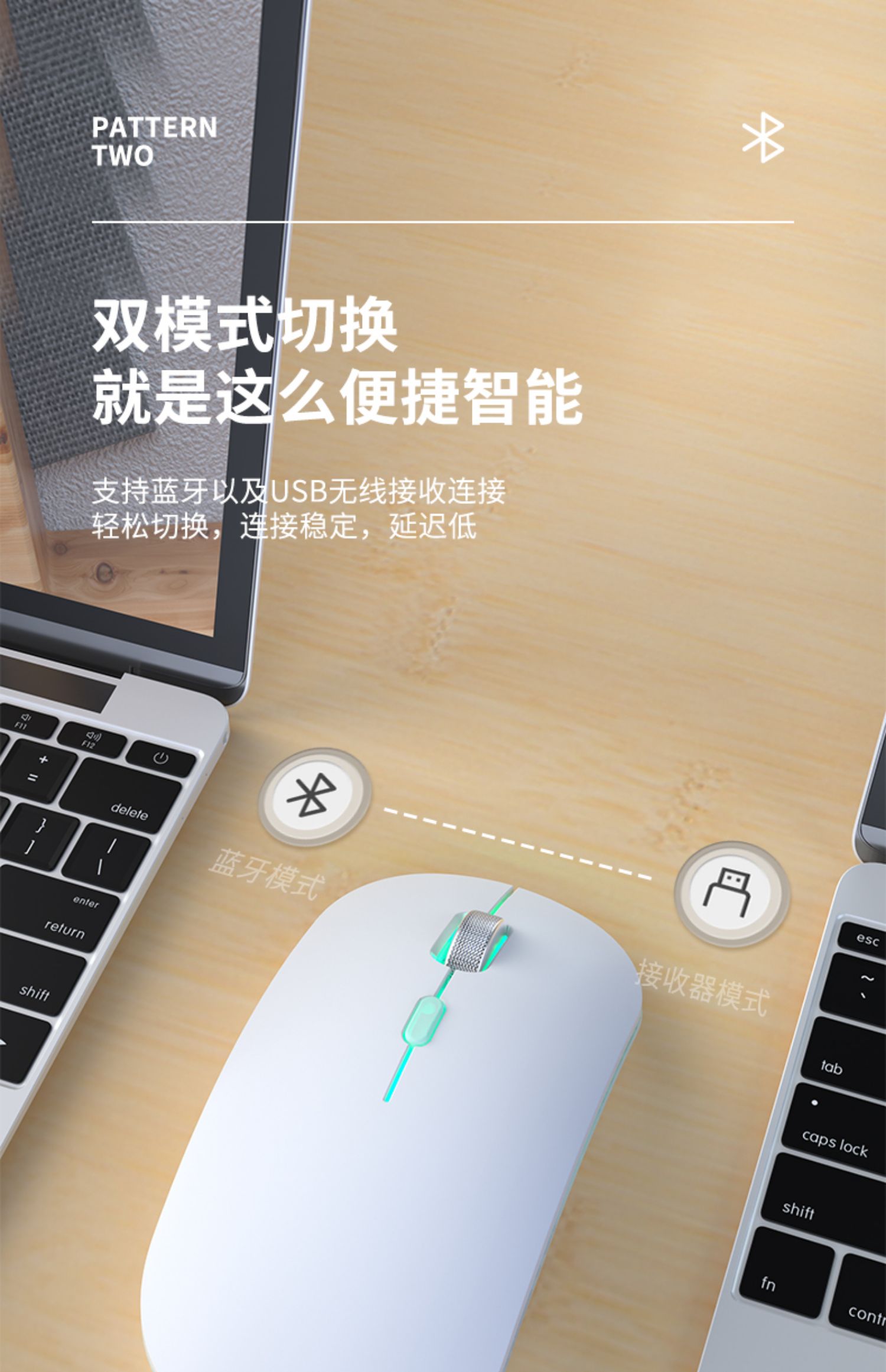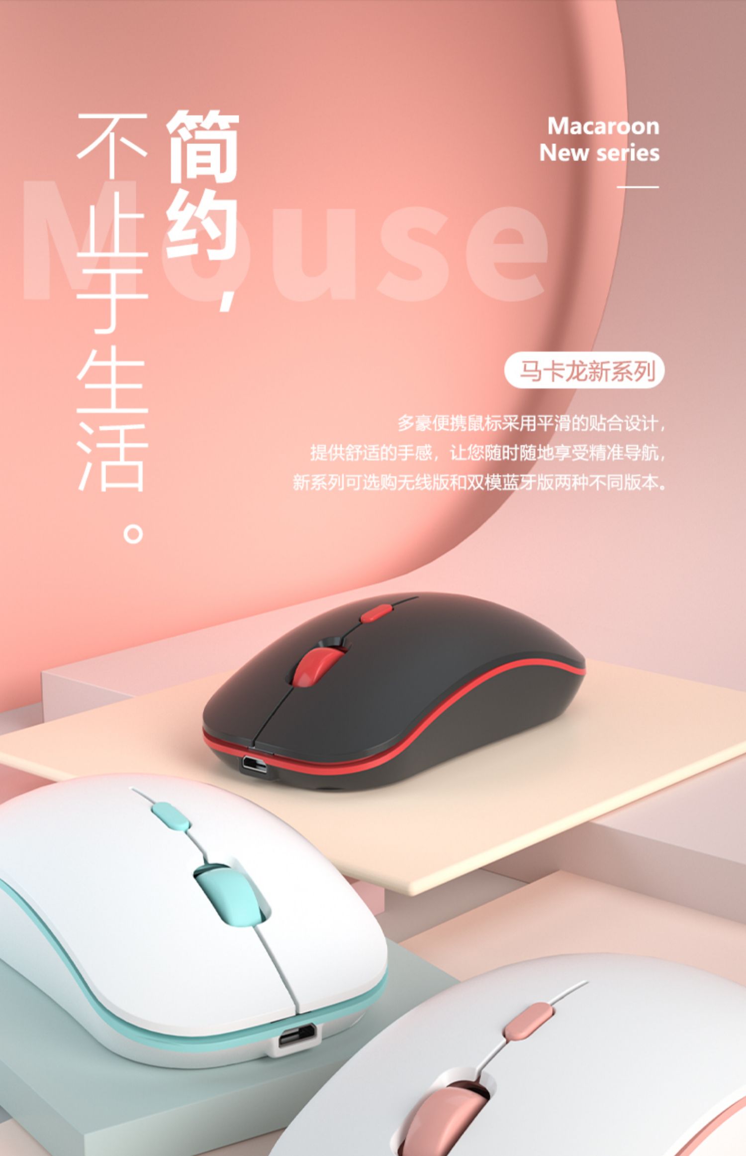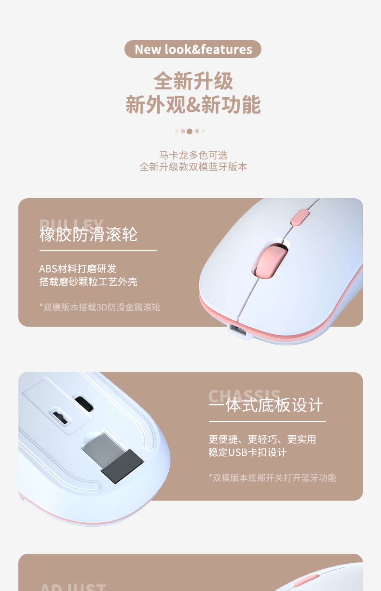 • 商品名称:可充电无线鼠标 静音无声笔记本电脑台式家用办公游戏适用华为苹果惠普联想男女生通用可爱 无限鼠标蓝牙双模