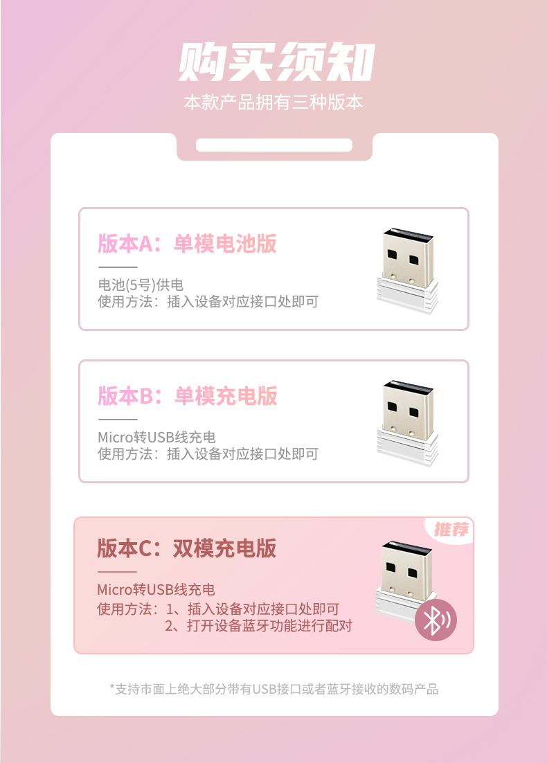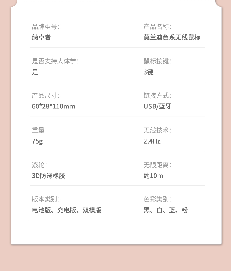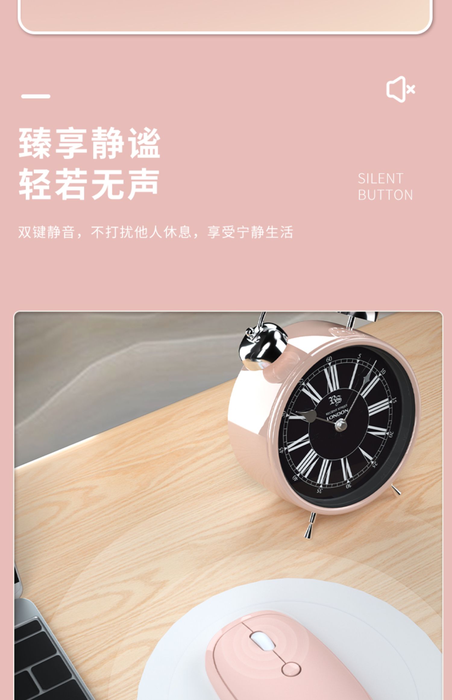 • 商品名称:无线鼠标可充电式 静音无声笔记本电脑台式家用办公商务游戏适用华为联想惠普苹果通用女生可爱 蓝牙无限鼠标