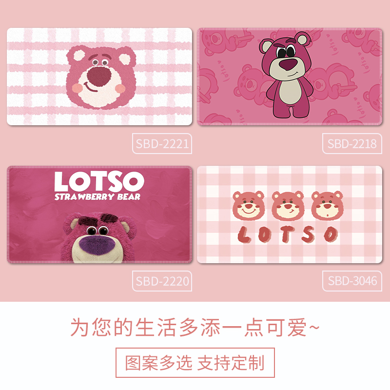 草莓熊超大鼠标垫女生高颜值动漫卡通鼠标垫子可爱定制电脑办公写字桌垫学生护腕锁边电竞游戏ins风键盘垫