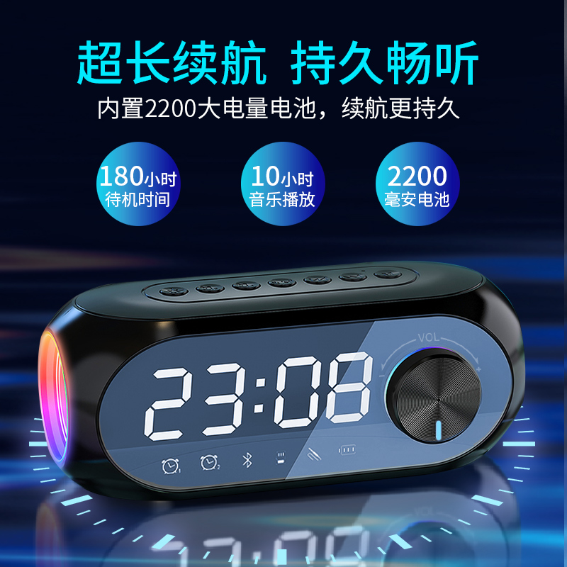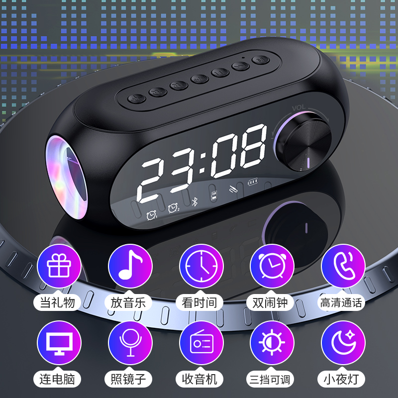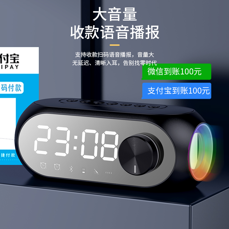 • 商品名称:无线蓝牙音响带镜面时间显示音乐闹钟家用手机超重低音炮收音机高音质便携迷你小型音箱二维码收钱语音播报器