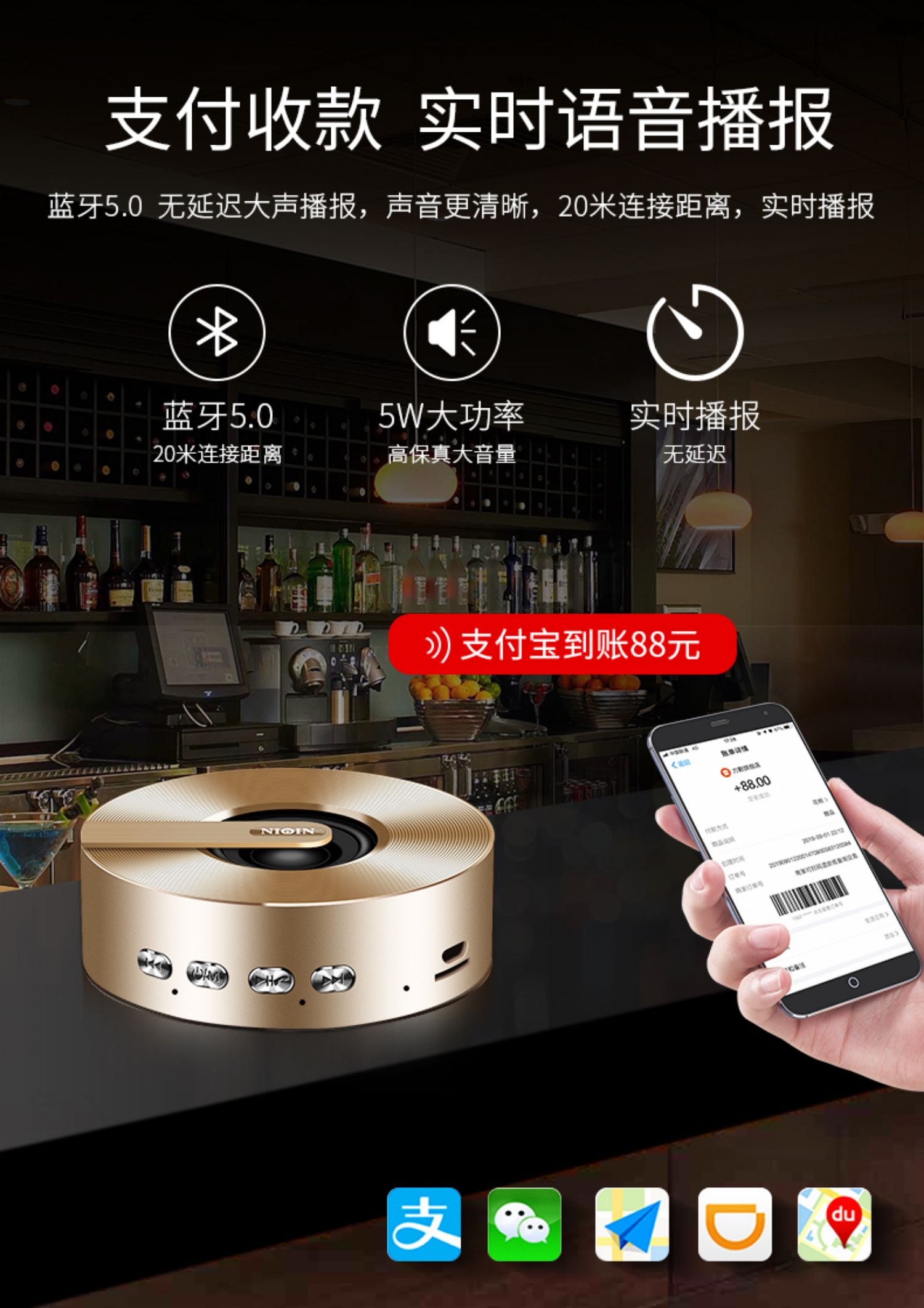 力勤无线蓝牙音箱大音量手机迷你便携式随身户外小型钢炮家用音响车载超重低音炮微信收钱收款语音播报提示器