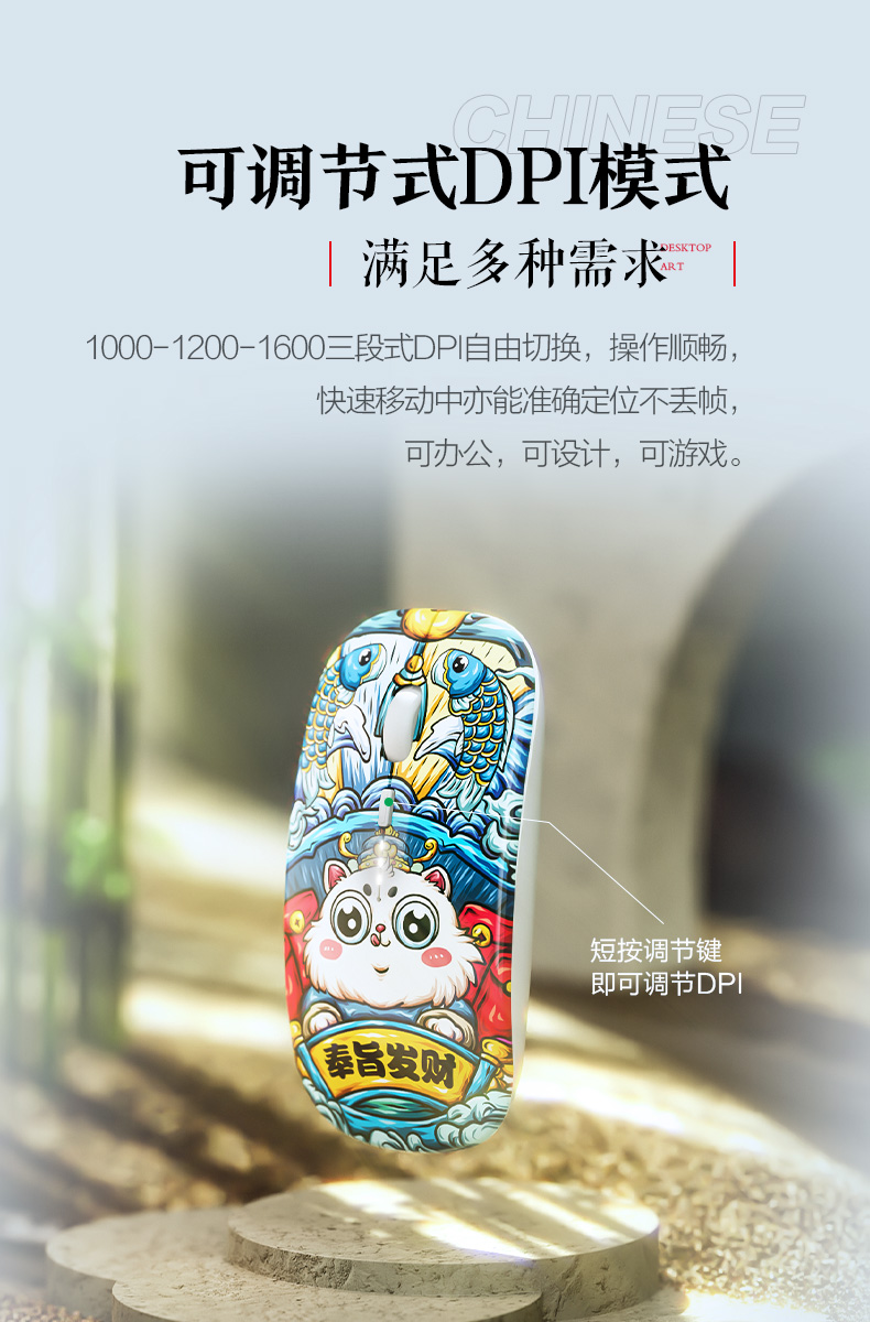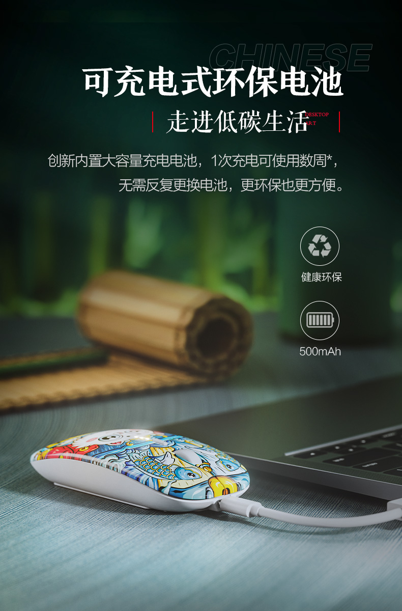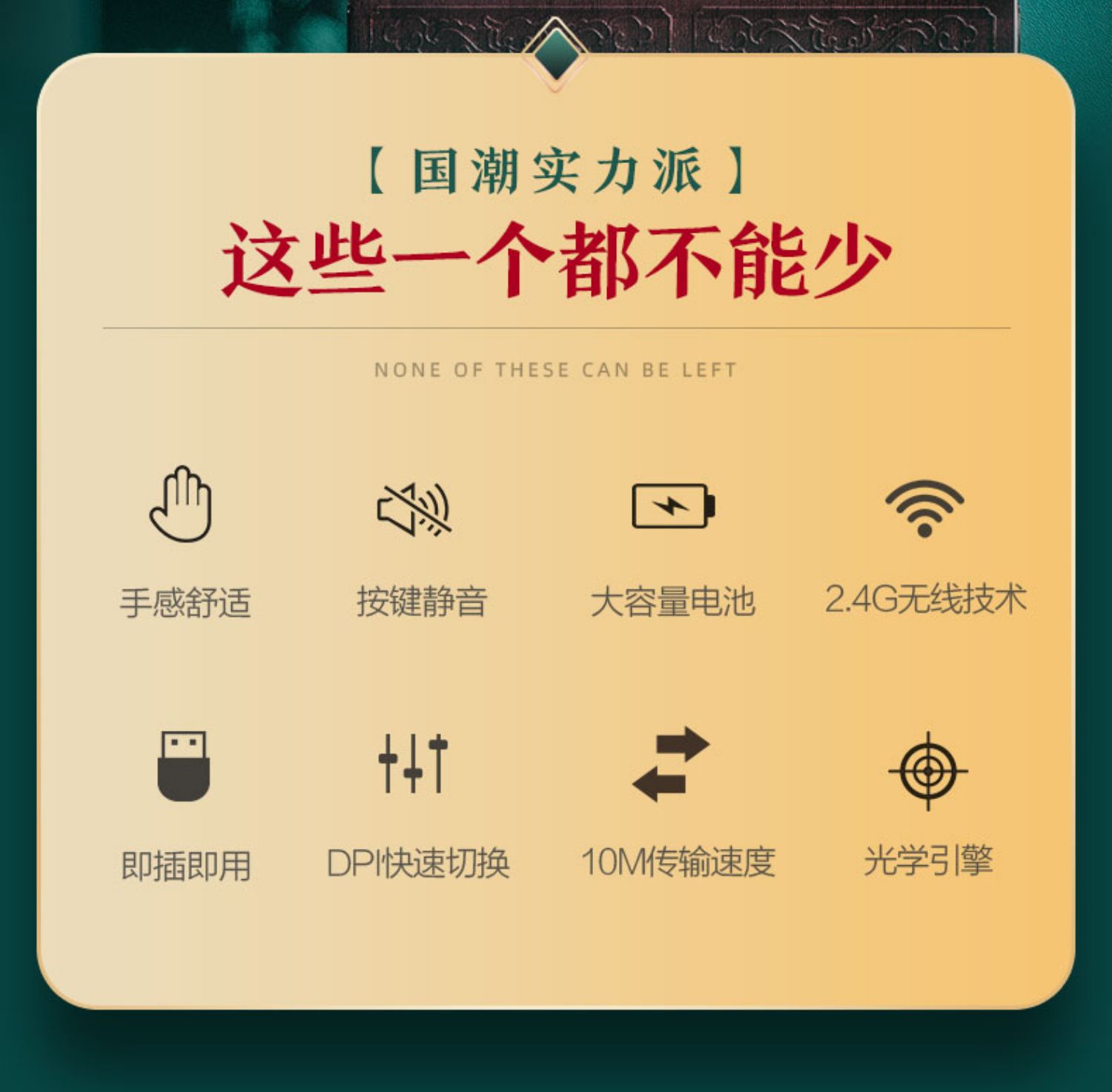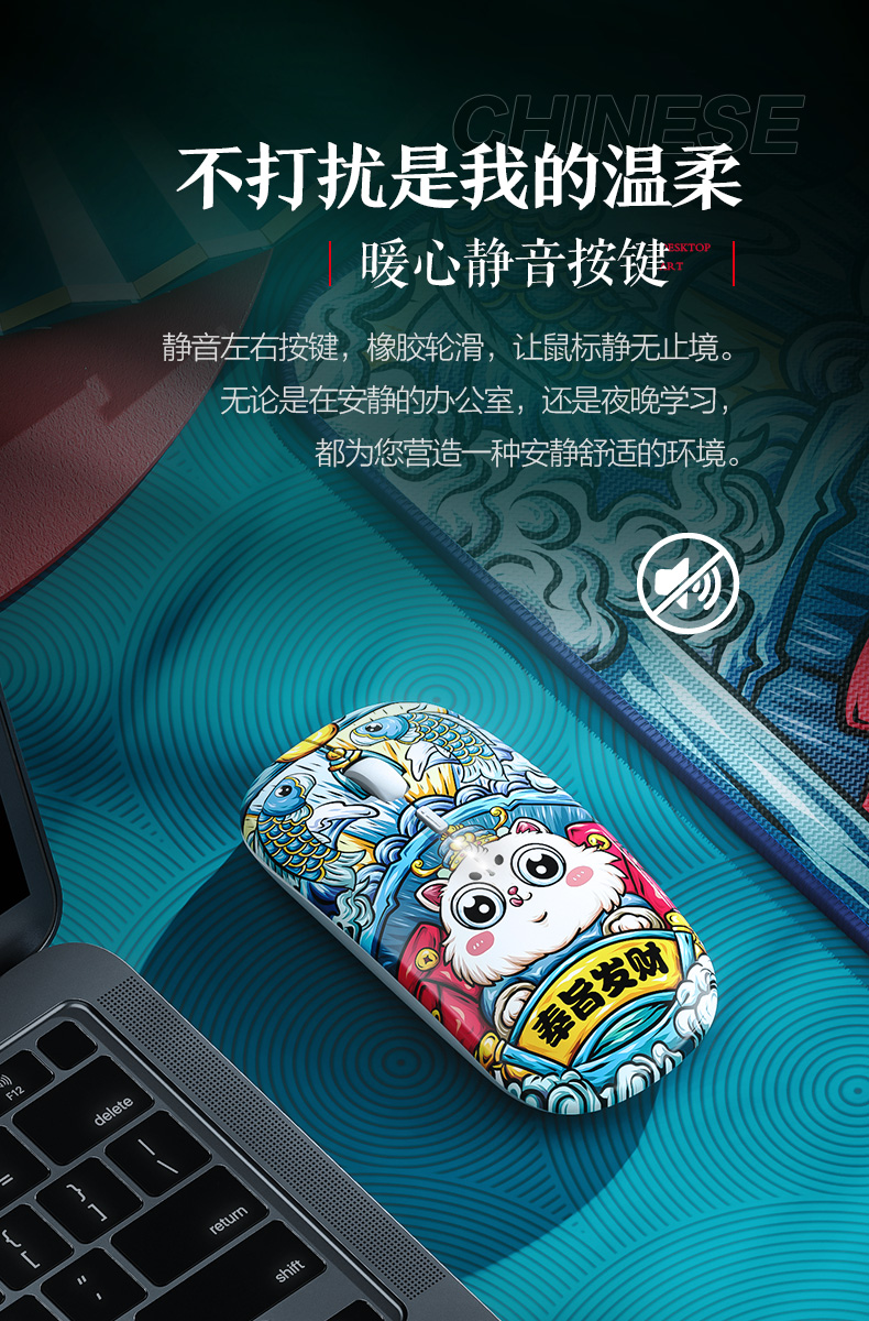 • 商品名称:【国潮国风联名款】英菲克M1G奉旨发财无线可充电式鼠标静音无声便携男女生可爱文艺笔记本台式电脑游戏办公