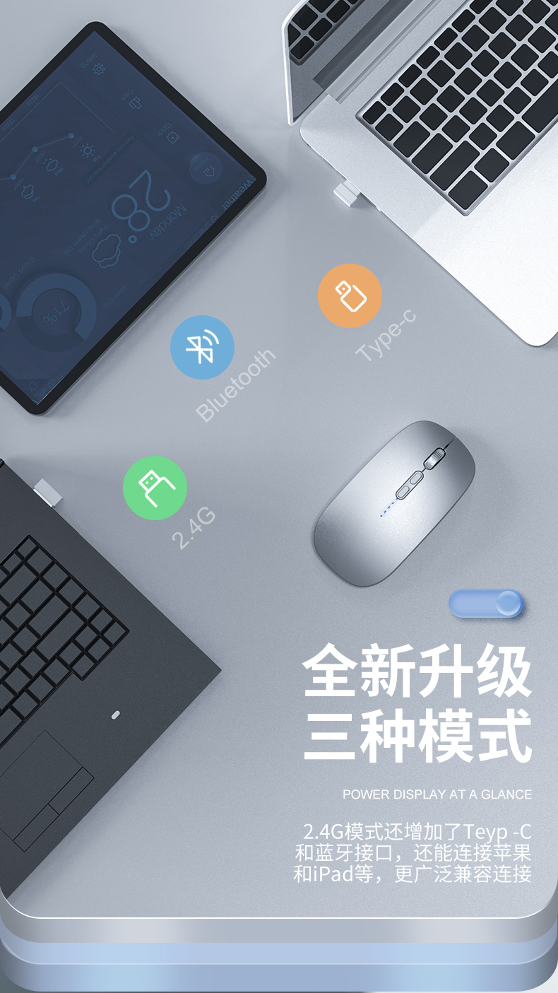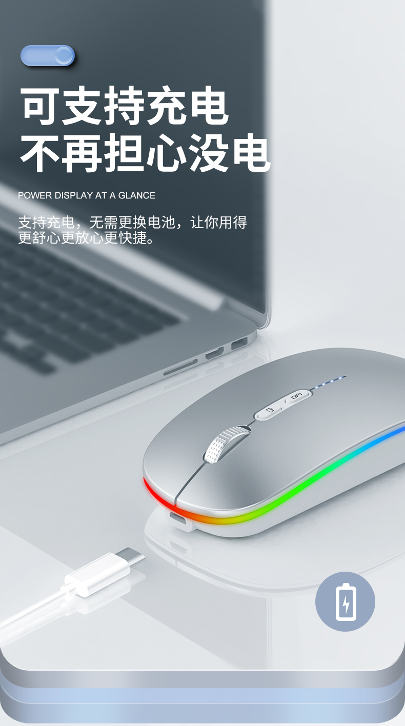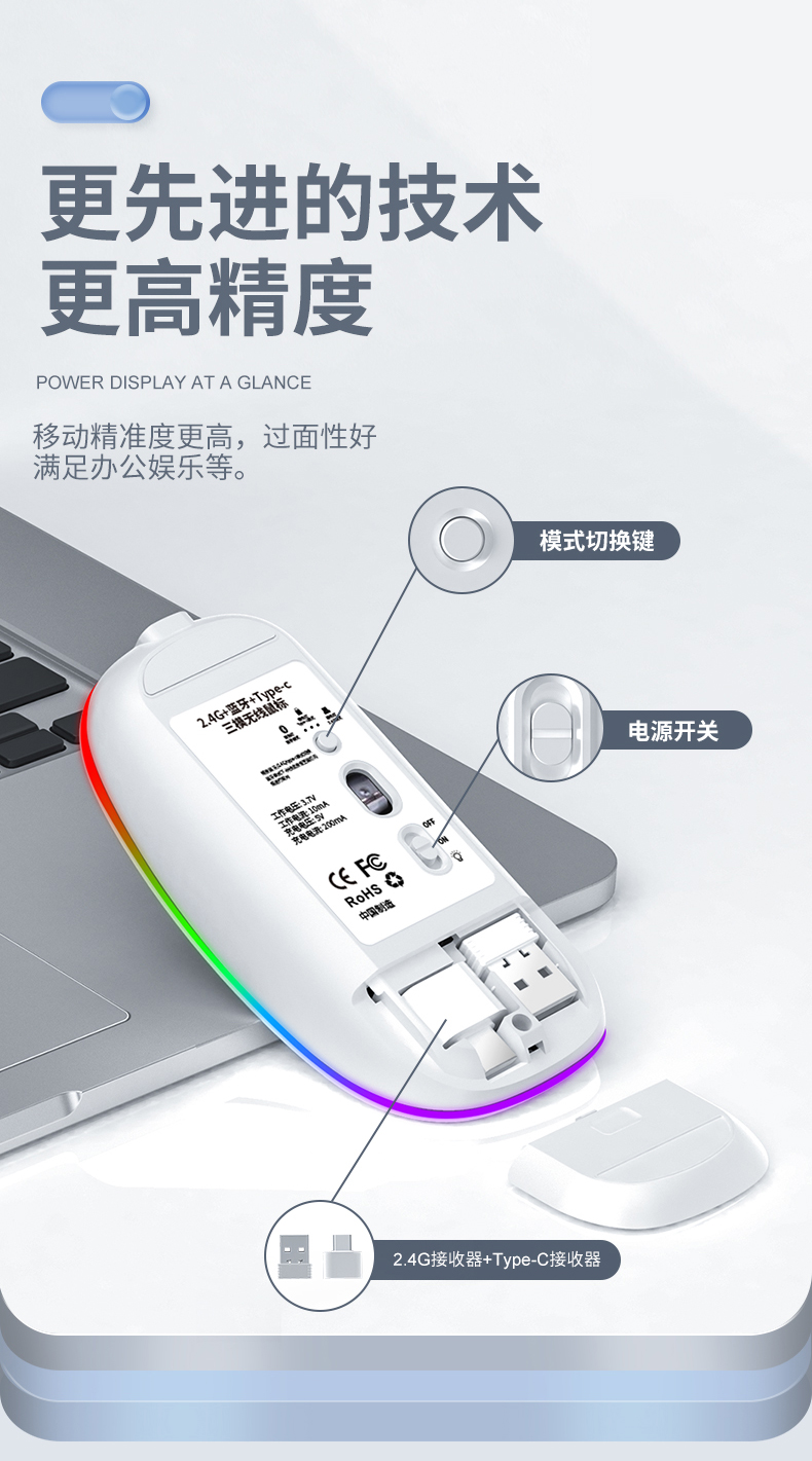 • 商品名称:真三模蓝牙无线鼠标静音发光可充电款女生男适用苹果小米联想华为