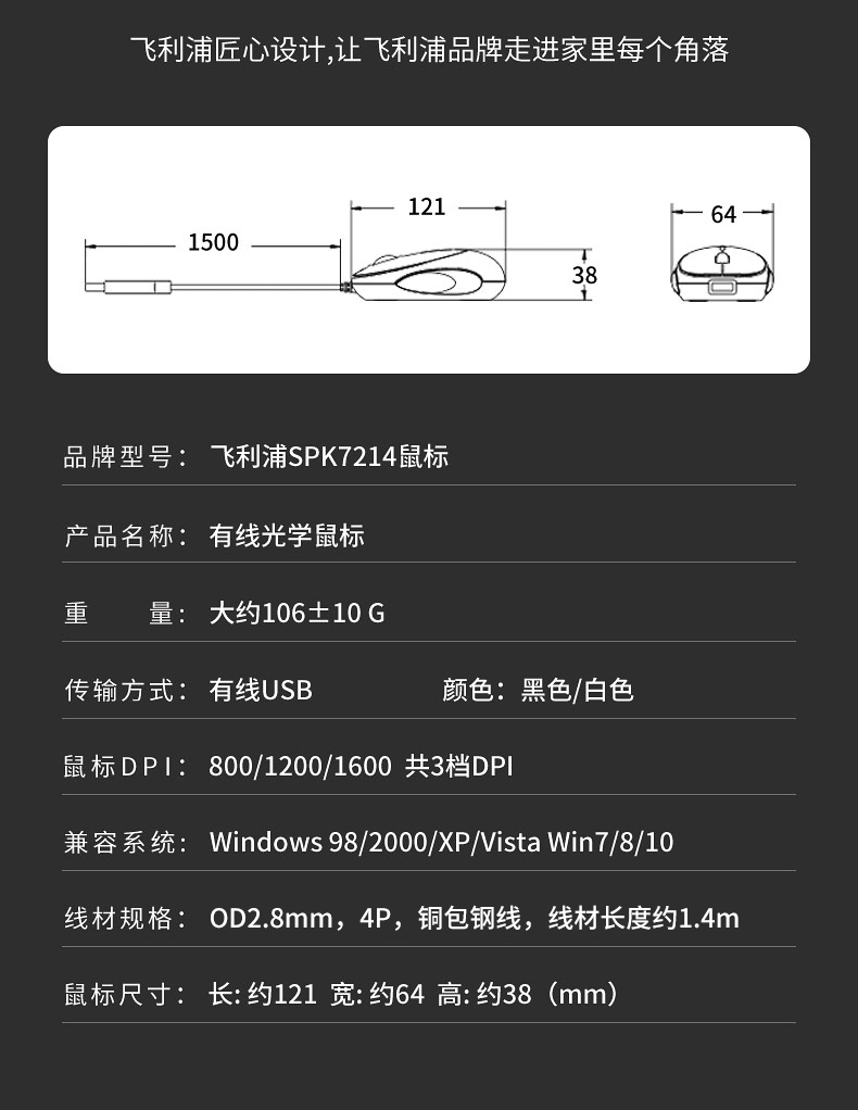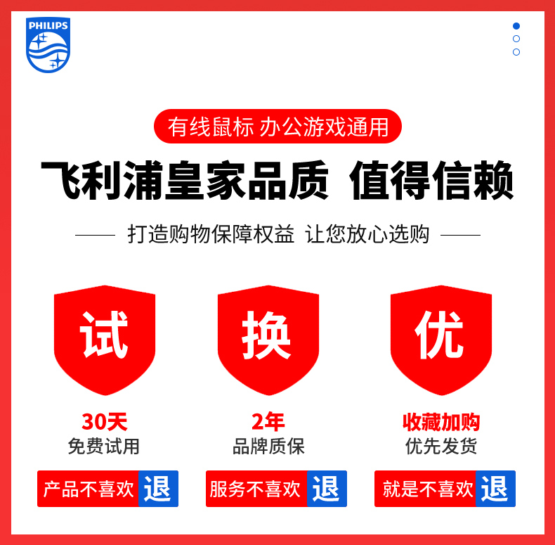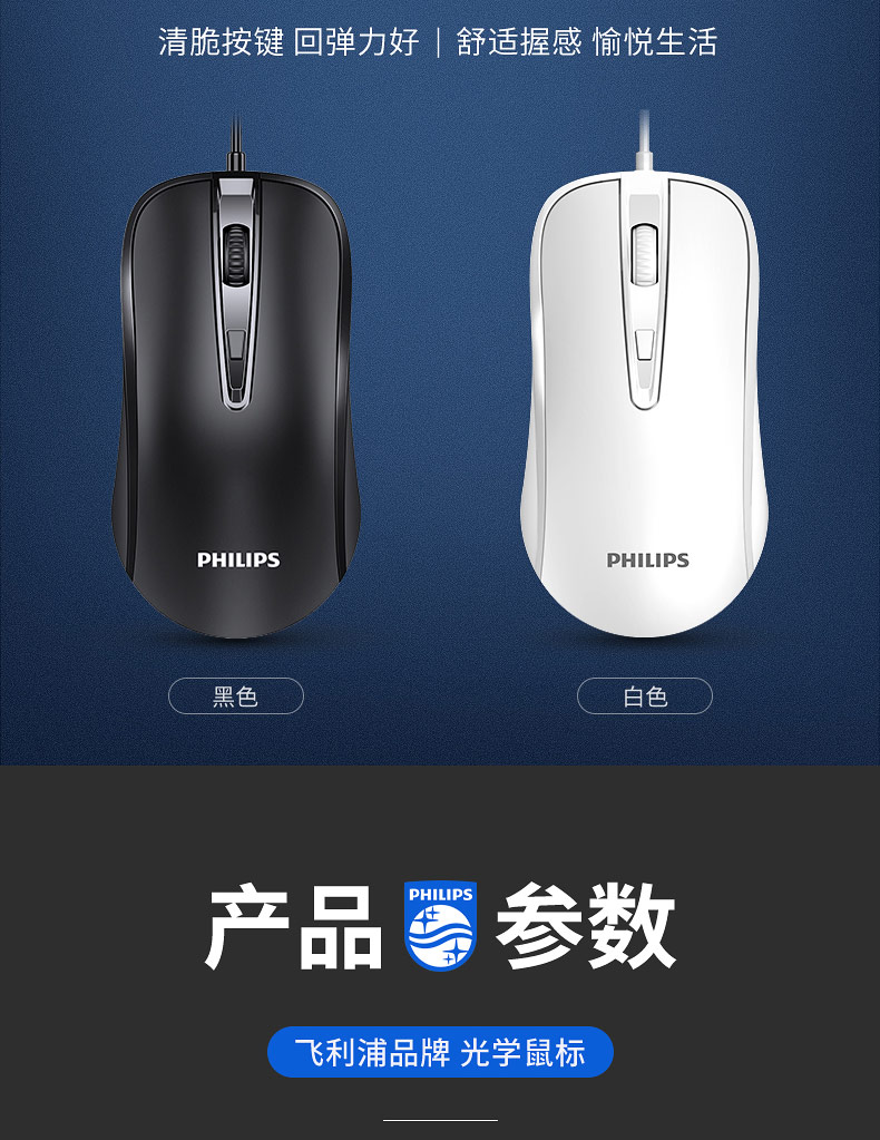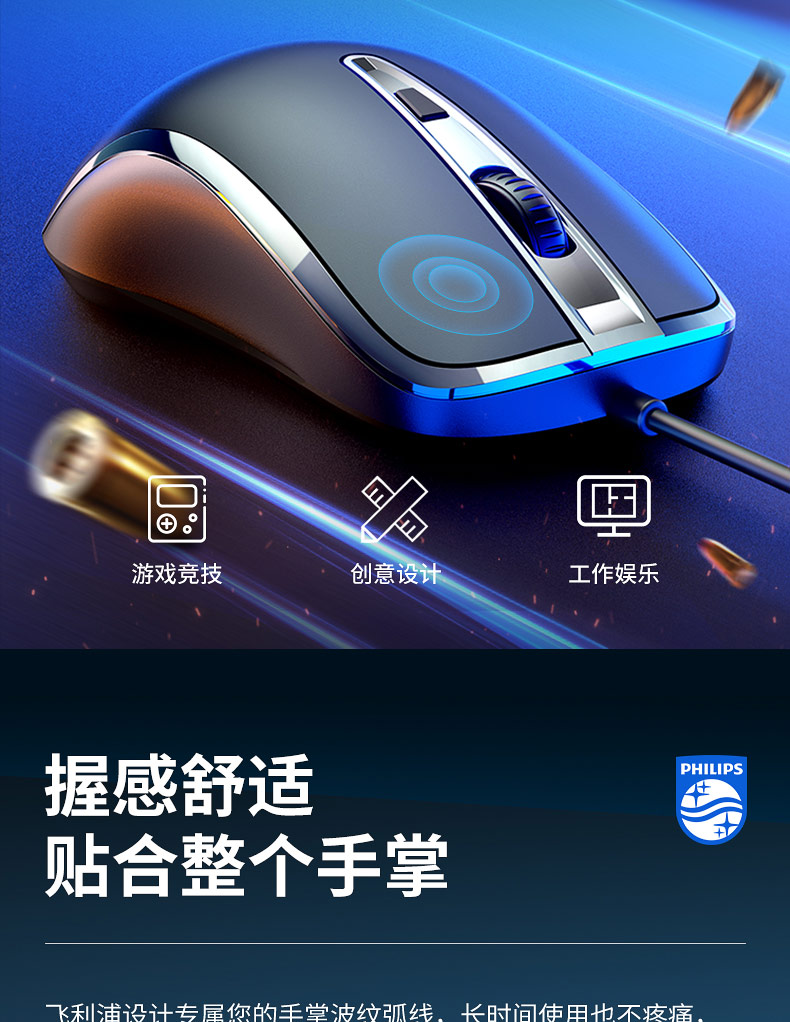 • 商品名称:飞利浦鼠标有线USB办公游戏cf专用机械电竞lol商务笔记本静音无声台式电脑适用于华为苹果联想华硕惠普男女生