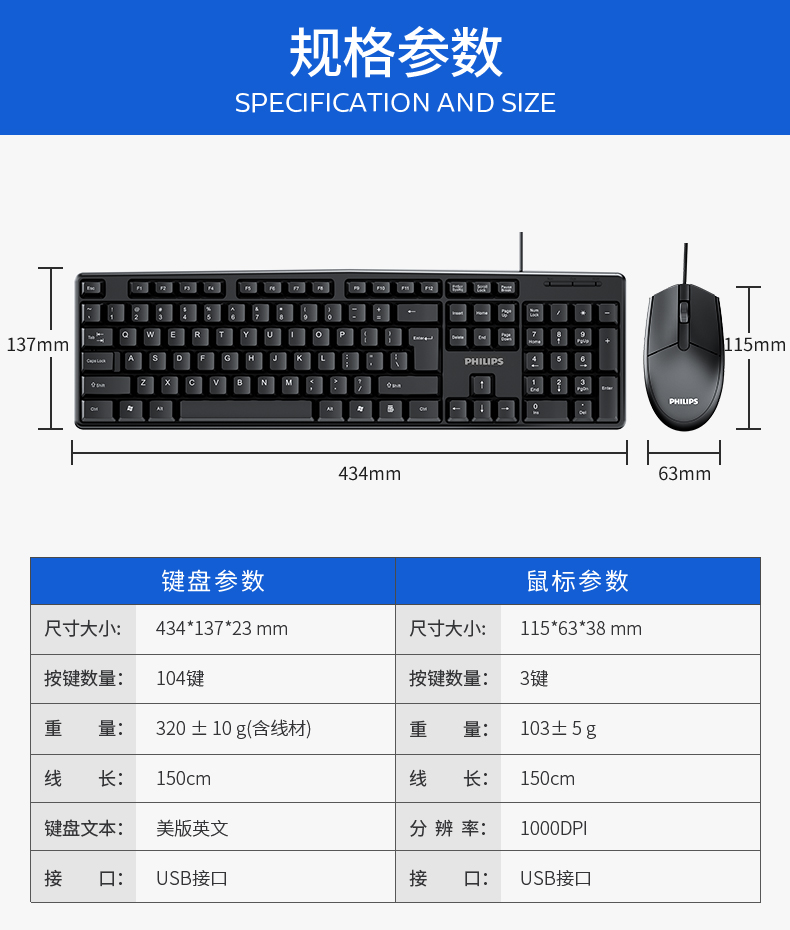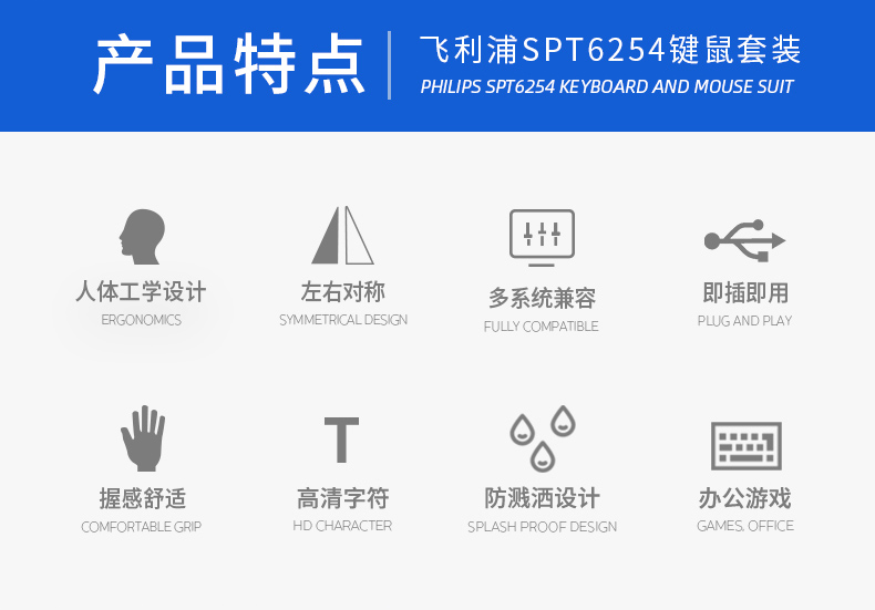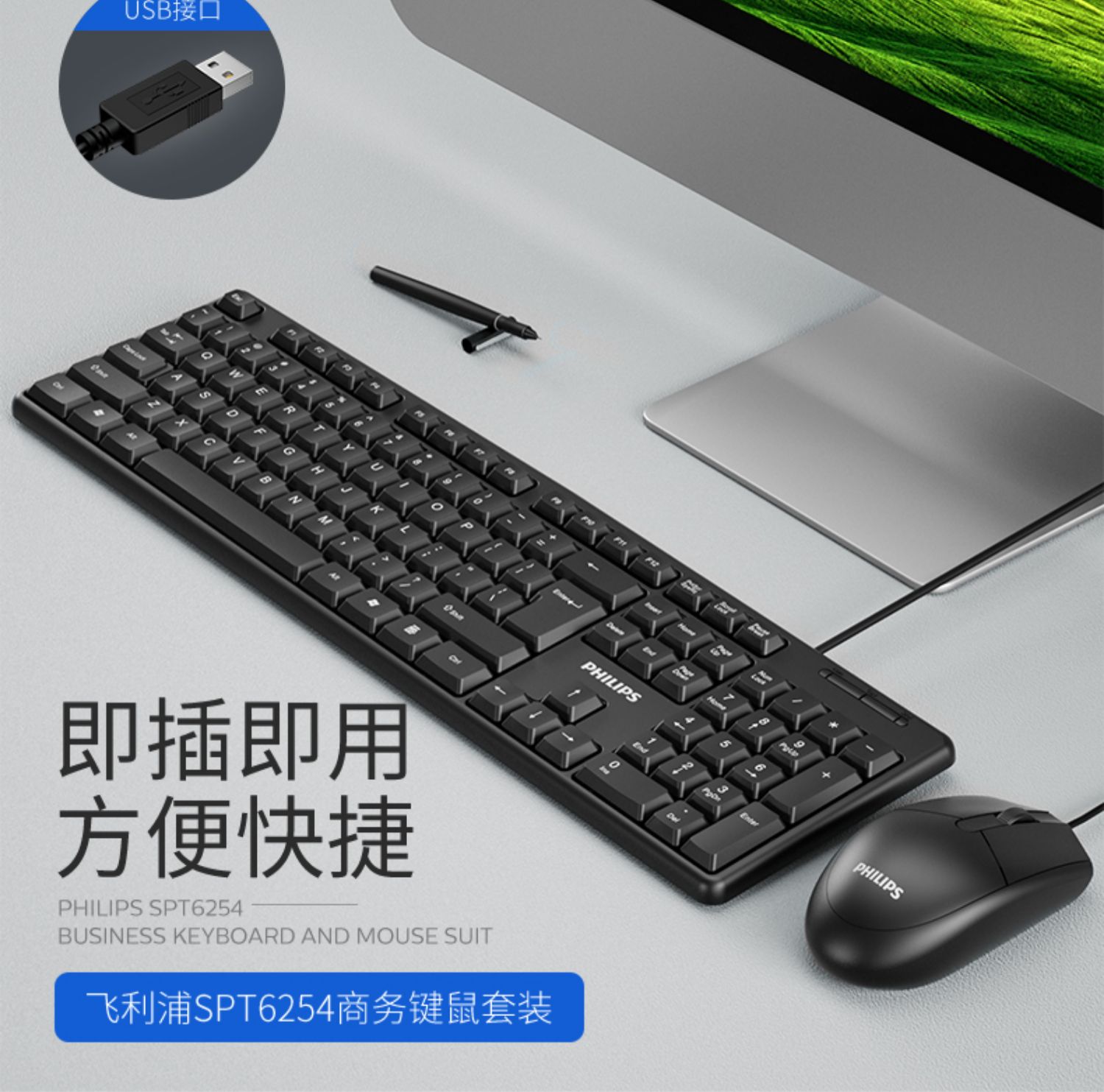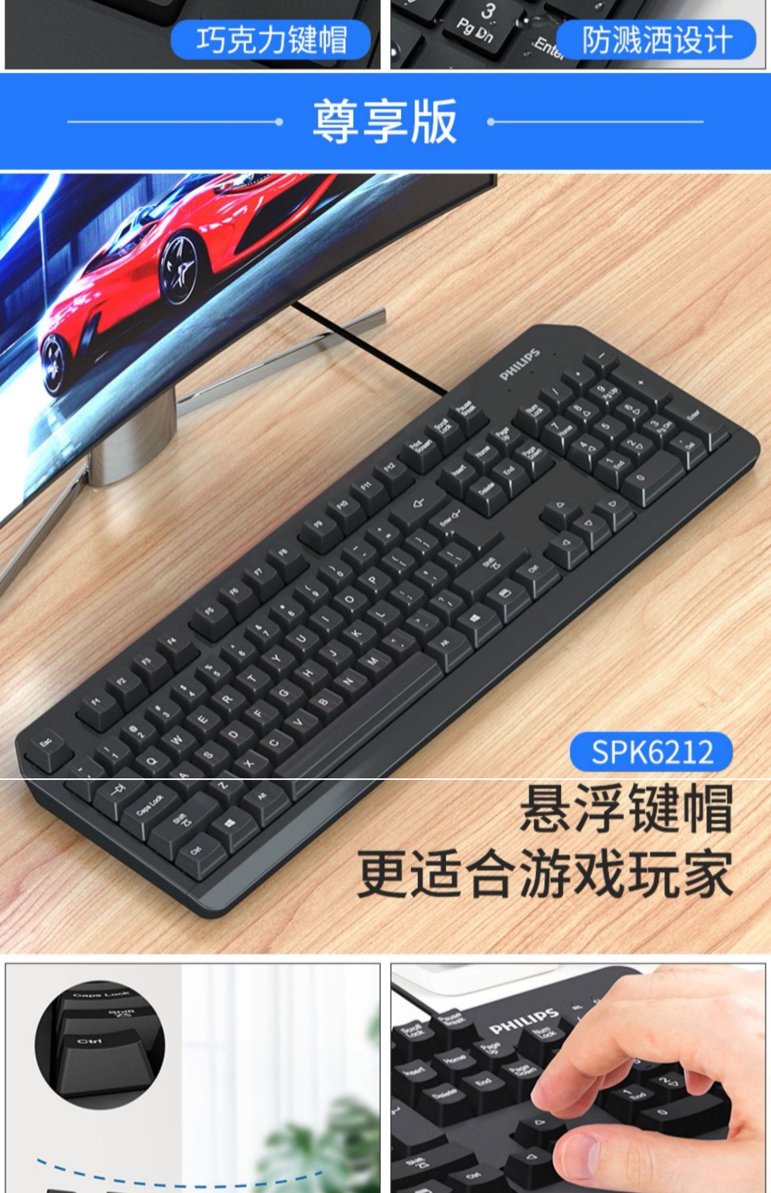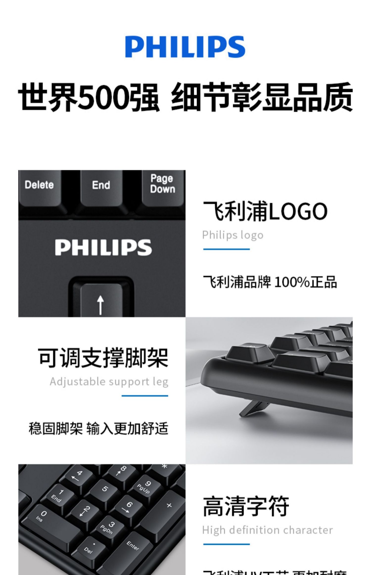 • 商品名称:飞利浦键盘鼠标套装USB有线电脑台式笔记本办公专用打字游戏机械手感静音商务家用巧克力键盘【罗永浩推荐】