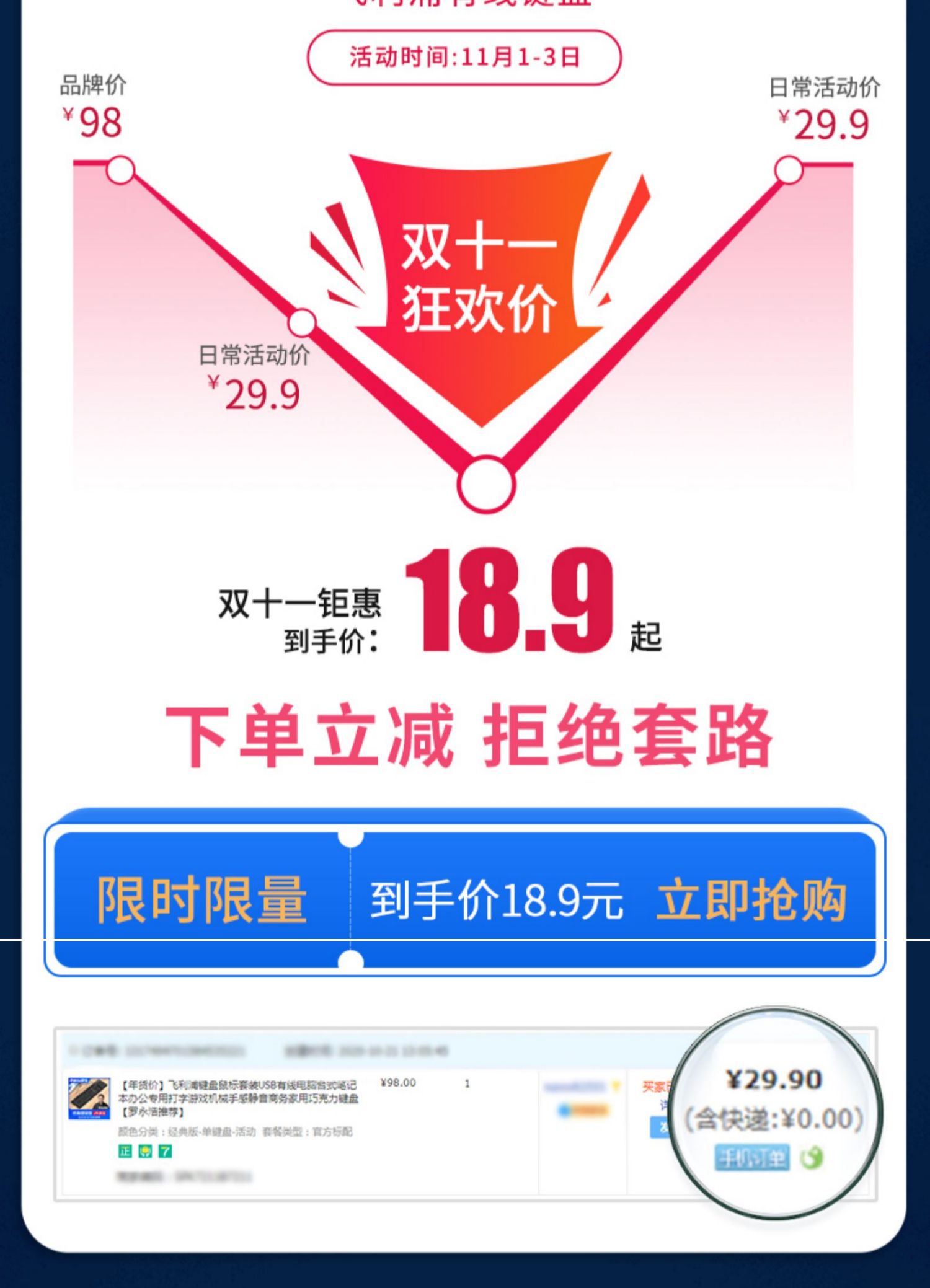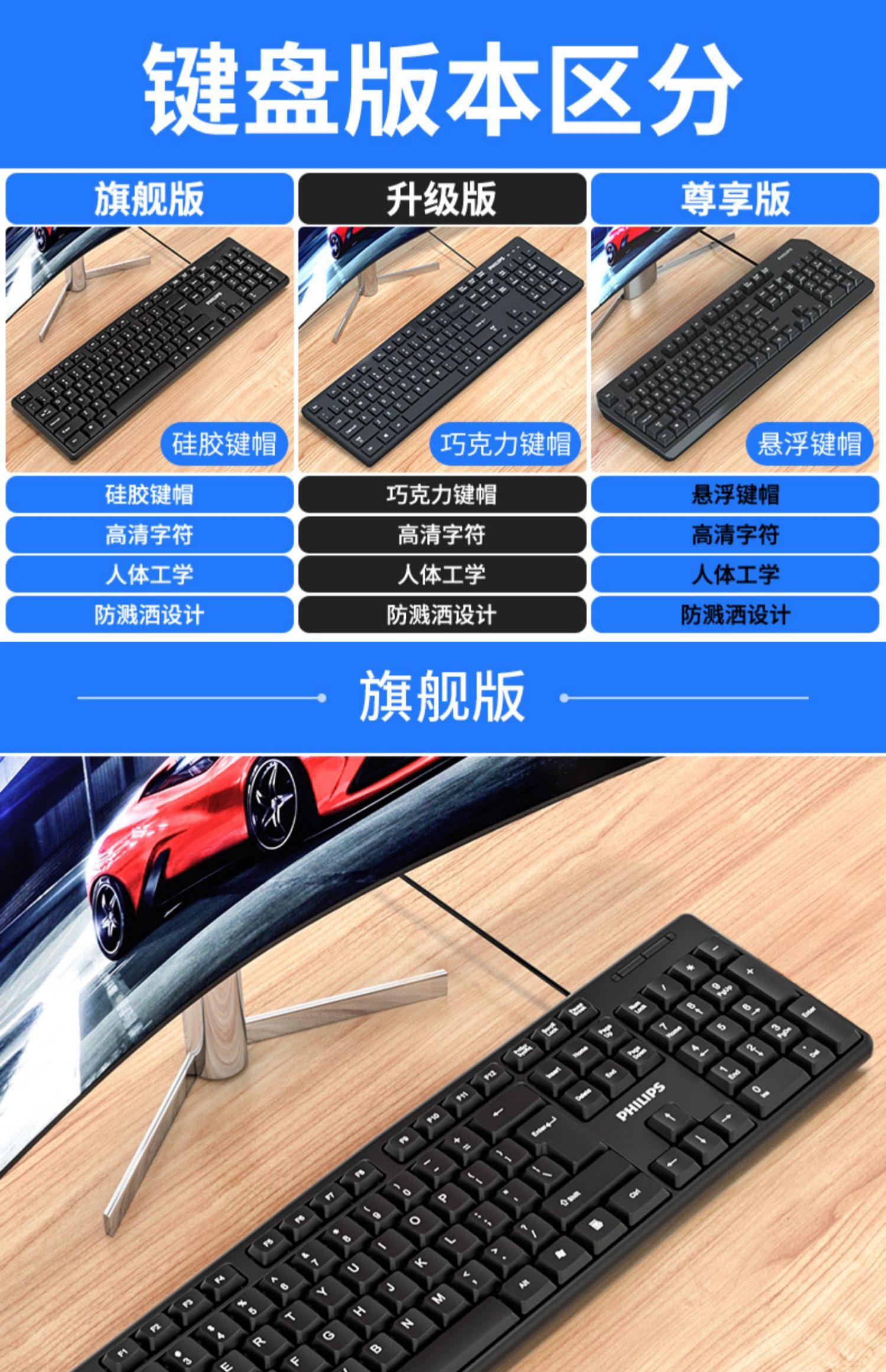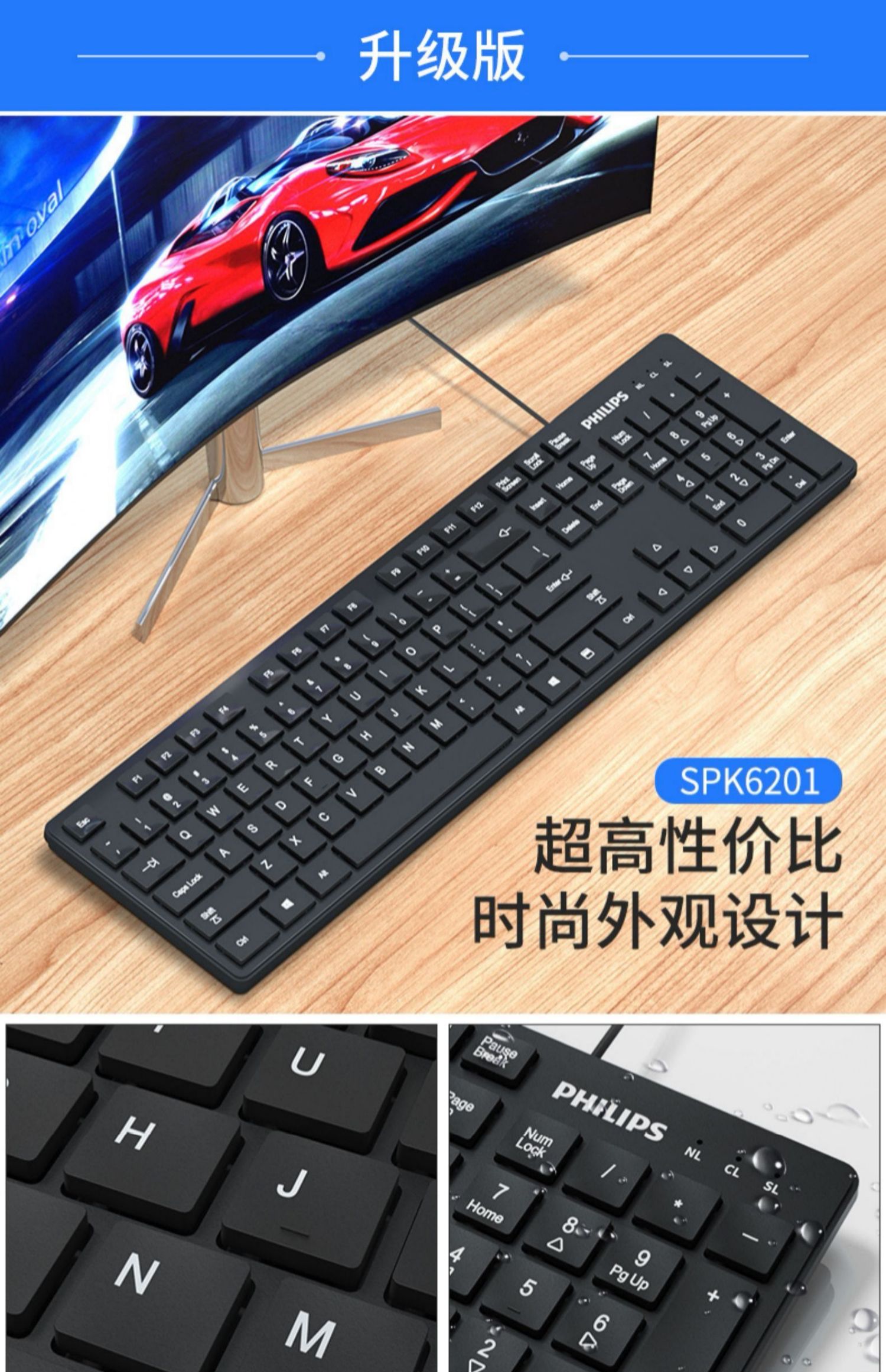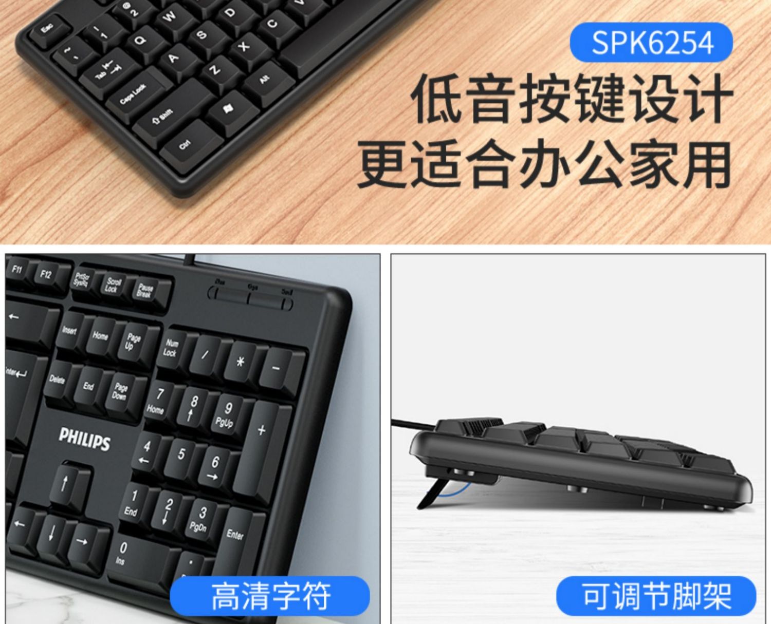 • 商品名称:飞利浦键盘鼠标套装USB有线电脑台式笔记本办公专用打字游戏机械手感静音商务家用巧克力键盘【罗永浩推荐】