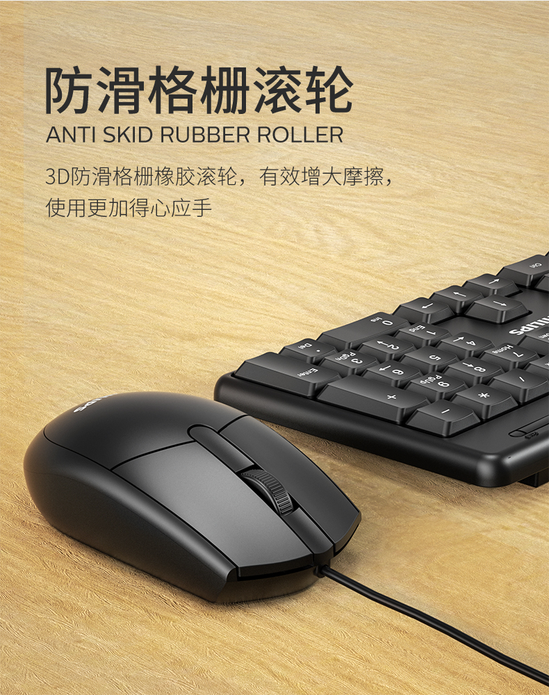 飞利浦键盘鼠标套装USB有线电脑台式笔记本办公专用打字游戏机械手感静音商务家用巧克力键盘【罗永浩推荐】