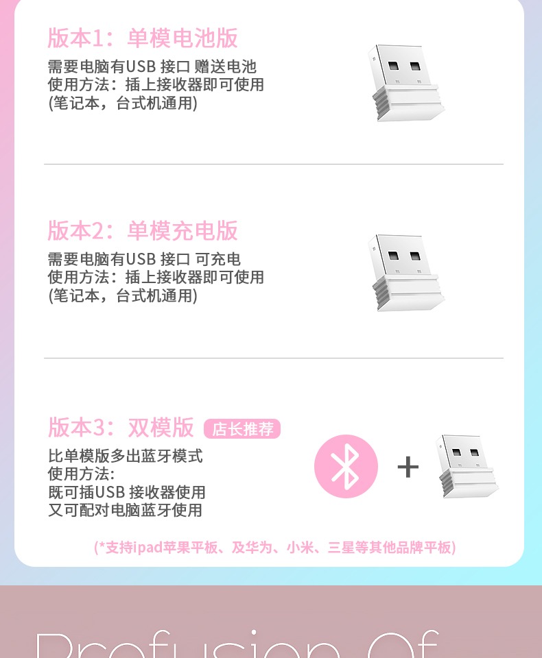 • 商品名称:蓝牙无线鼠标静音男女生可爱可充电式游戏办公适用小米mac苹果华为戴尔惠普联想笔记本电脑ipad平板