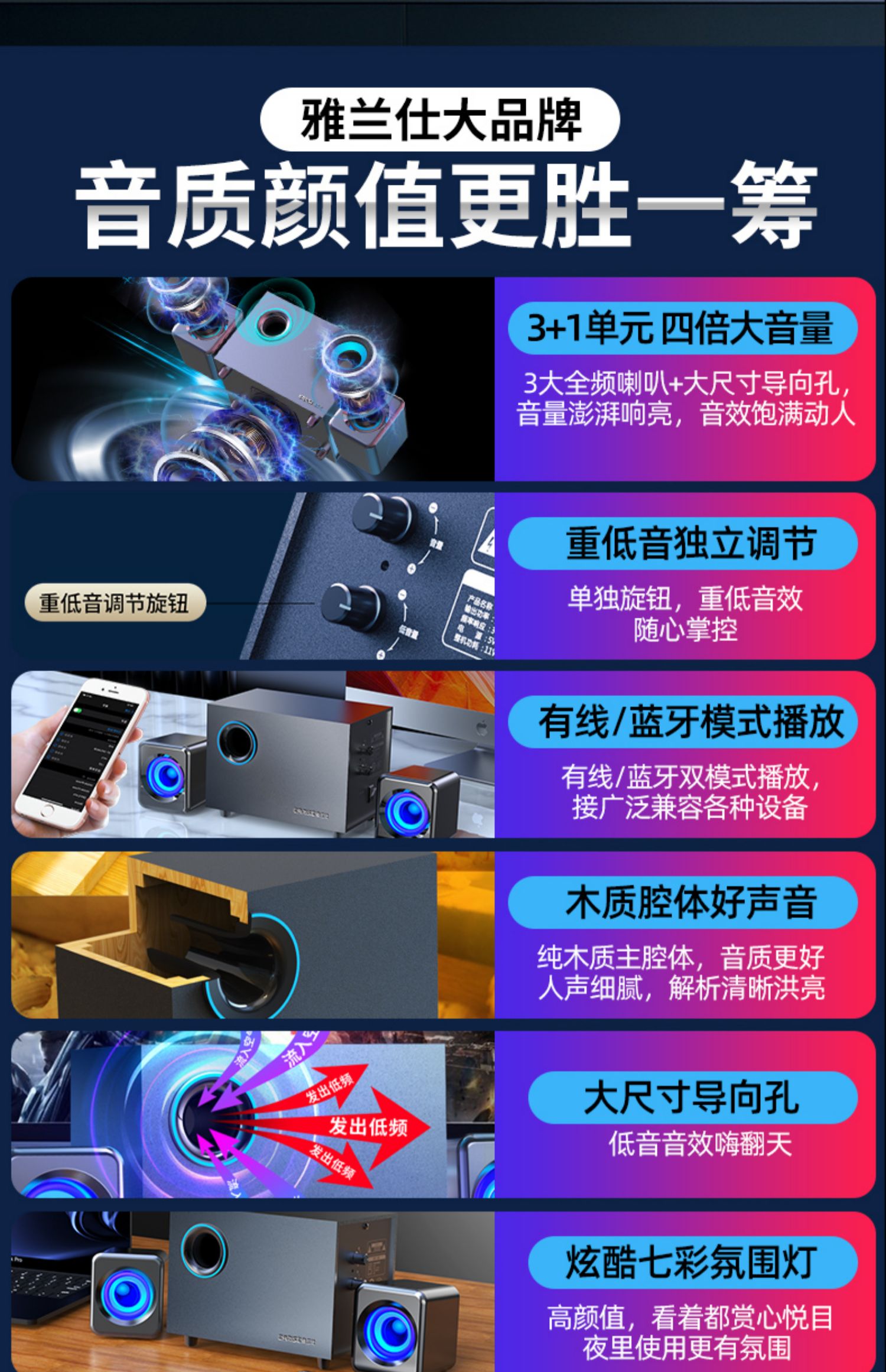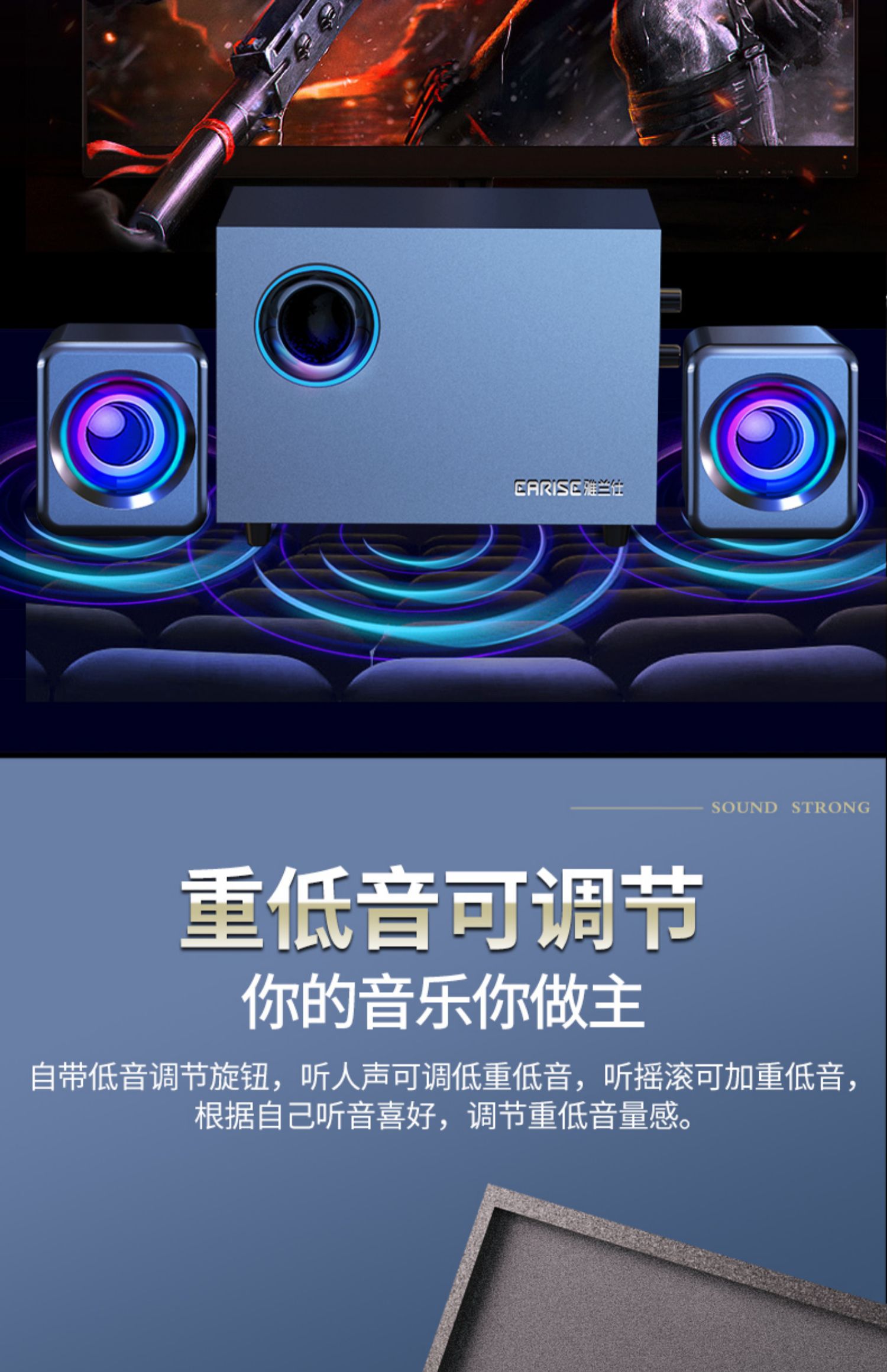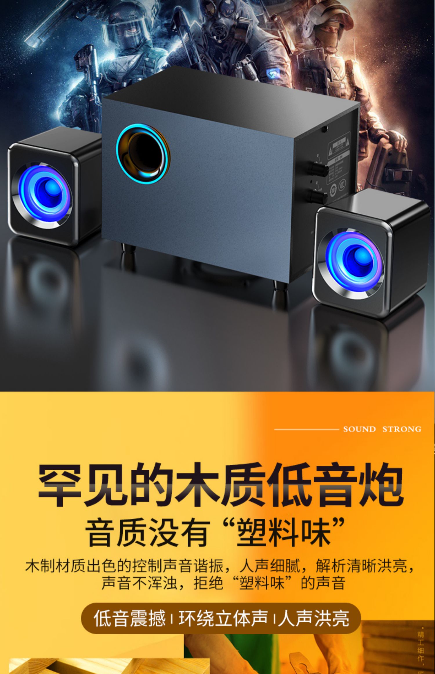 • 商品名称:EARISE/雅兰仕 Q9笔记本电脑音响 木质多媒体台式小音箱2.1低音炮