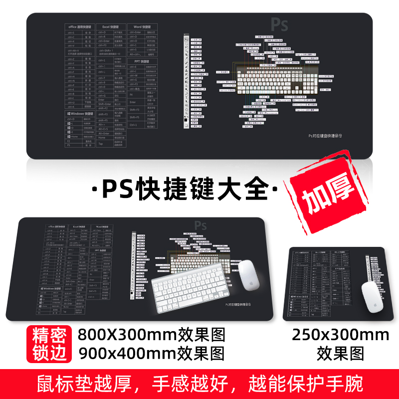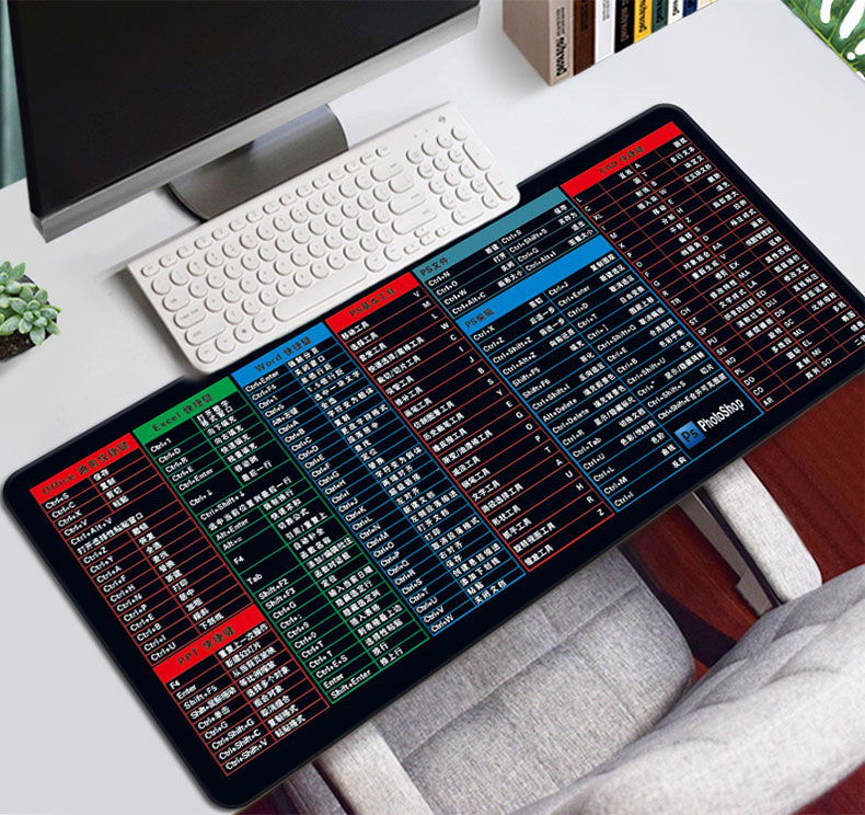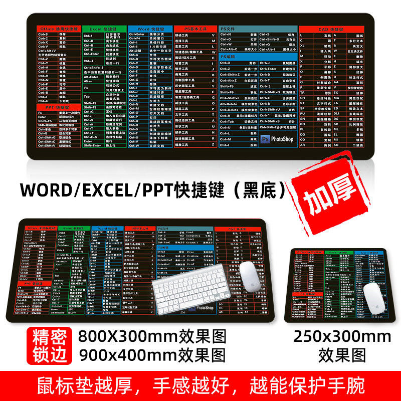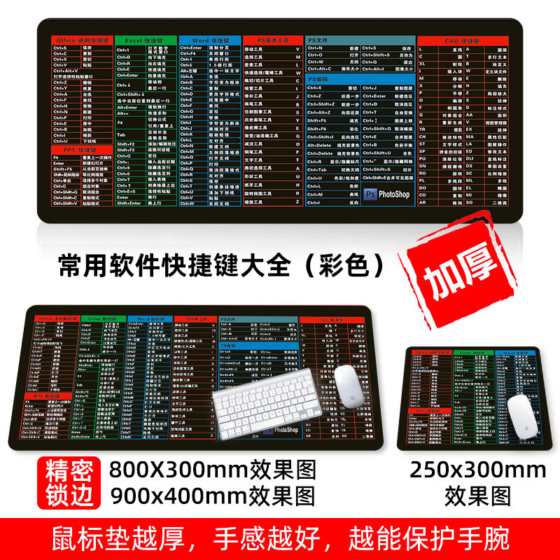 • 商品名称:鼠标垫超大号可爱女加厚锁边广告定制定做电脑家用办公快捷键大全书桌垫子简约护腕ps做图word电竞游戏橡胶垫