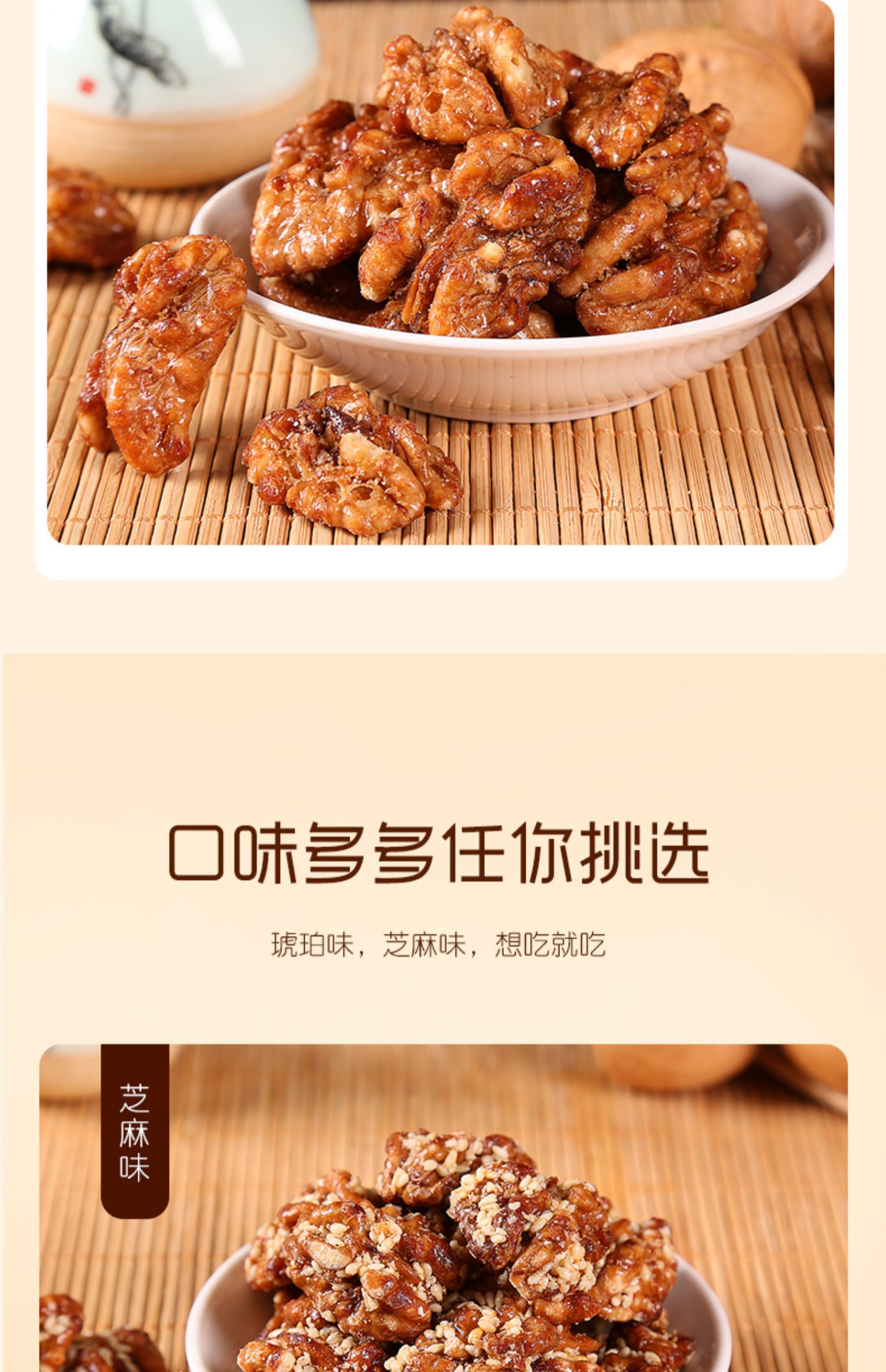 • 商品名称:白露珍琥珀核桃仁100g*3真空铁罐装休闲零食坚果学生孕妇工作办公