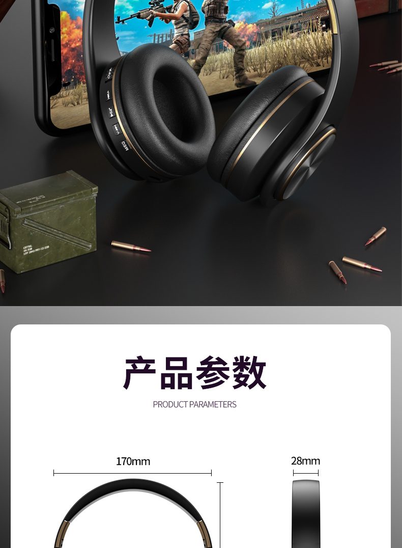 • 商品名称:蓝牙耳机头戴式听歌电竞游戏耳麦手机电脑通用男女生跑步运动降噪超长待机续航带麦全包耳可爱潮儿童无线西客