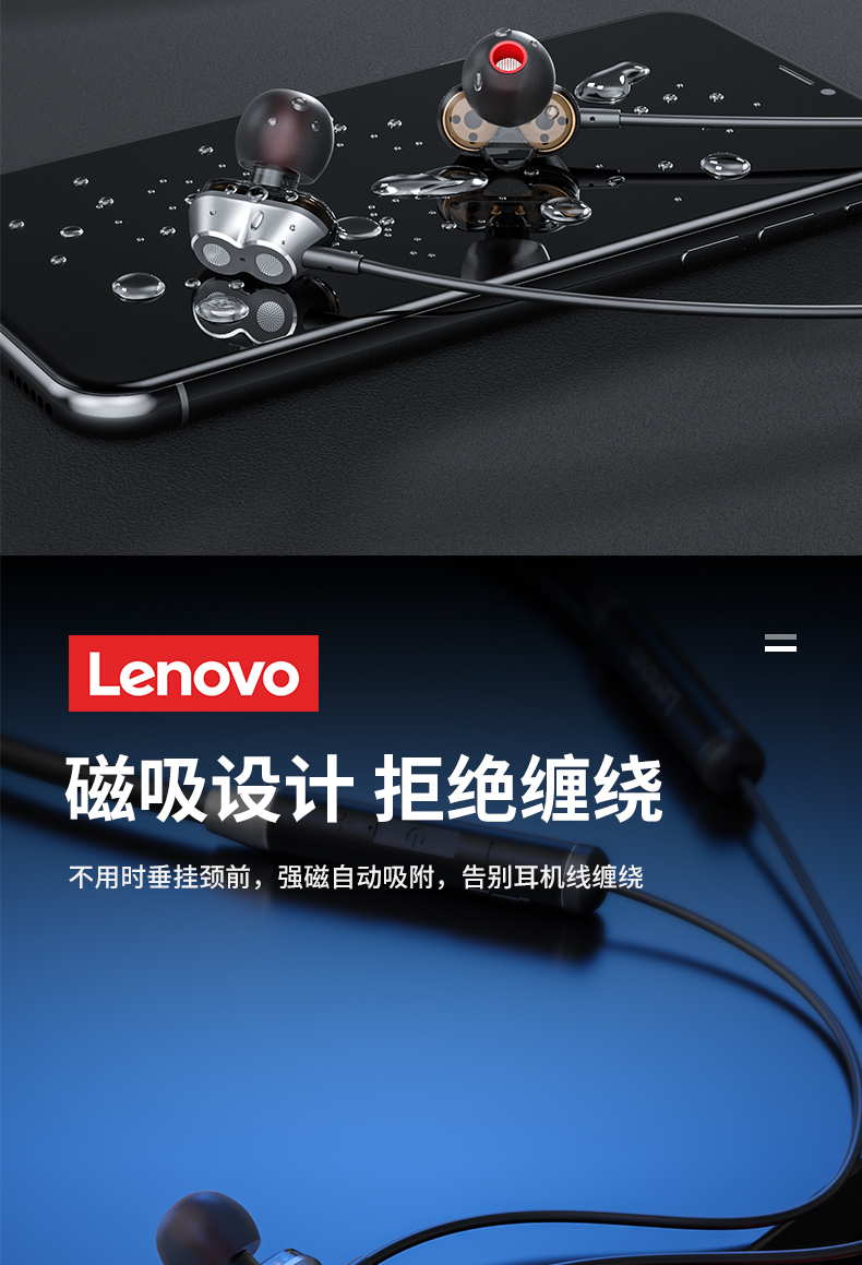 • 商品名称:联想无线蓝牙耳机颈挂脖式金属磁吸运动型跑步游戏超长待机续航头戴式单双耳防水入耳挂耳塞适用苹果小米华为