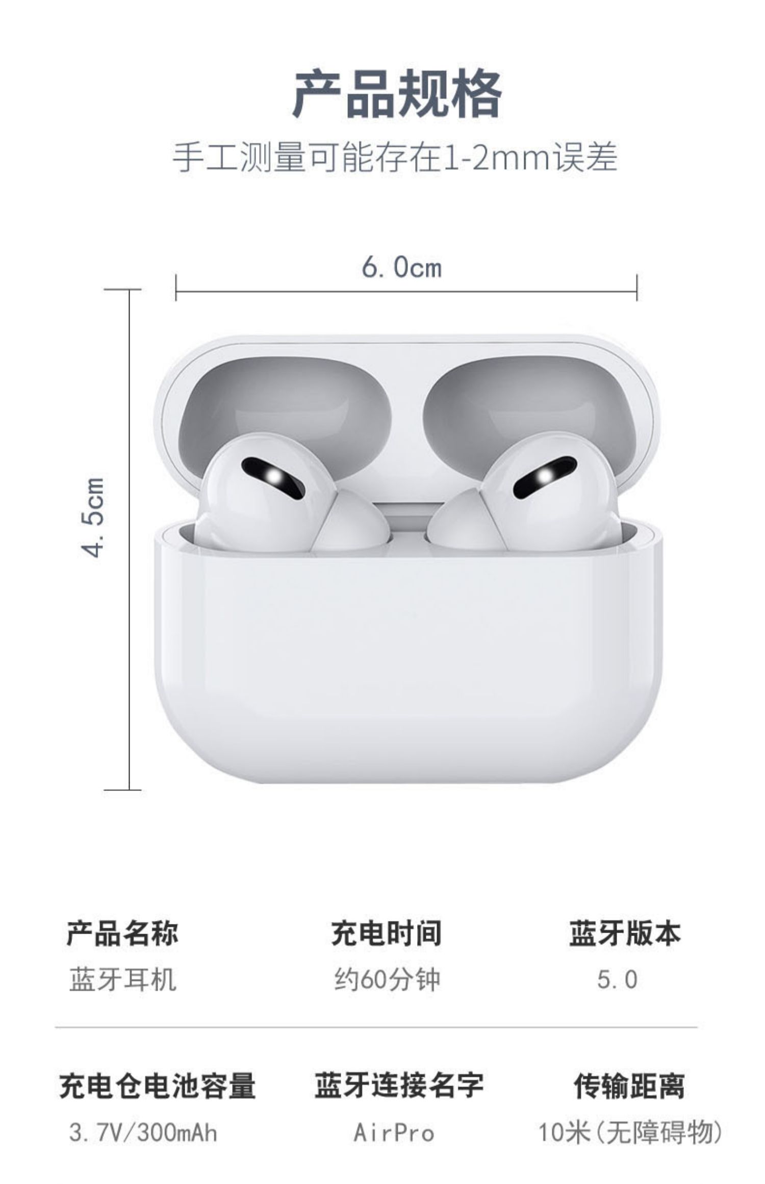 • 商品名称:华强北pro三代蓝牙耳机2021年新款无线蓝牙适用于苹果oppo华为vivo小米女士款入耳式降噪原装正品超长待机