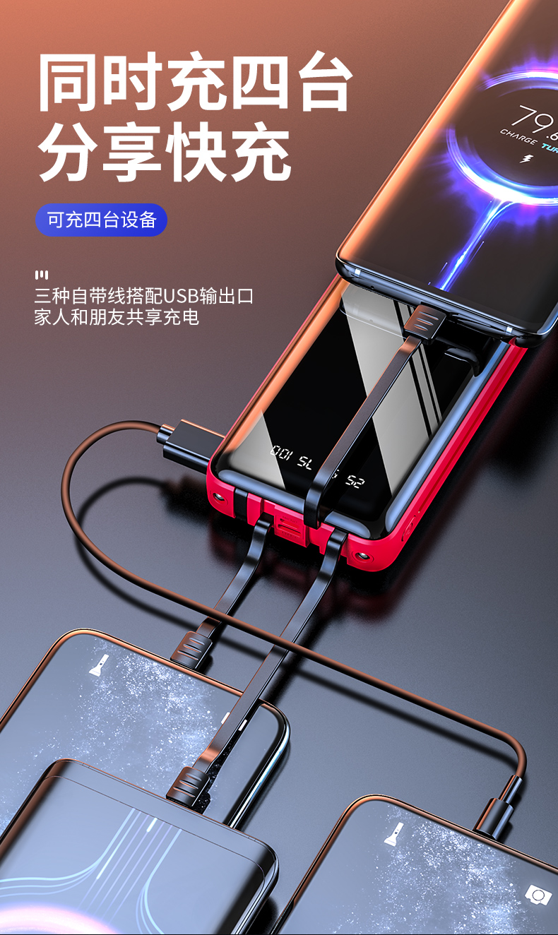 • 商品名称:原装正品20000毫安快充大容量充电宝LED显示屏自带四线超薄便携3