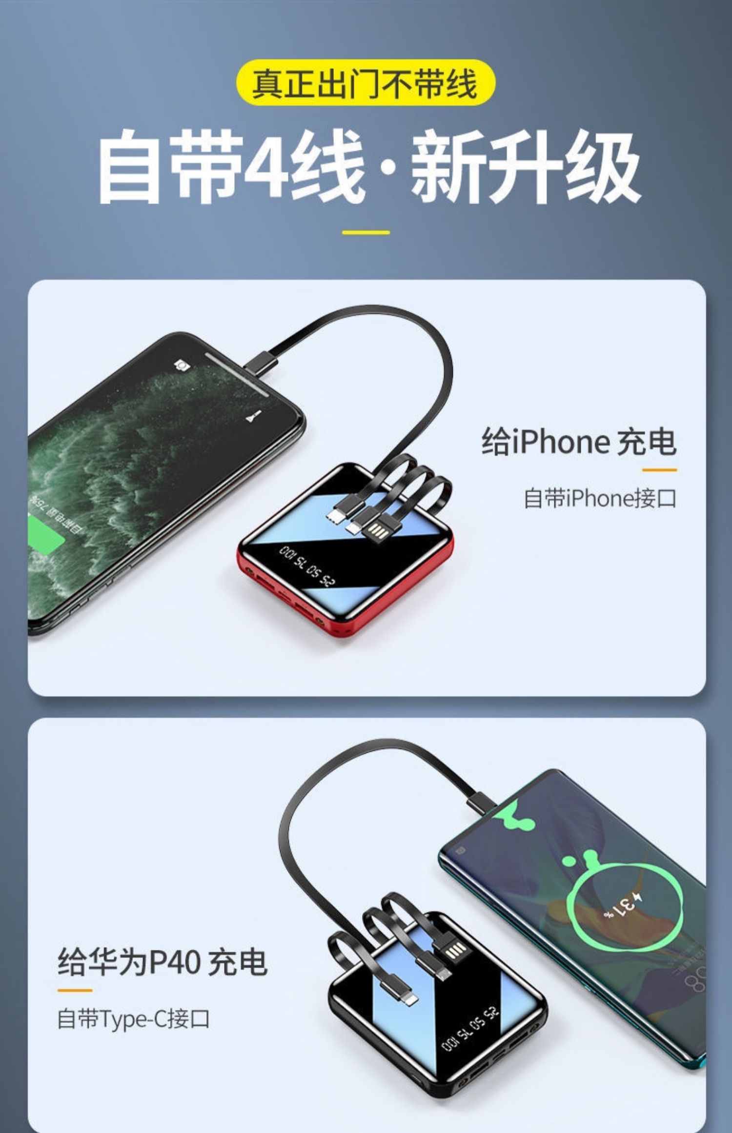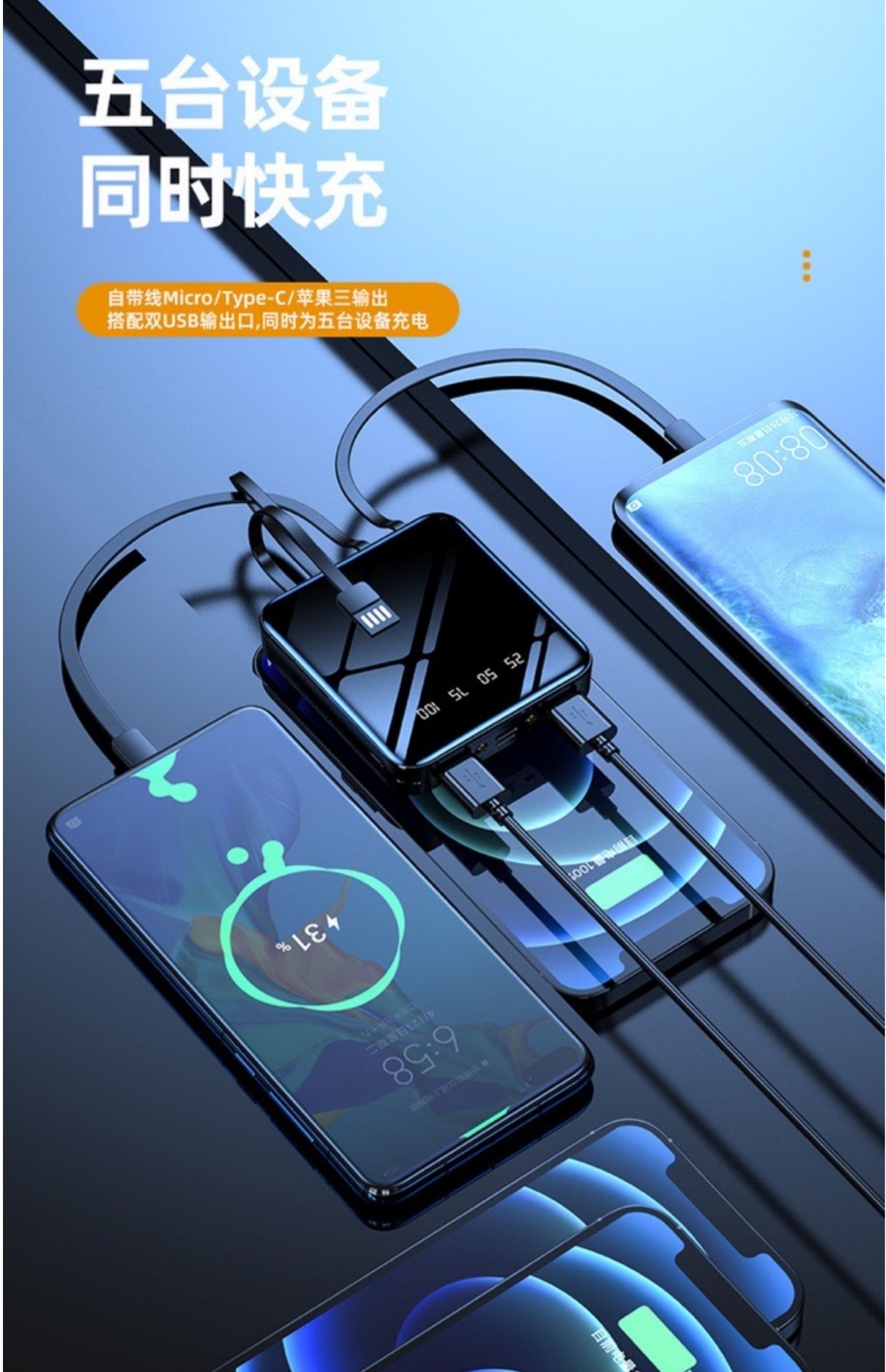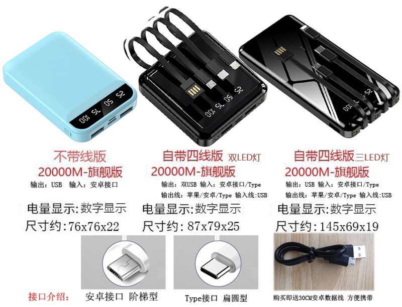 • 商品名称:充电宝20000毫安超大容量轻薄迷你便携小巧手机专用快充通用适用苹果vivo华为oppo通用正品超大耐用100000