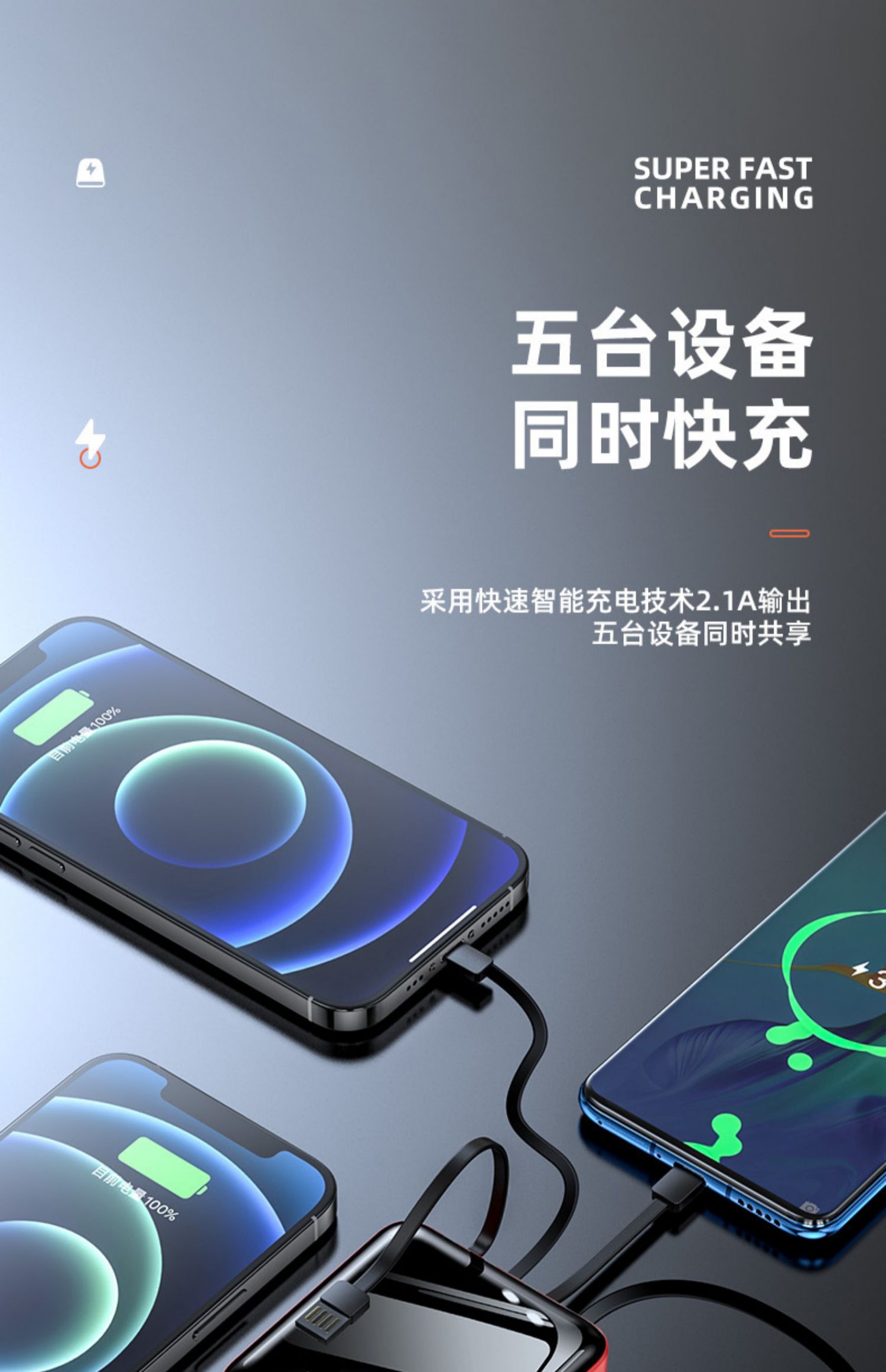 • 商品名称:充电宝20000m超薄小巧便携大容量薄迷你快充手机自带线2万毫安适用华为苹果oppo手机专用1000000M超大量官方
