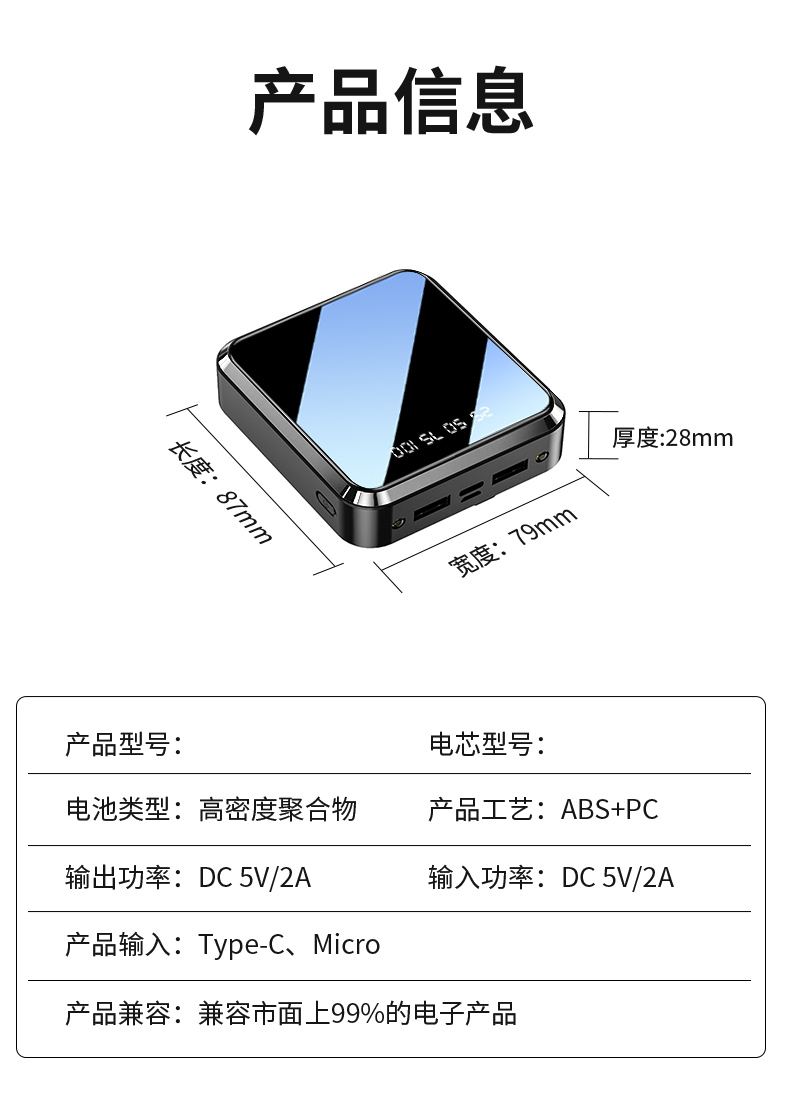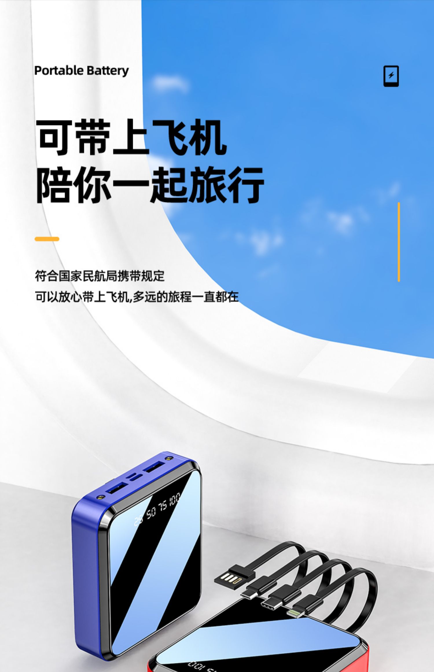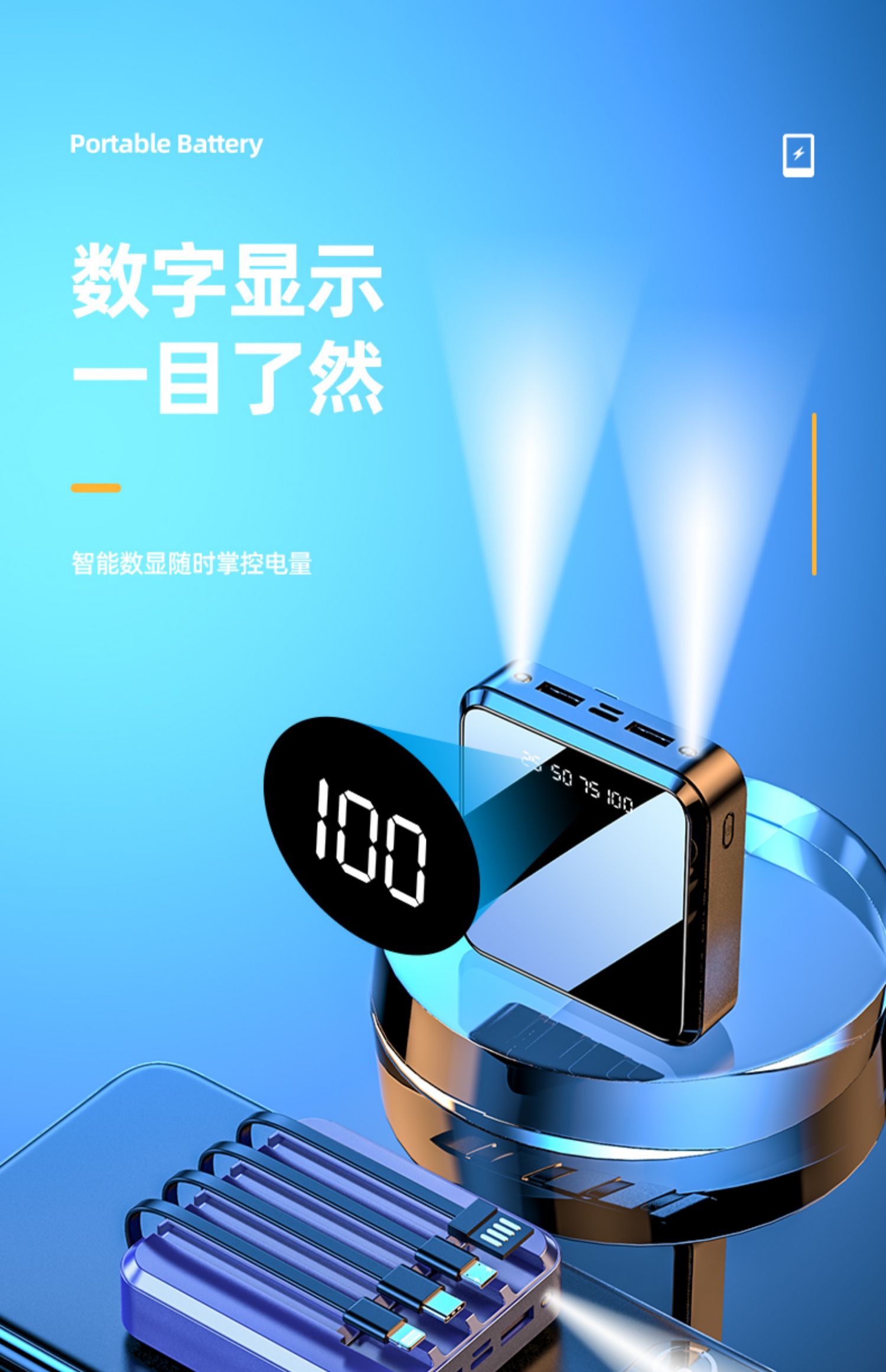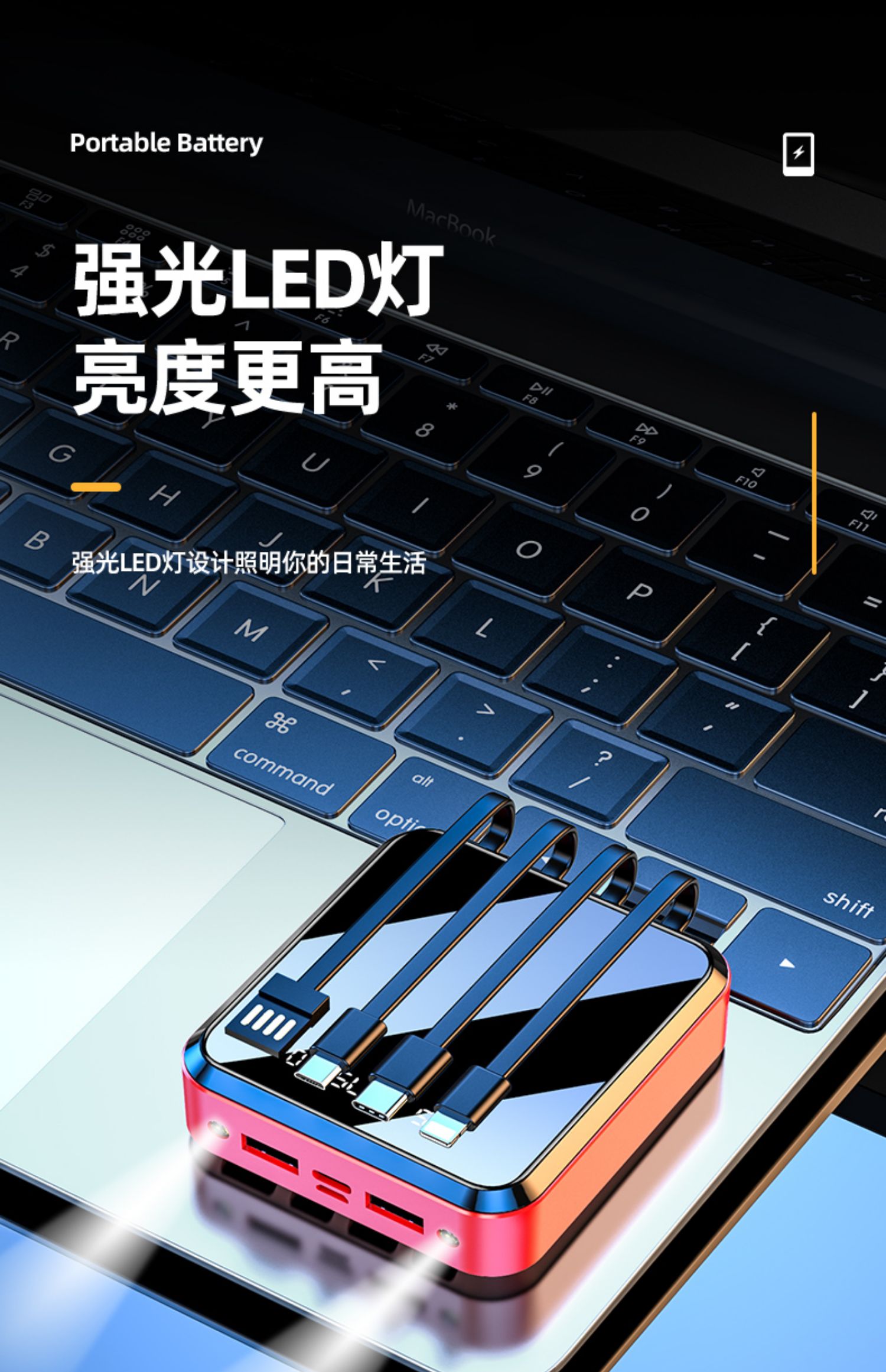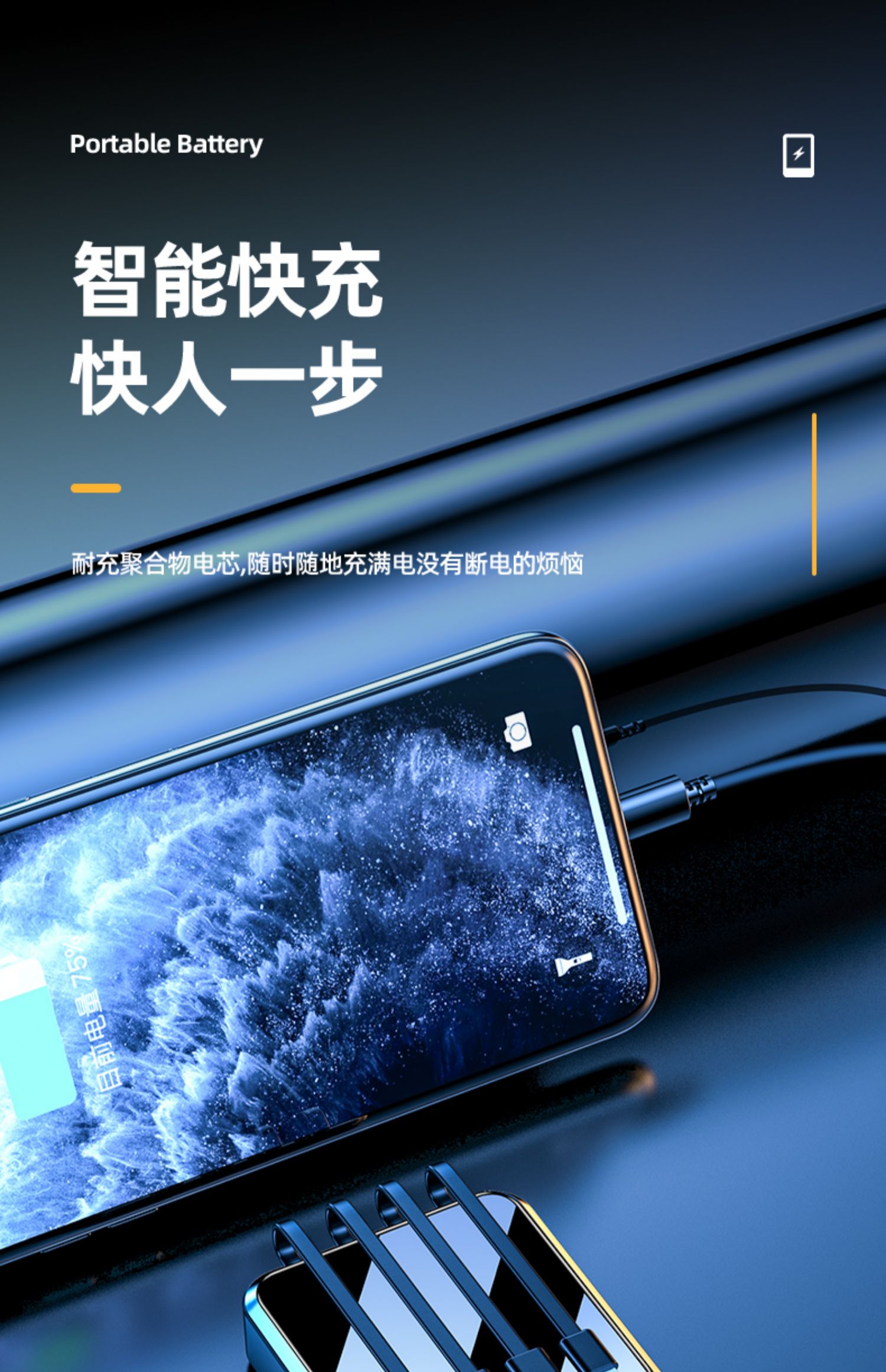• 商品名称:自带线充电宝20000毫安快充超薄小巧便携迷你移动电源手机三合一适用苹果华为小米oppo专用vivo超大量1000000