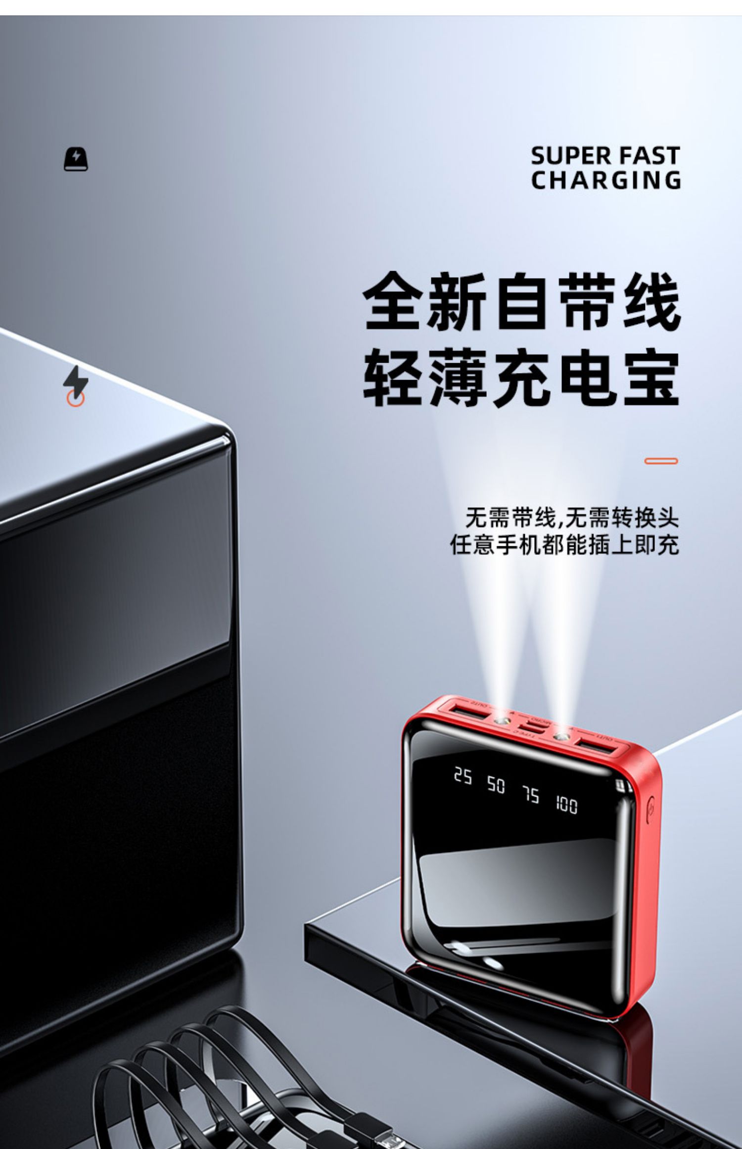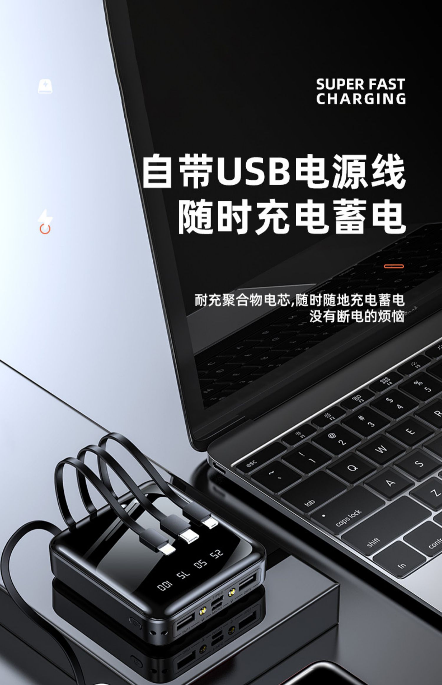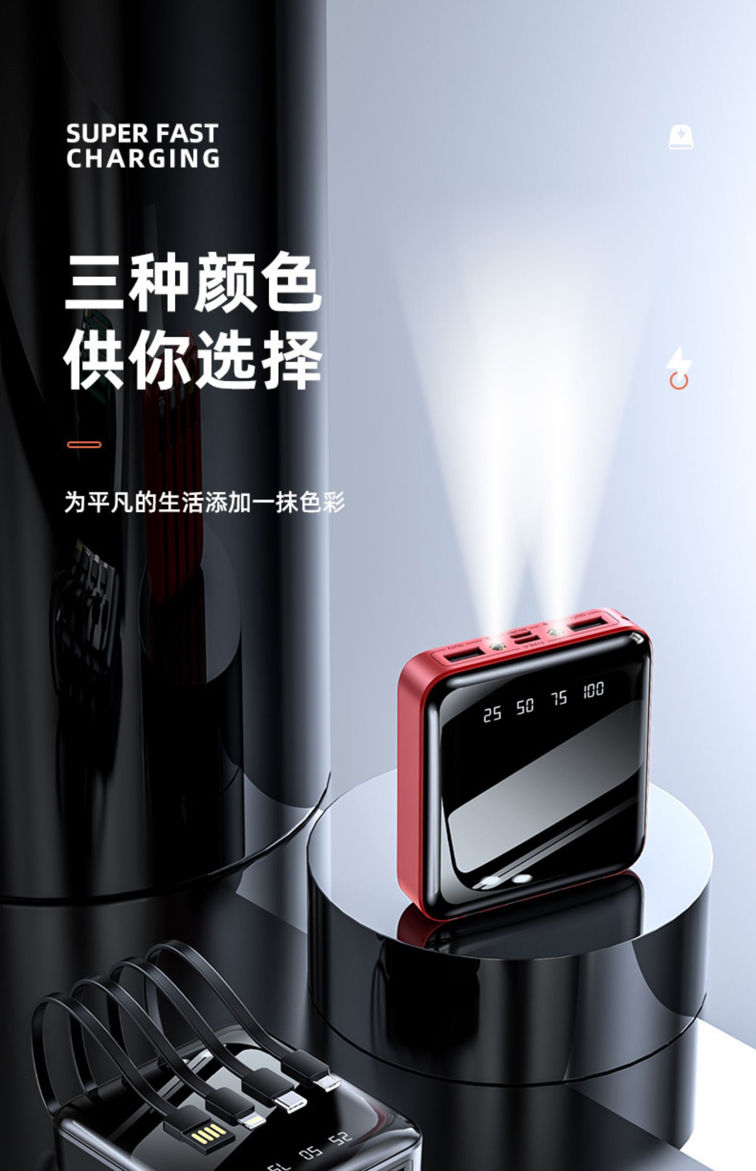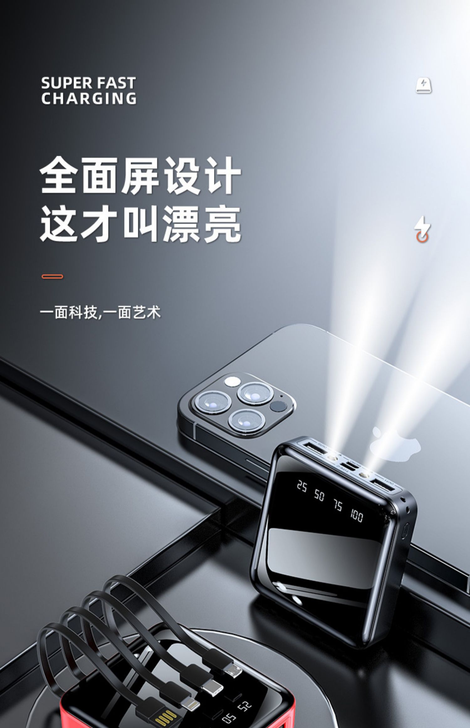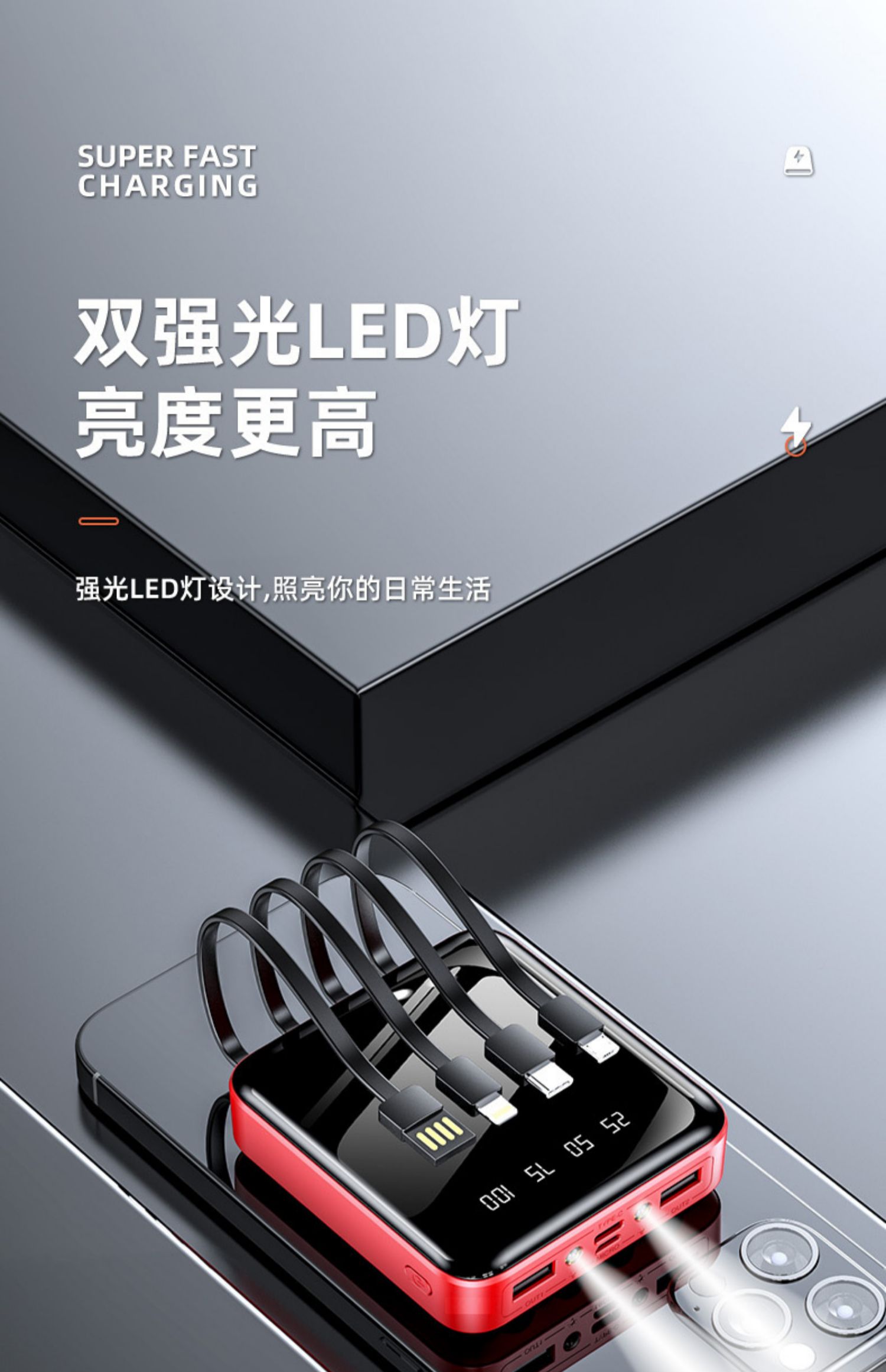 • 商品名称:迷你自带四线大容量充电宝20000毫安通用超薄小巧专用便携快充快充超大量移动电源适用苹果华为手机1000000