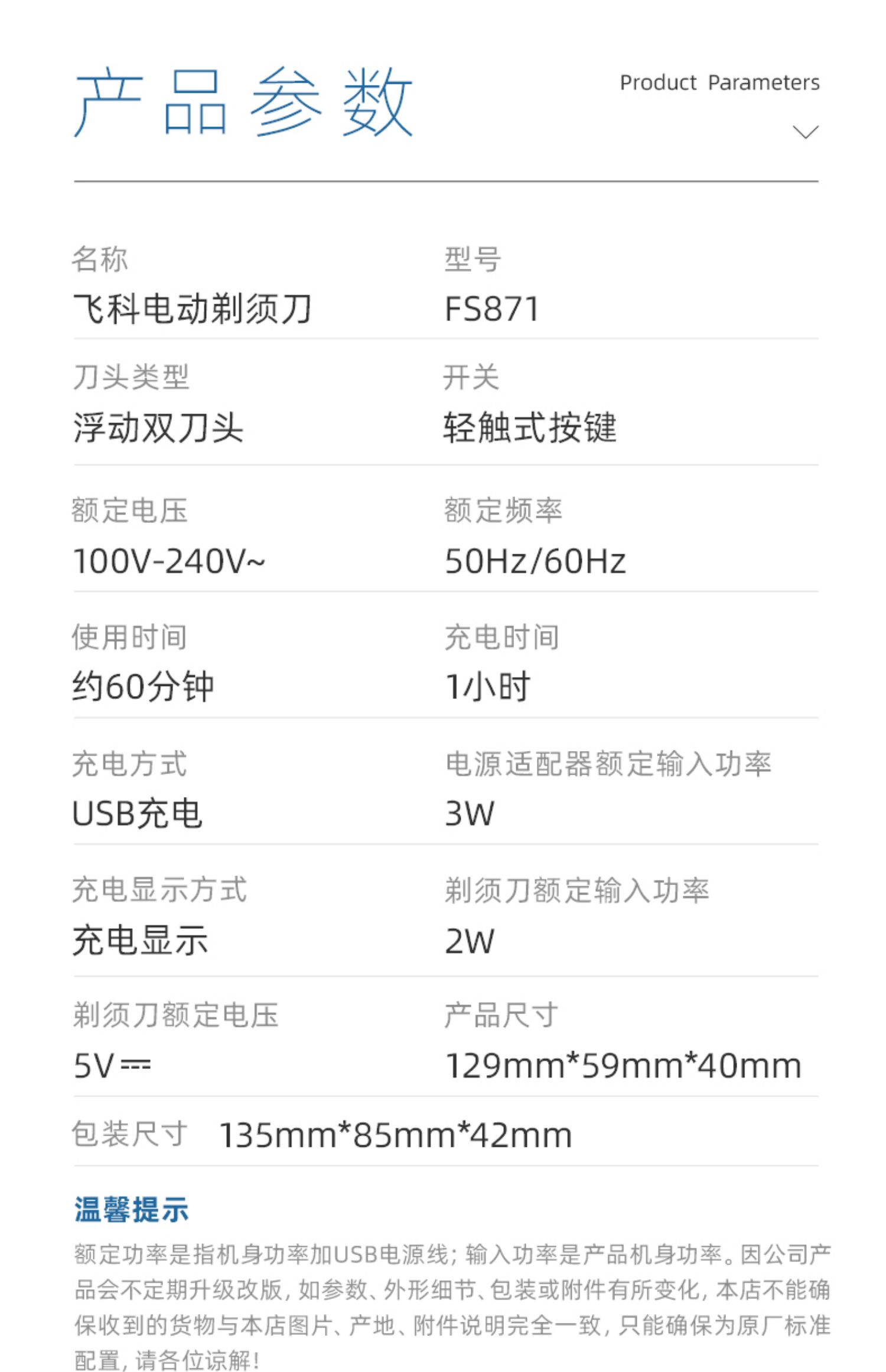 • 商品名称:飞科剃须刀男全身水洗充电式剃须刀电动刮胡刀胡须刀双头正品