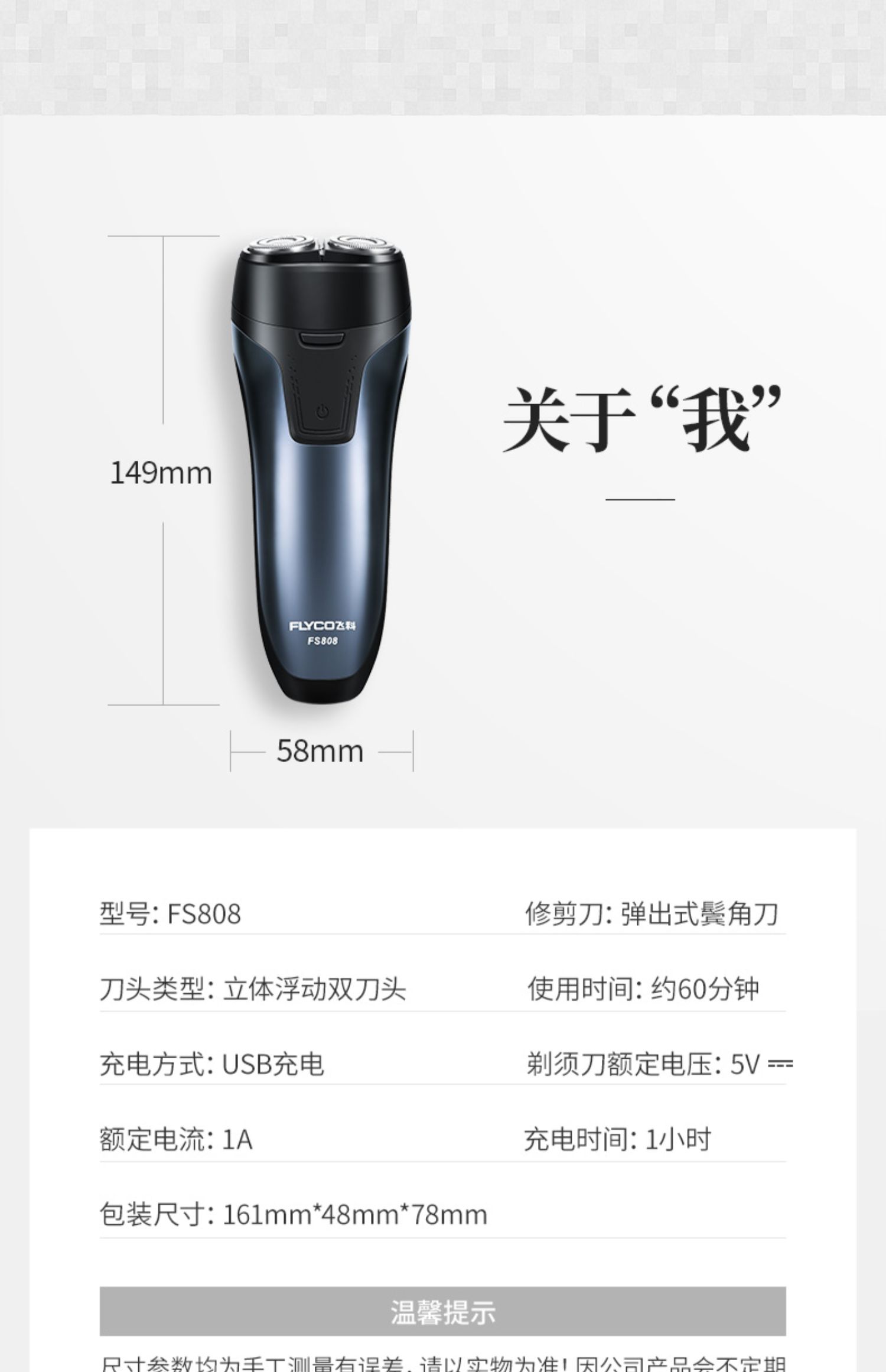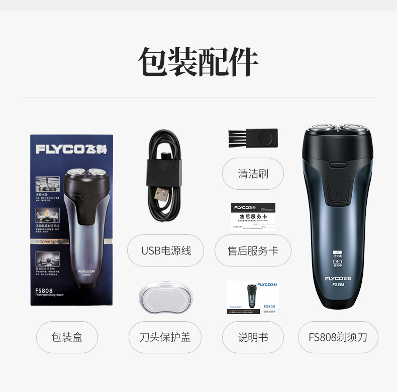 • 商品名称:飞科剃须刀电动男士智能充电全身水洗电动刮胡刀充电式胡须刀usb