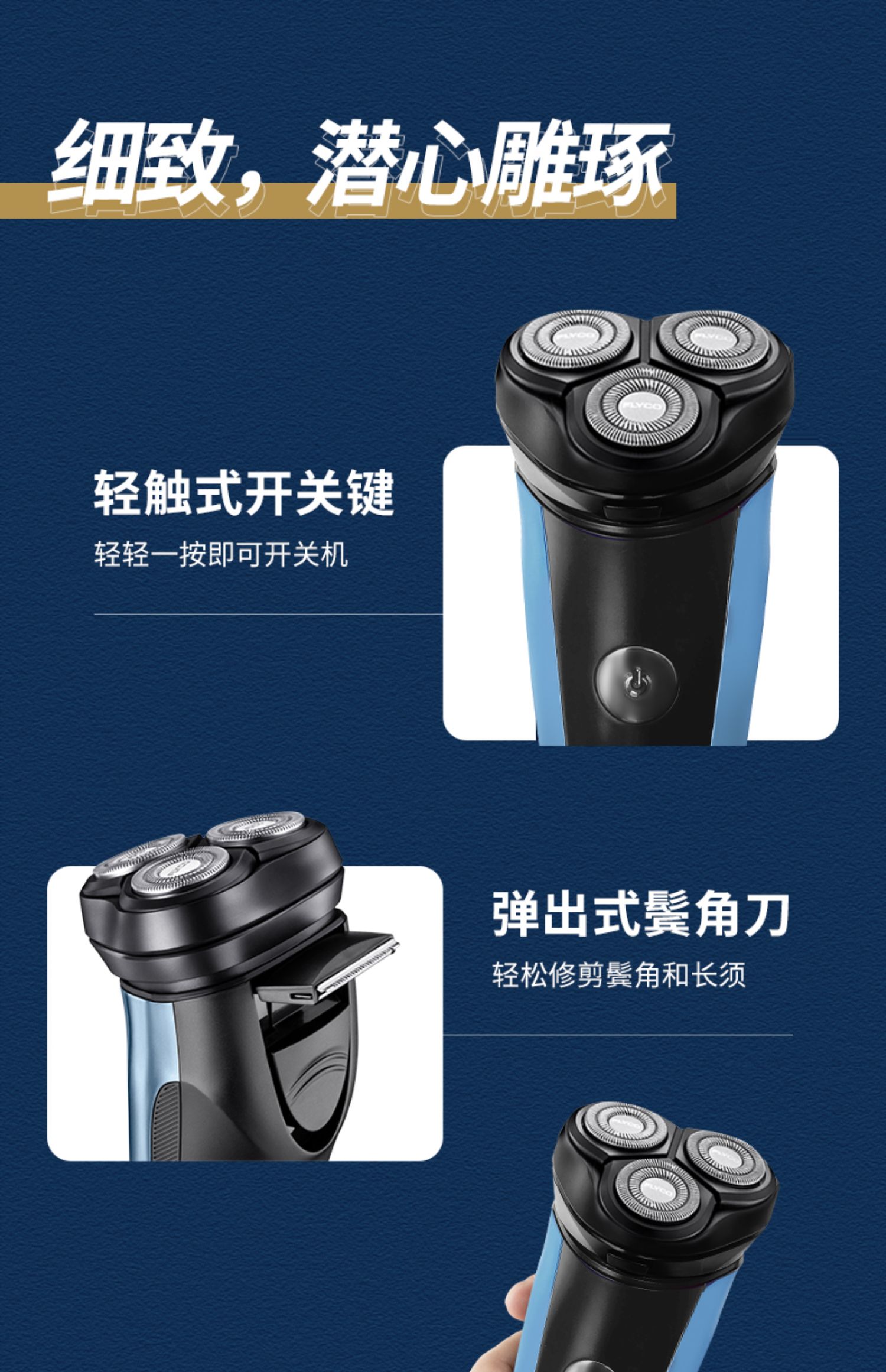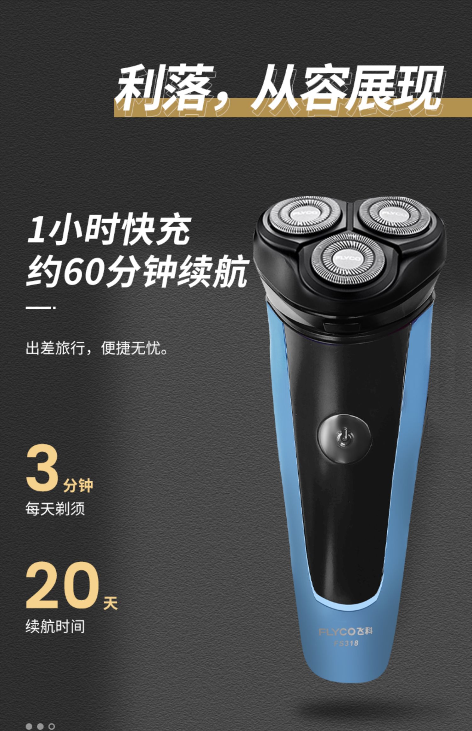 飞科剃须刀电动全身水洗1小时快充男士充电式防水刮胡刀3D刀正品