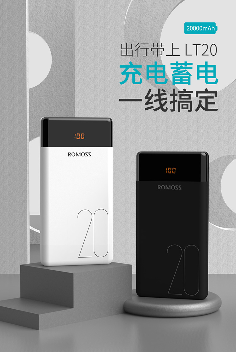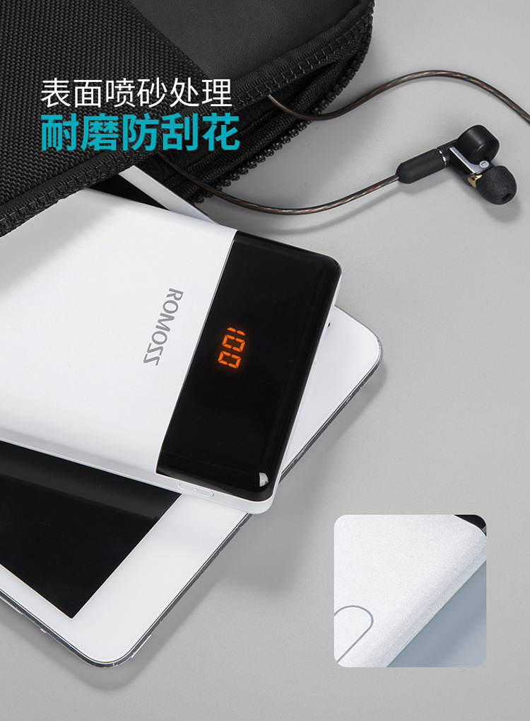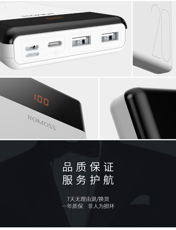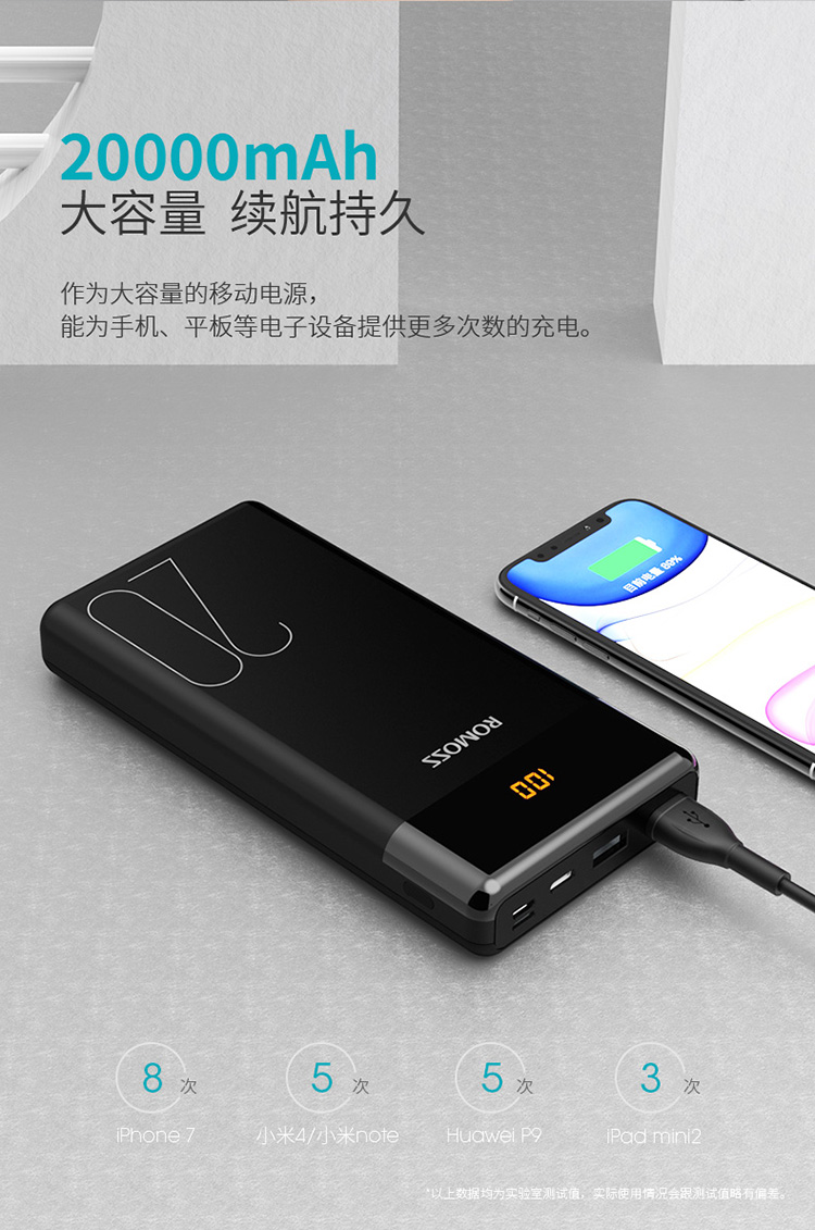 • 商品名称:罗马仕充电宝20000m毫安时大容量便携移动电源罗马 仕旗舰正品适用于小米苹果华为vivo平板电脑手机通用快充