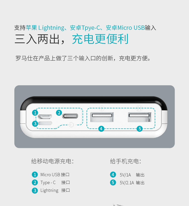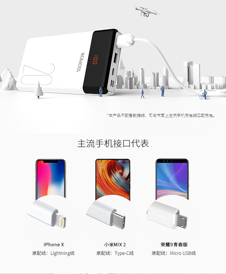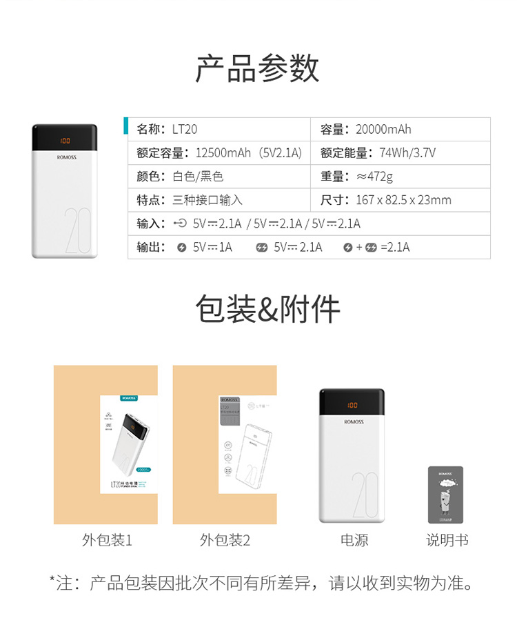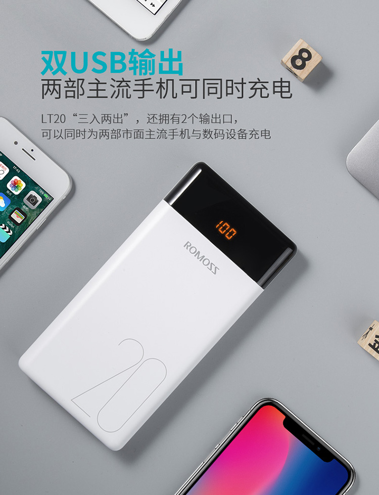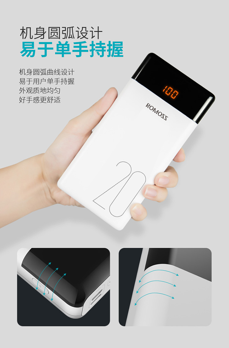 • 商品名称:罗马仕充电宝20000m毫安时大容量便携移动电源罗马 仕旗舰正品适用于小米苹果华为vivo平板电脑手机通用快充