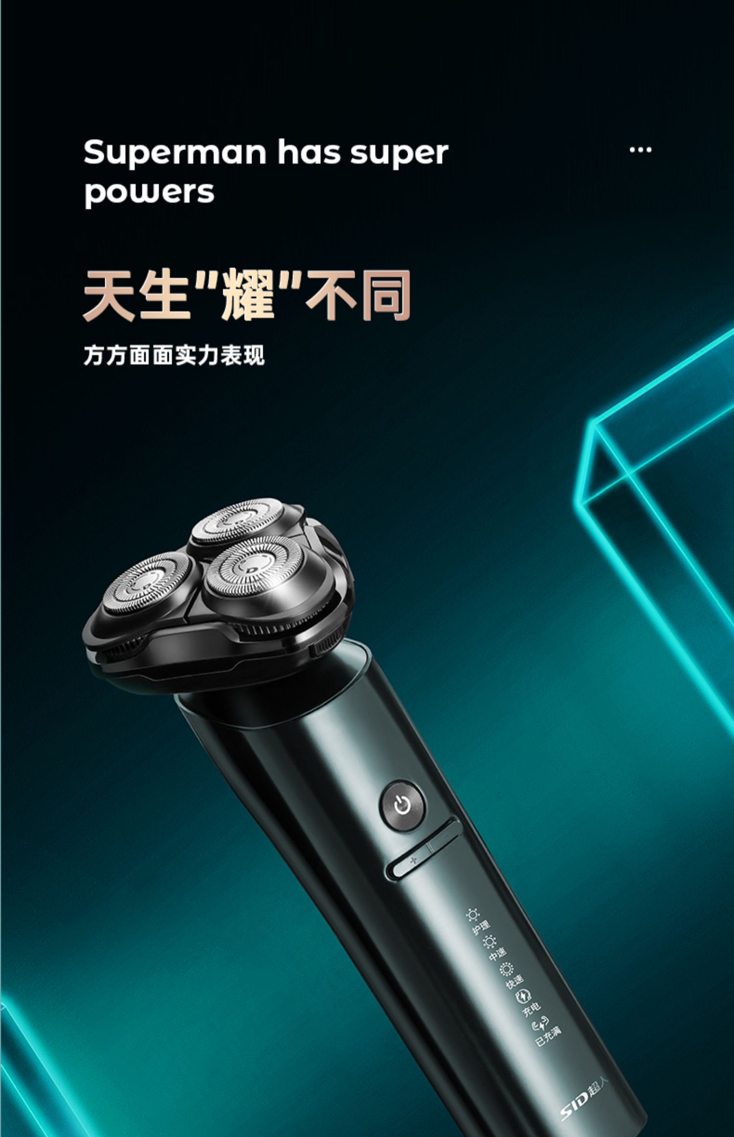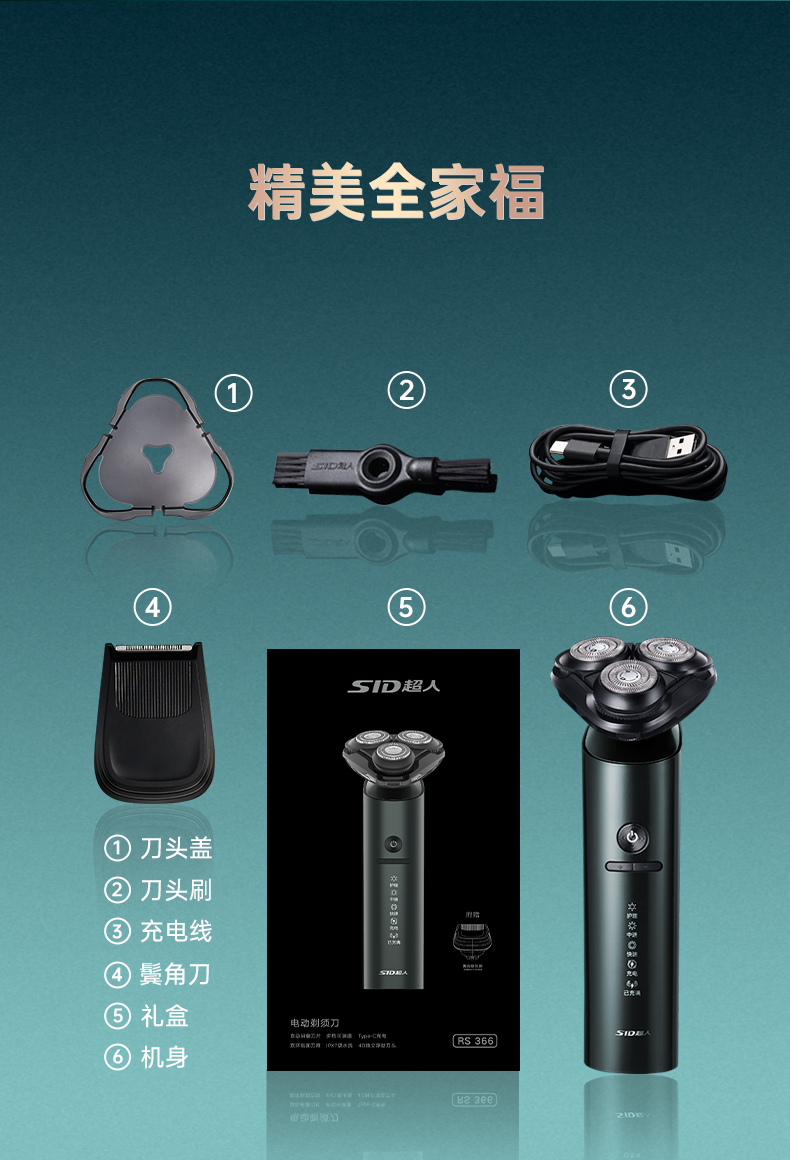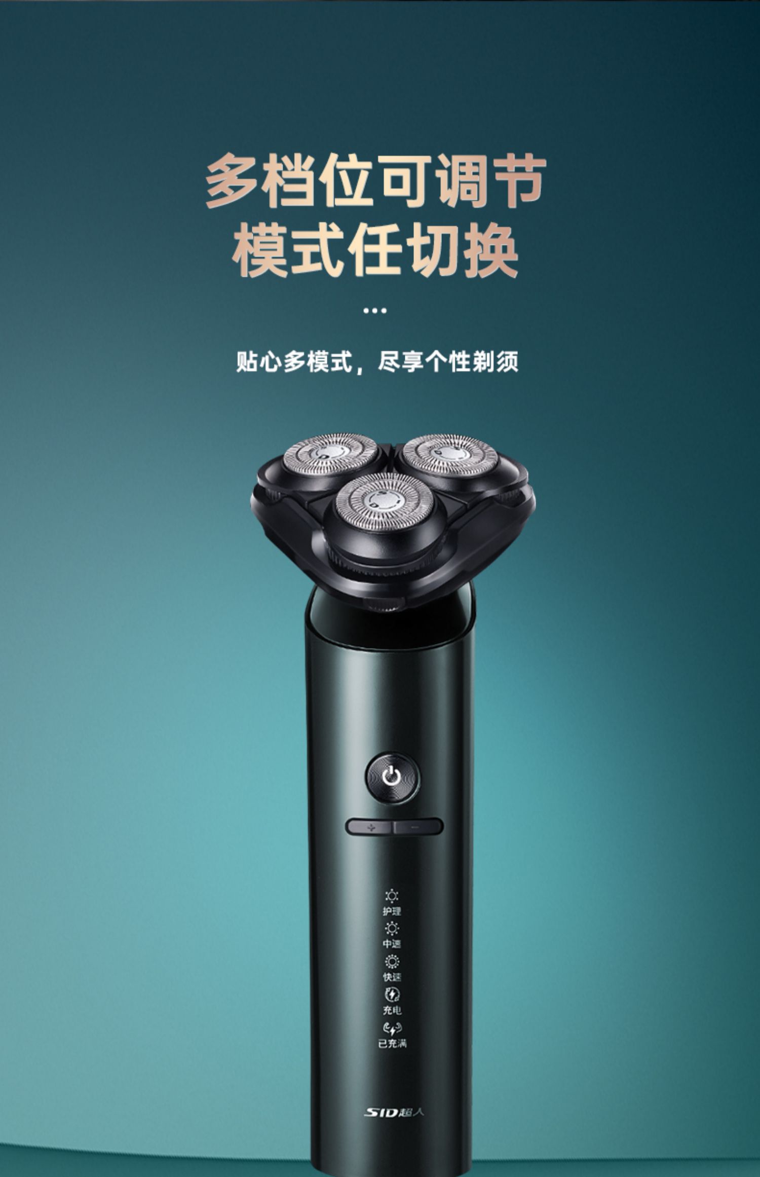 SID/超人RS366剃须刀智能充电显示变速调档剃须刀水洗刮胡刀快充