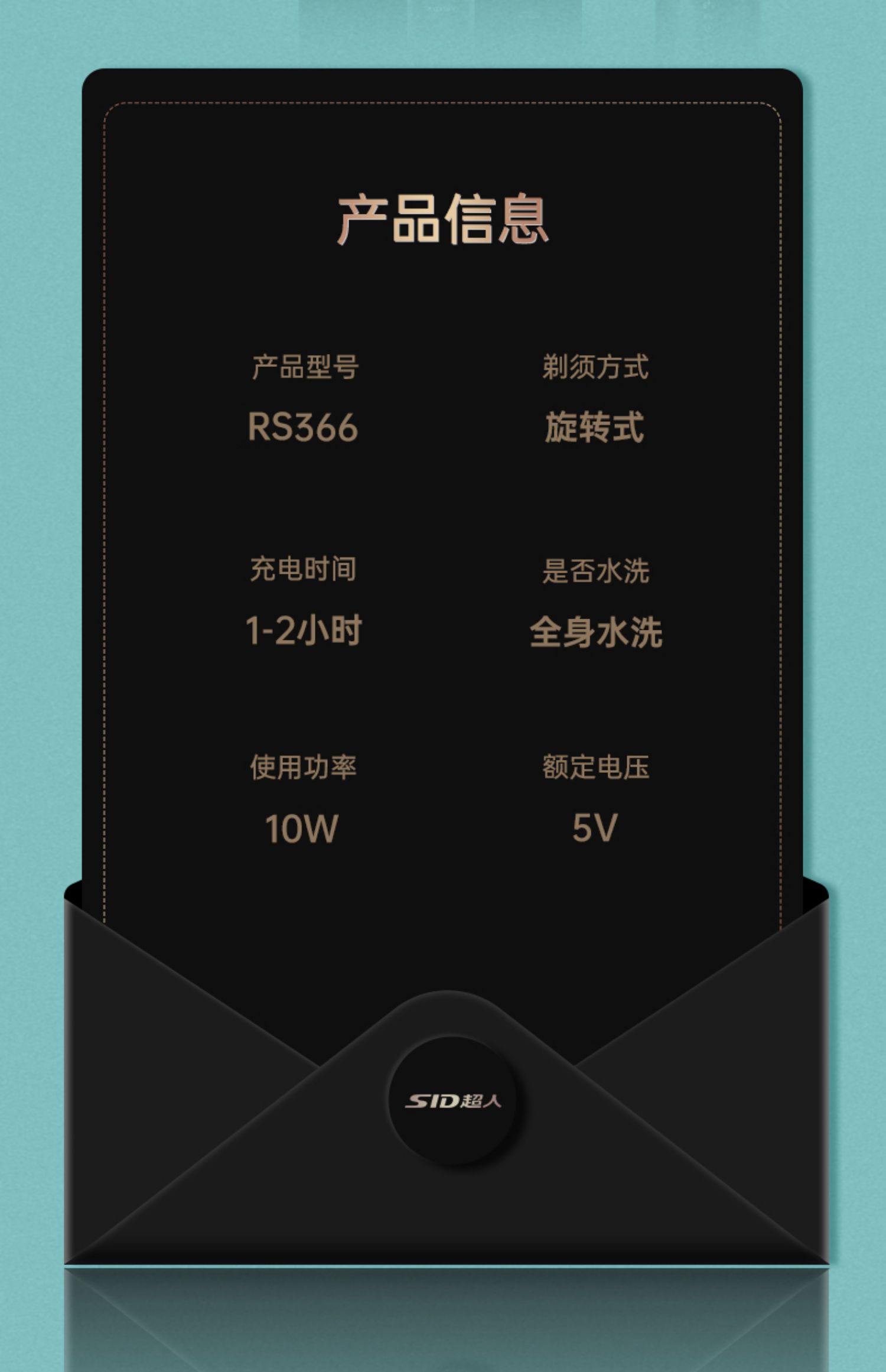 • 商品名称:SID/超人RS366剃须刀智能充电显示变速调档剃须刀水洗刮胡刀快充