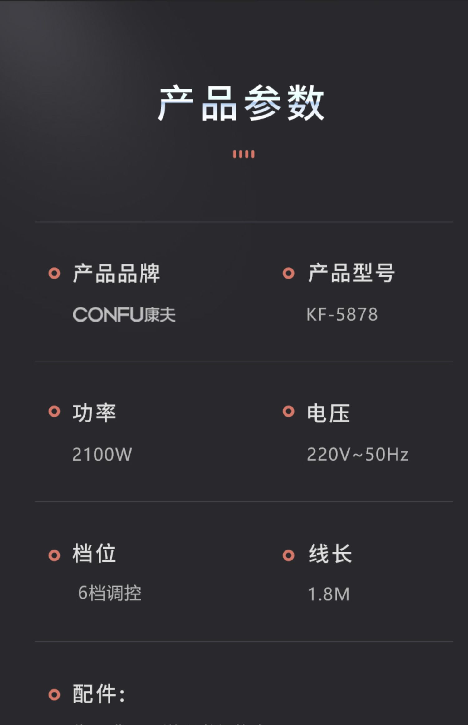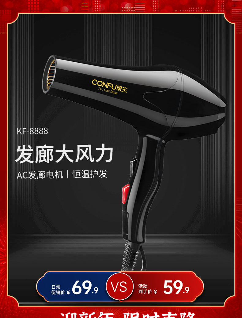 • 商品名称:康夫电吹风机家用负离子护发发廊风筒理发店速干发型师专用大功率