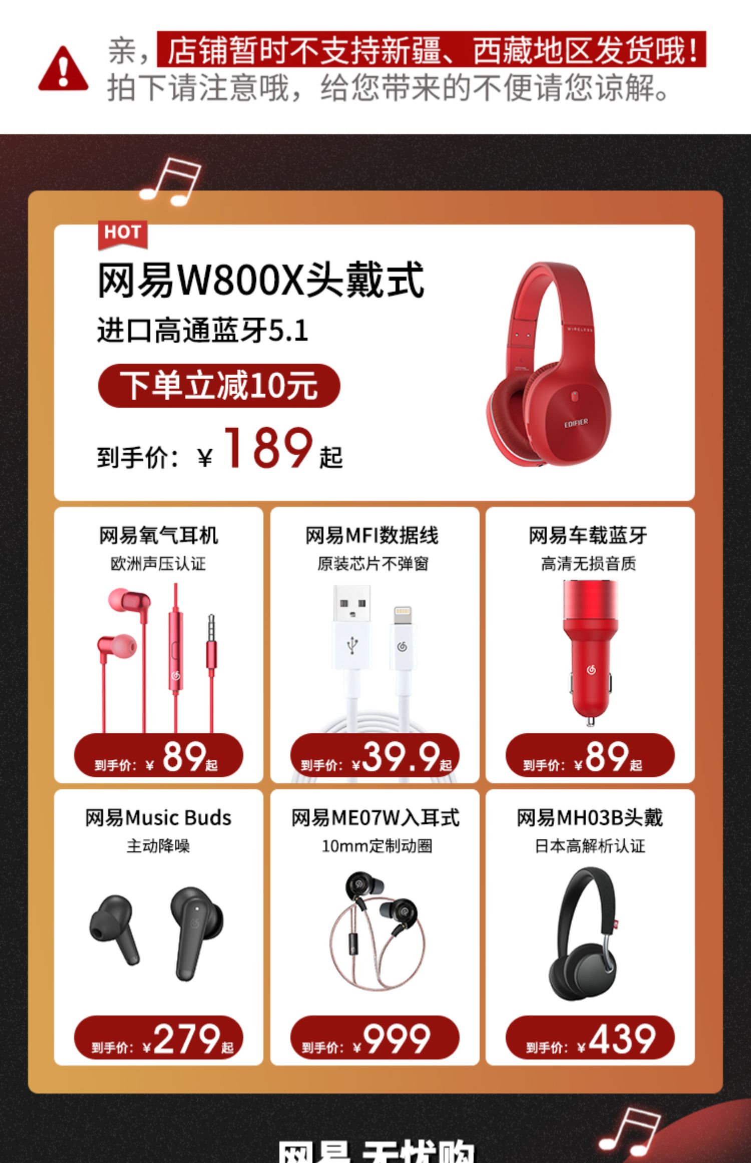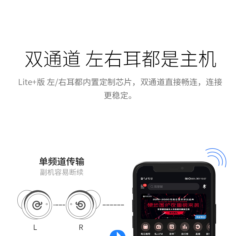 • 商品名称:网易 云音乐蓝牙耳机真无线入耳式运动降噪耳麦适用于华为苹果通用单双耳防水隐形超长待机高音质游戏耳塞式