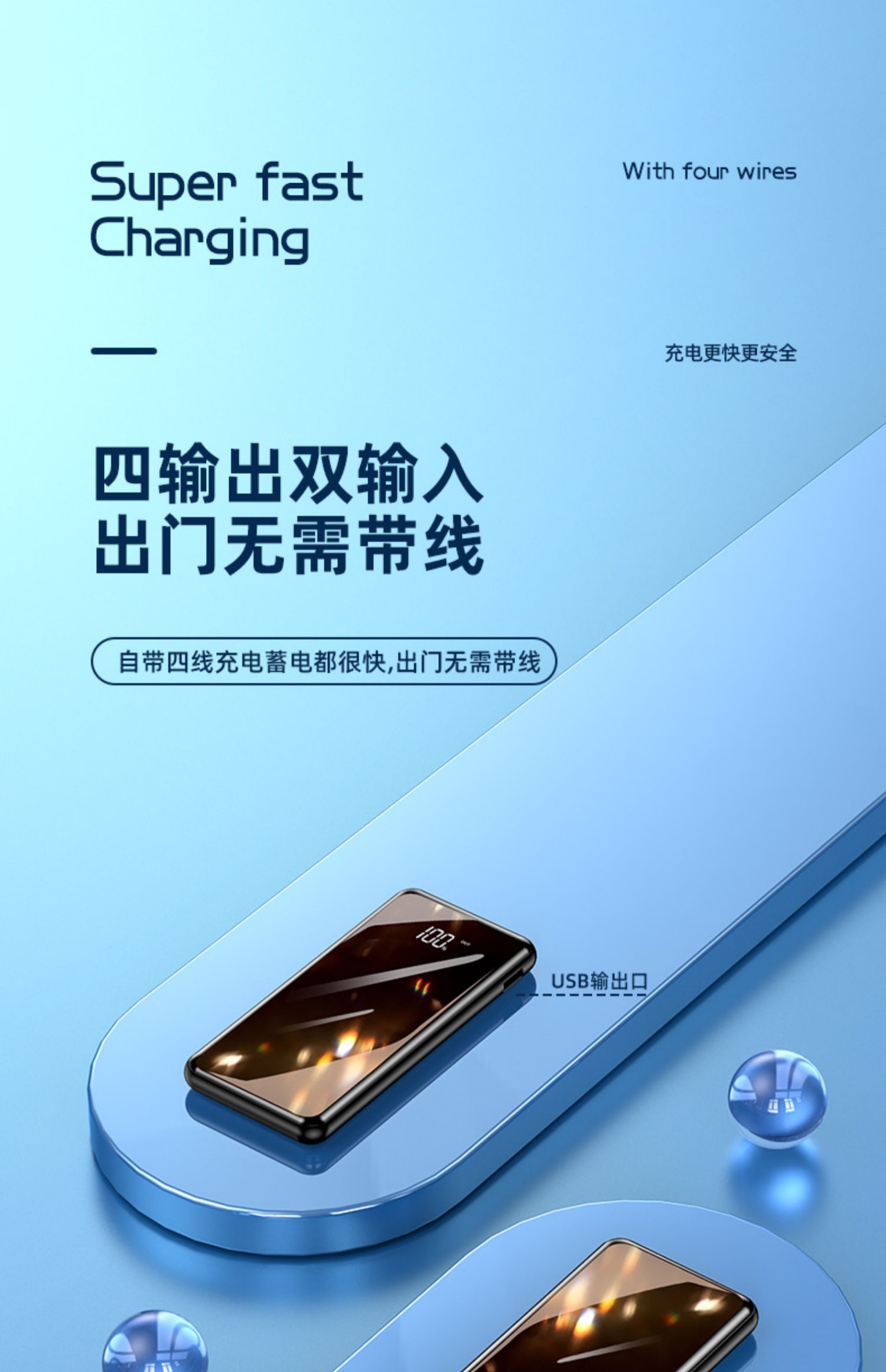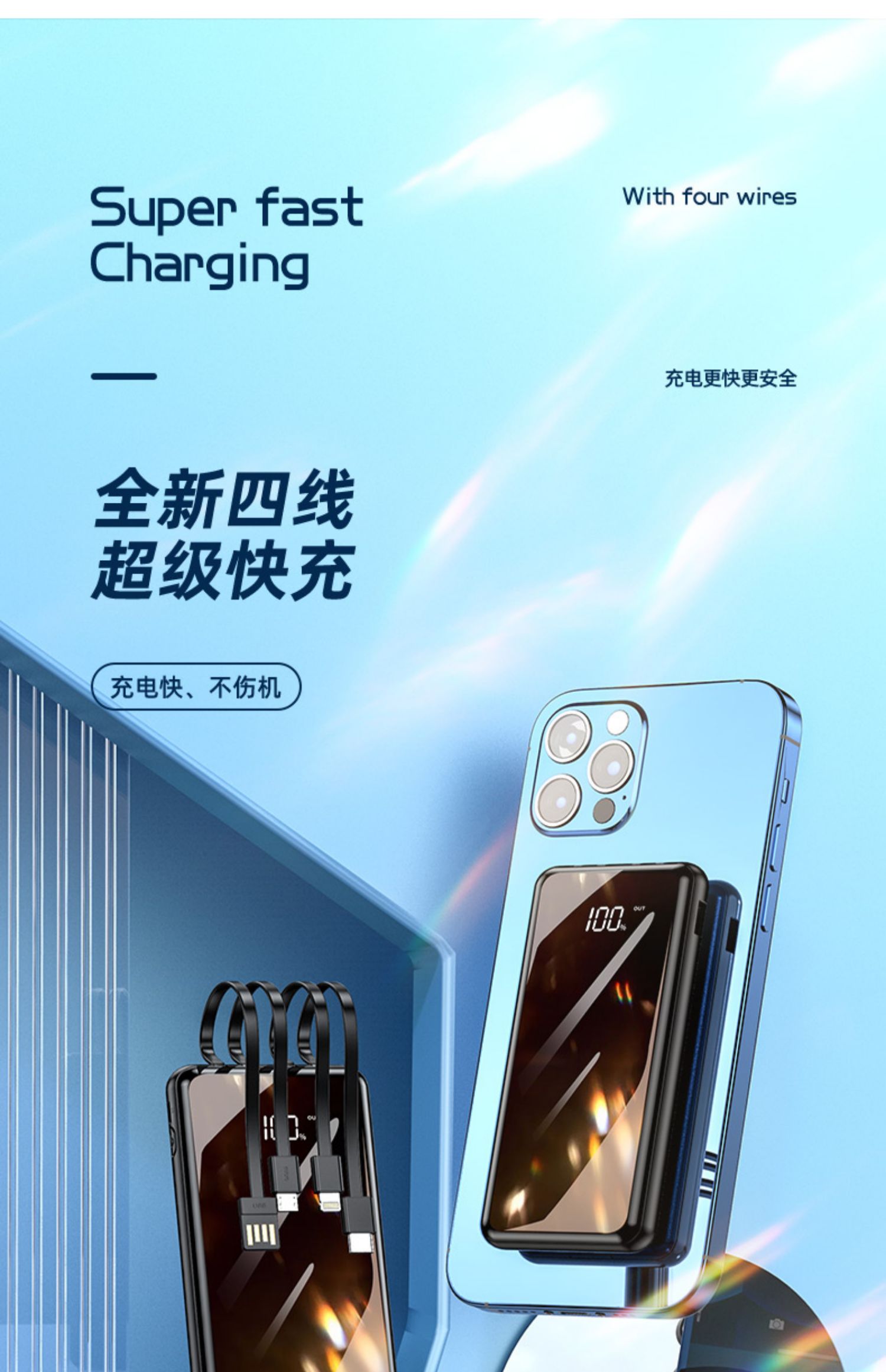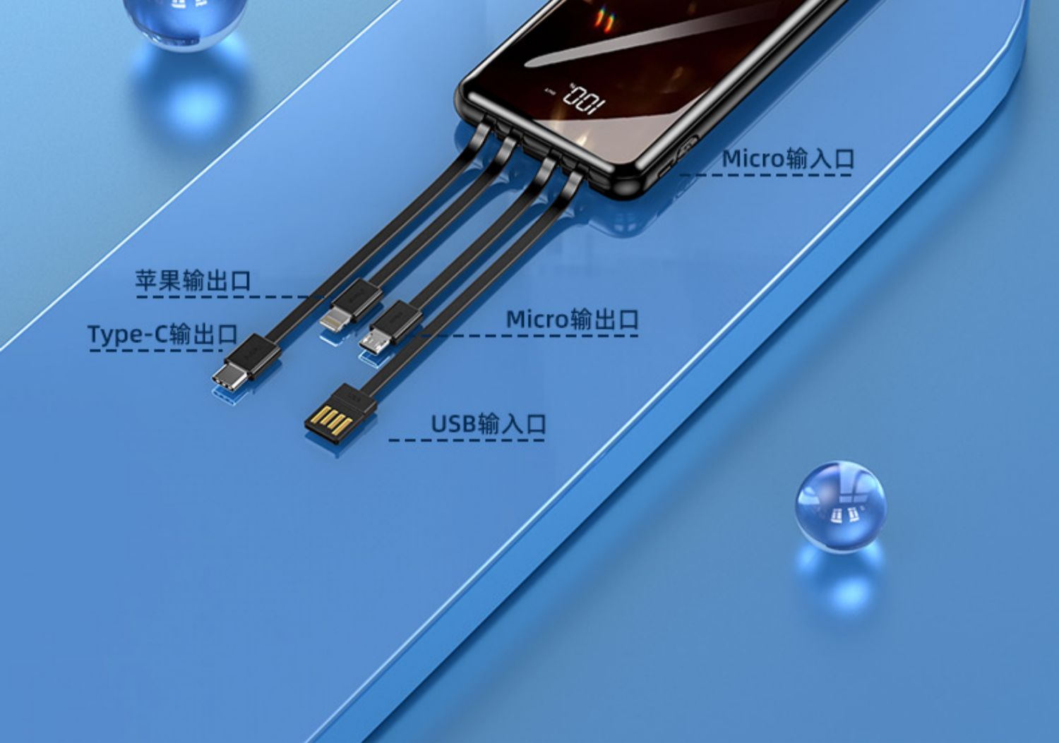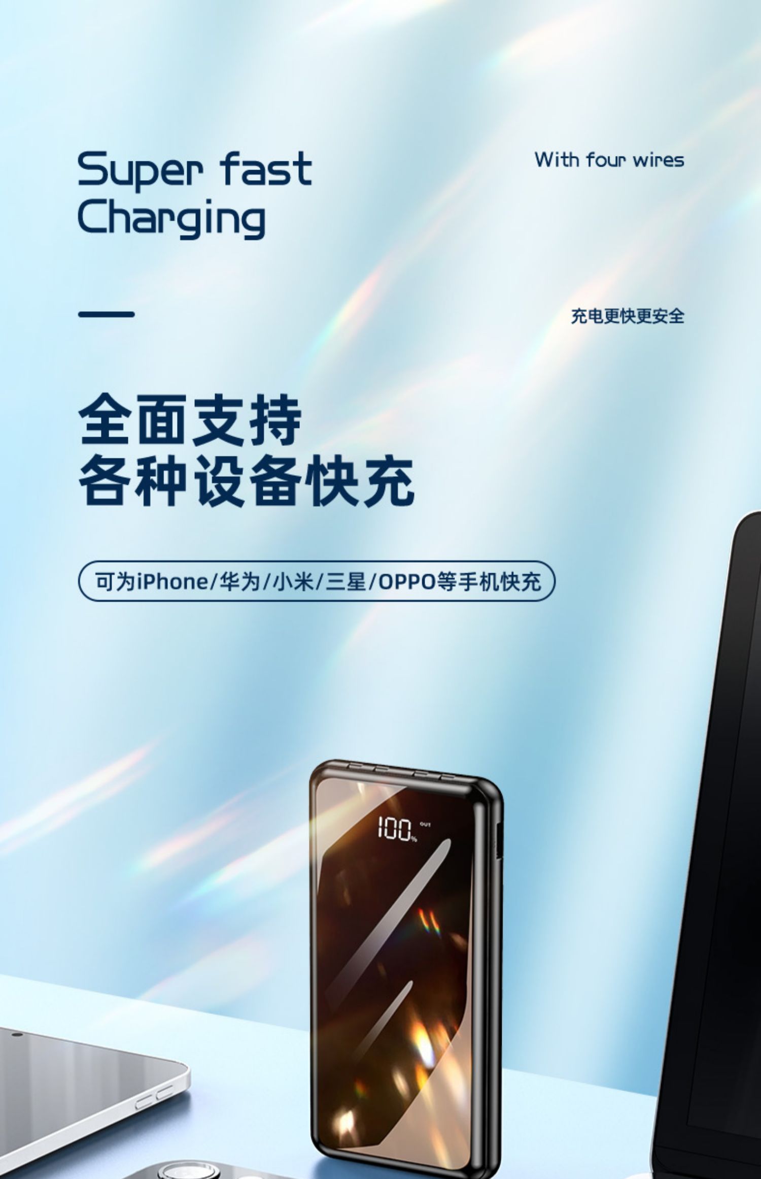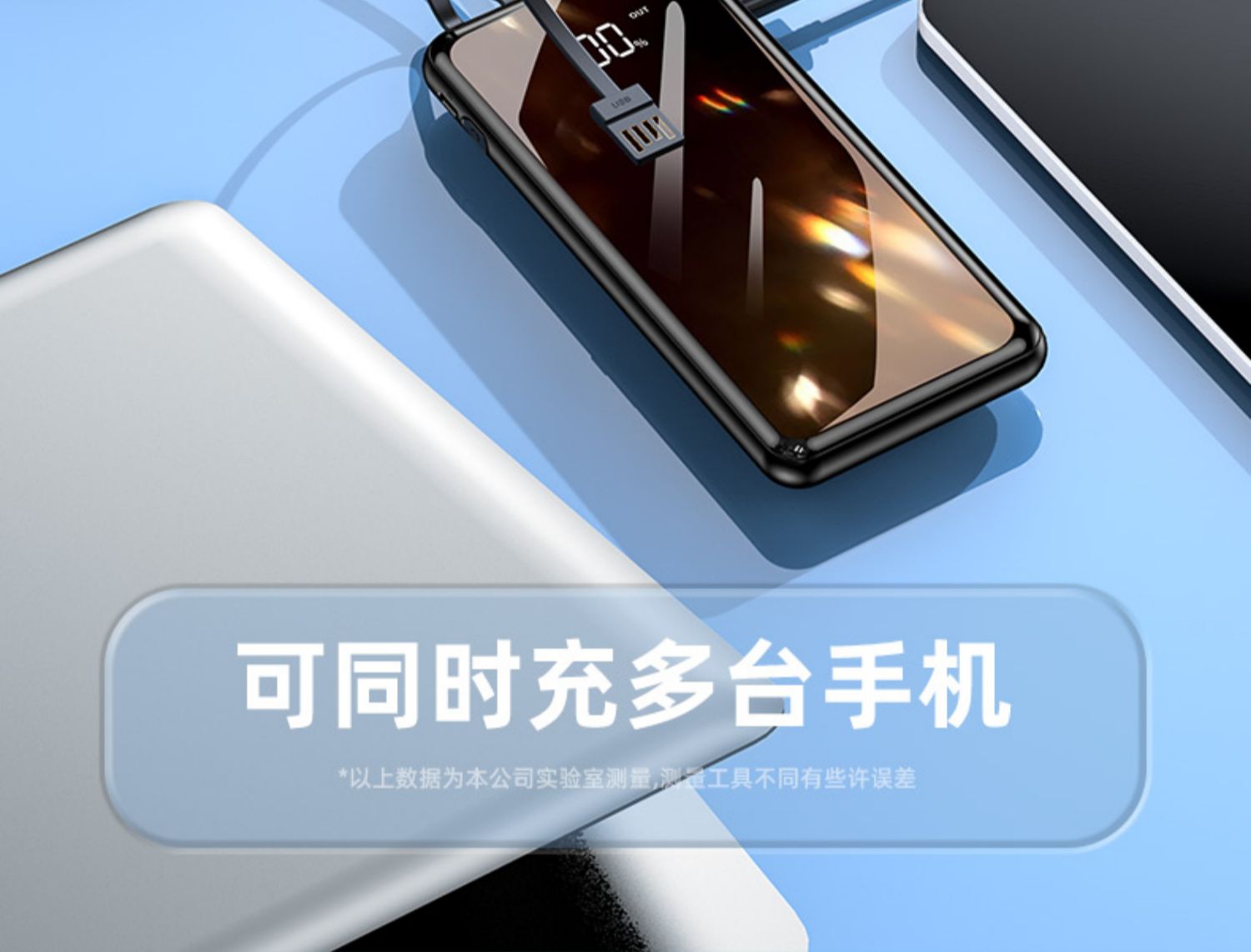 • 商品名称:自带线三合一充电宝20000毫安超薄小巧便携快充大容量适用华为小米苹果手机专用1000000超大量移动电源