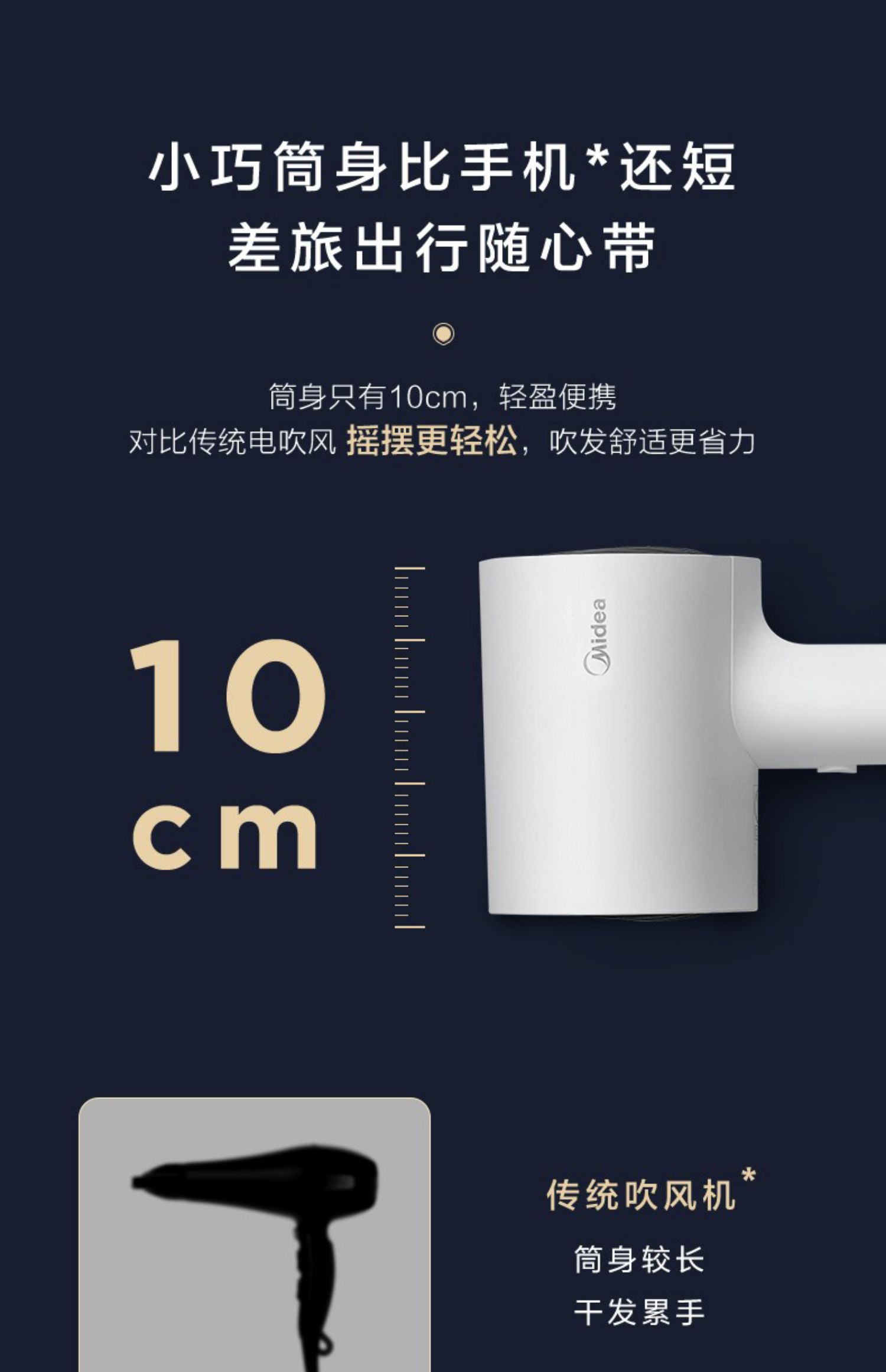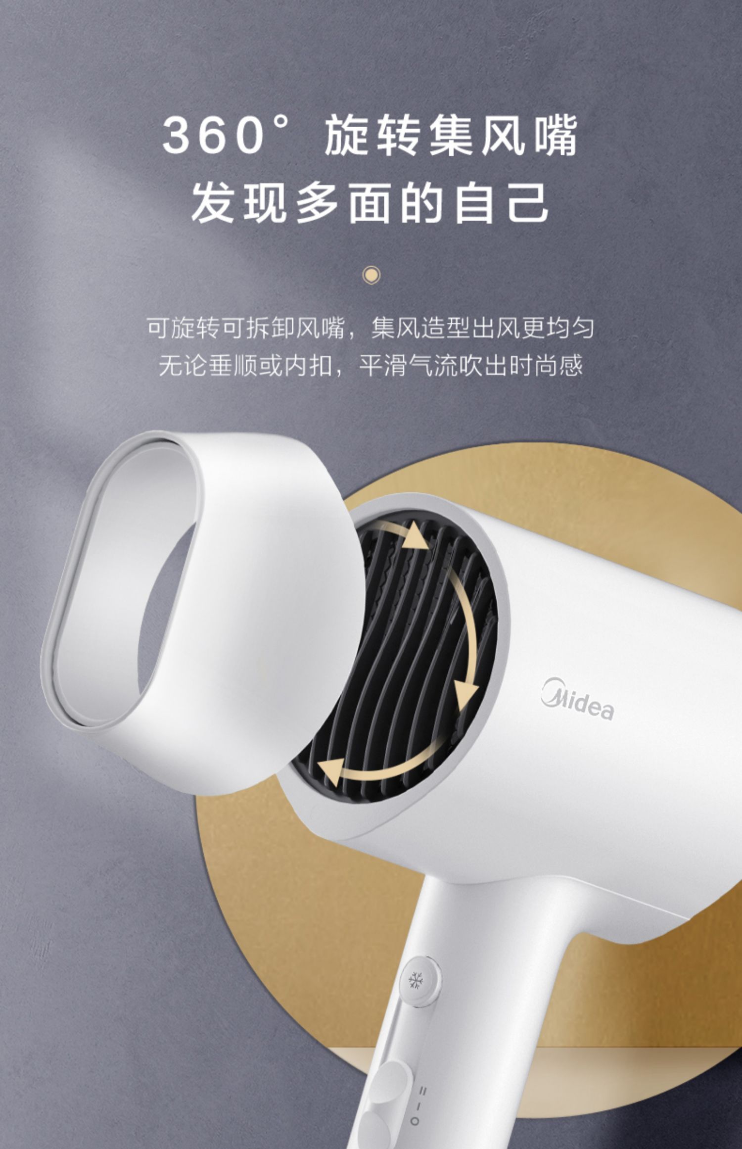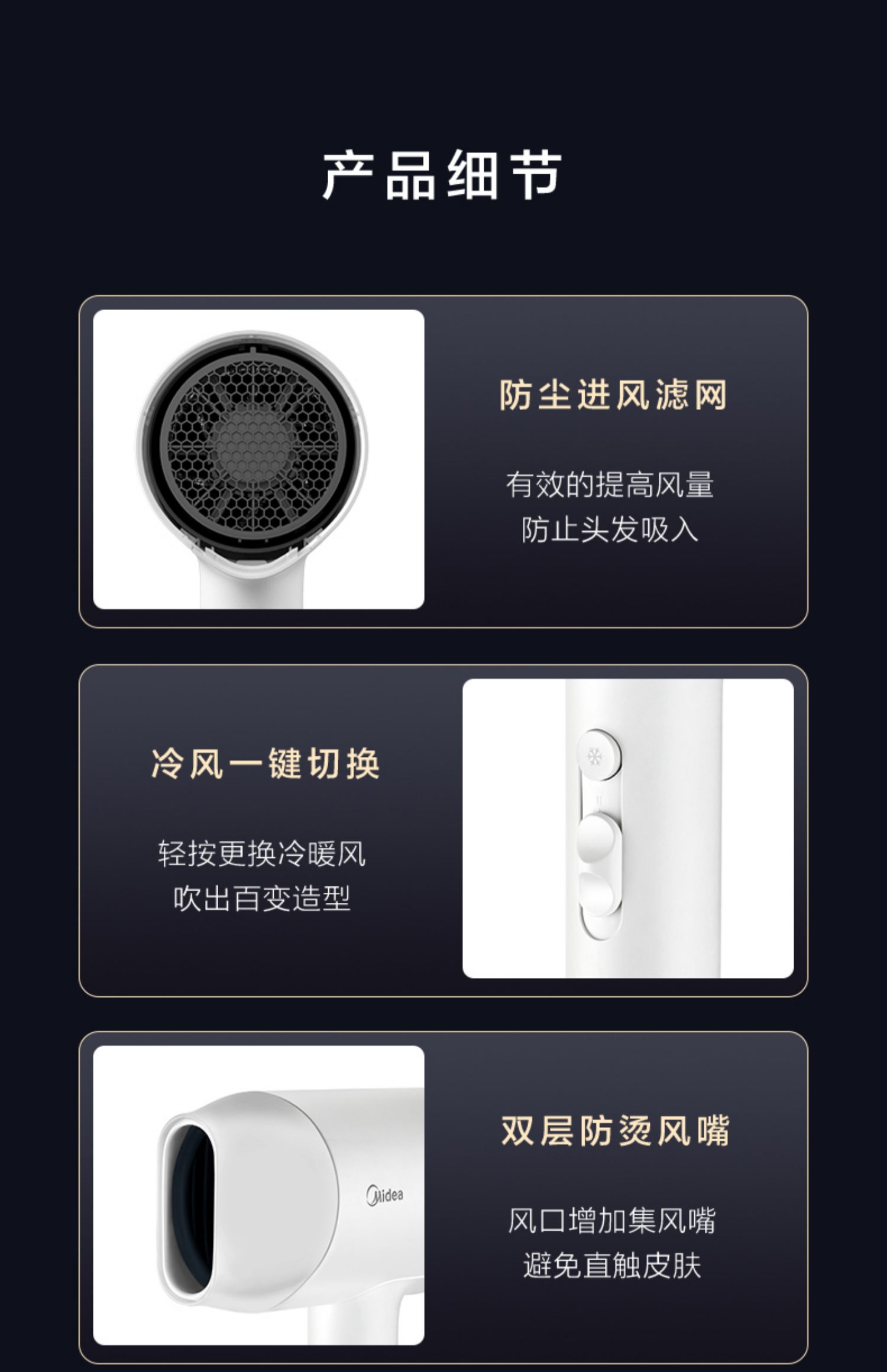 • 商品名称:美的电吹风机负离子小米白家用护发大功率速干发廊宿舍学生吹风筒
