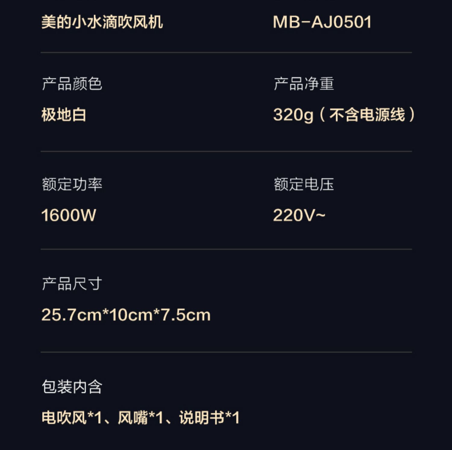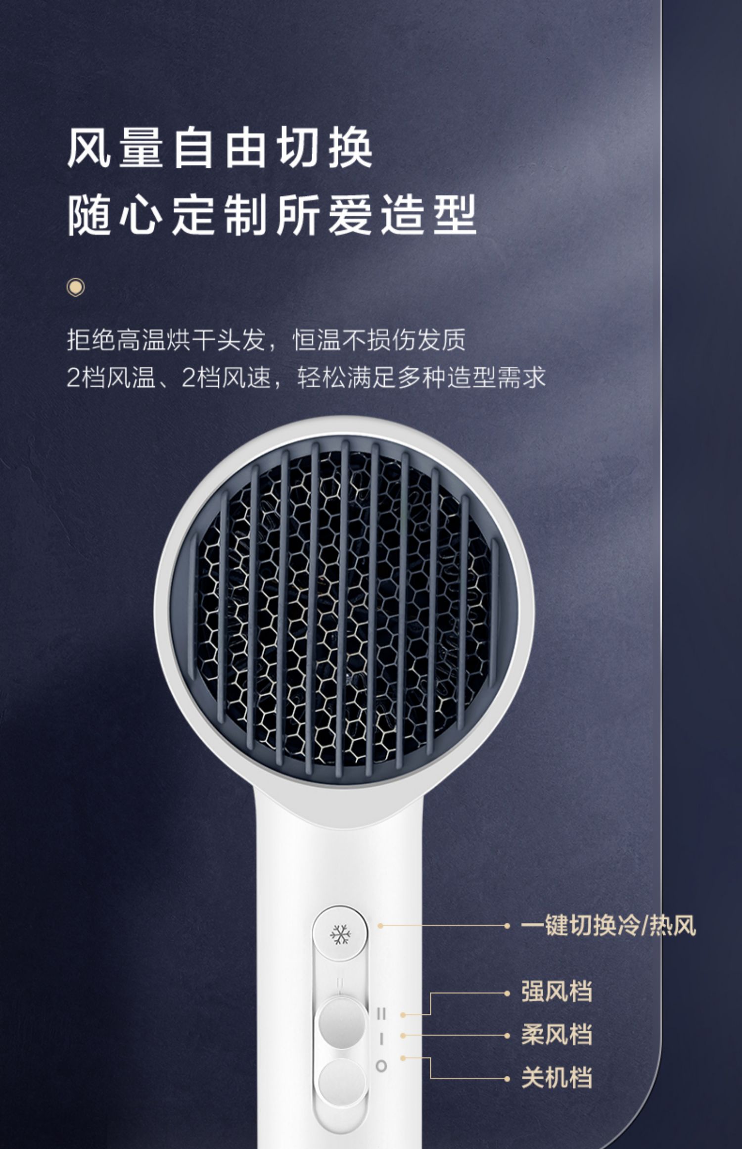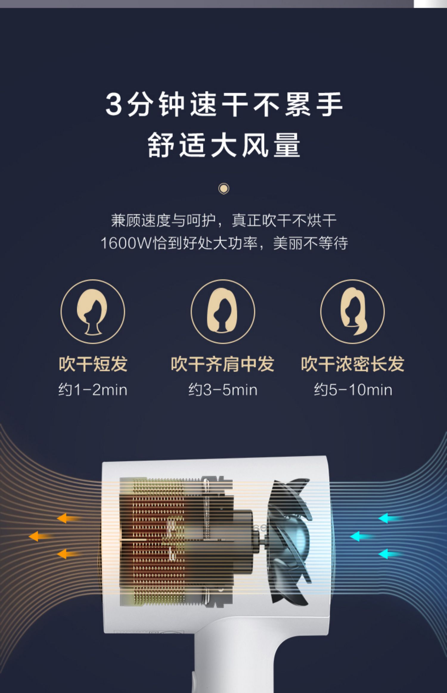 • 商品名称:美的电吹风机负离子小米白家用护发大功率速干发廊宿舍学生吹风筒