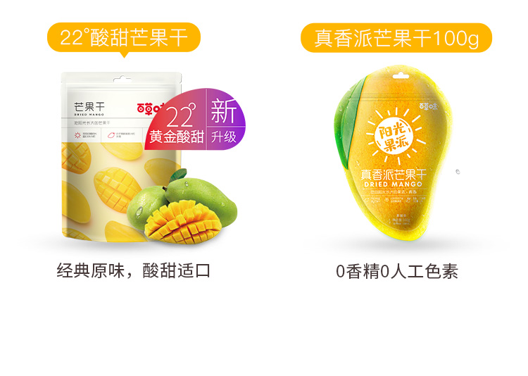 • 商品名称:【百草味芒果干120gx3】水果干厚切果脯蜜饯网红爆款小吃休闲零食