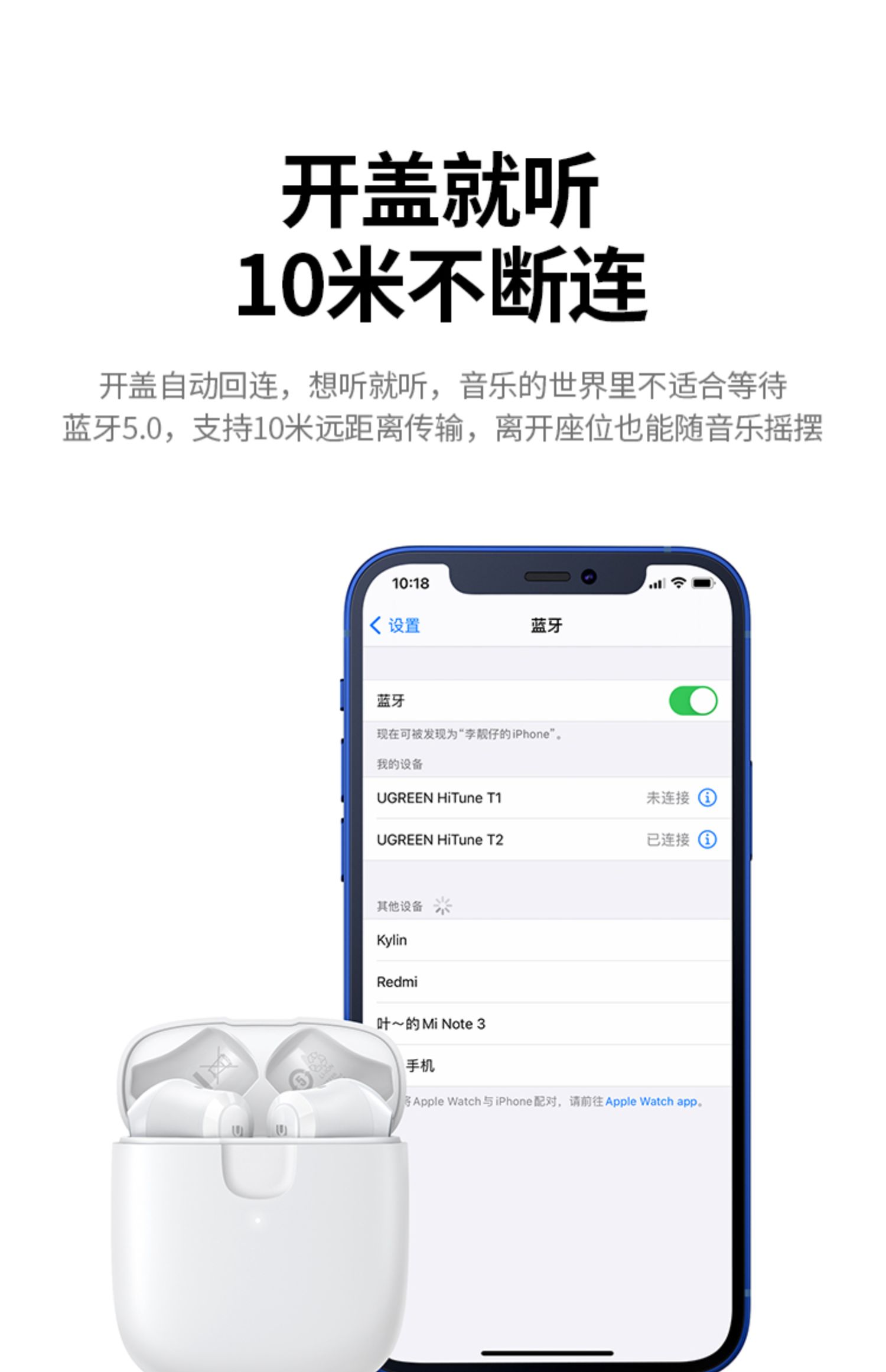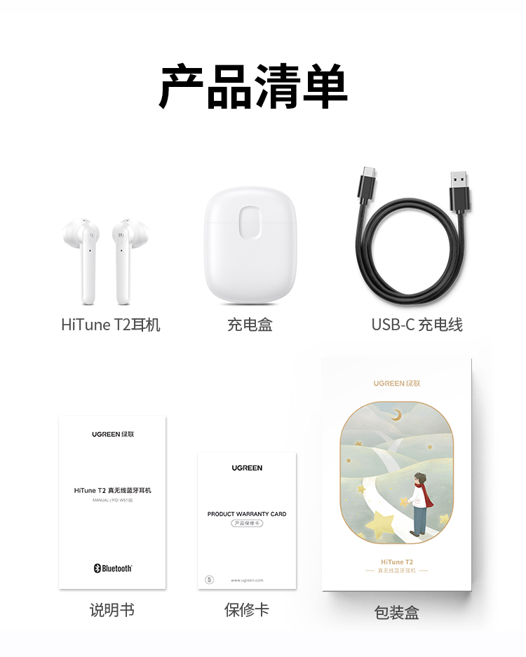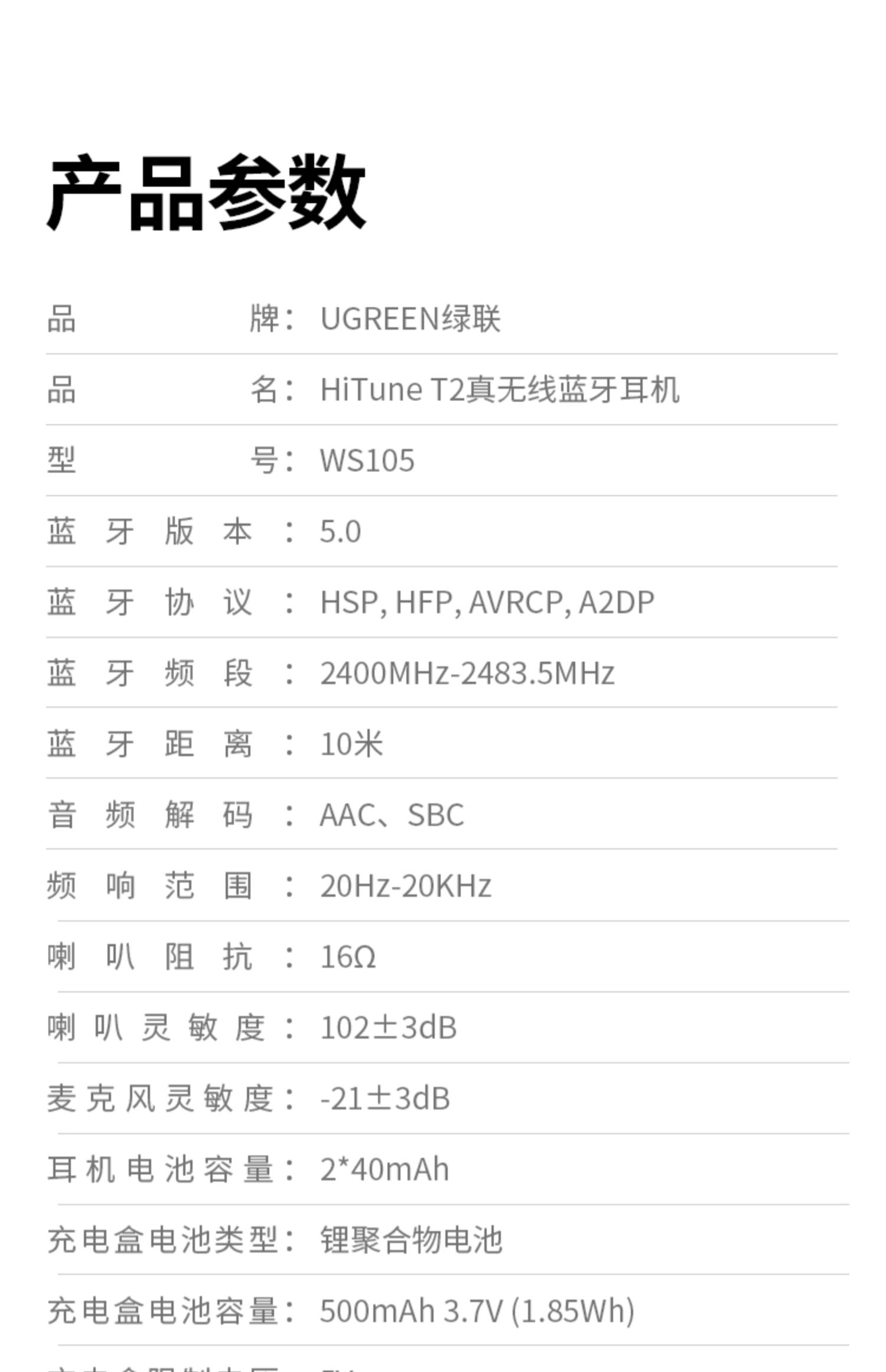 • 商品名称:绿联HiTune T2真无线蓝牙耳机tws半入耳式2021年新款男女吃鸡游戏降噪高音质运动适用于华为苹果小米vivo手机