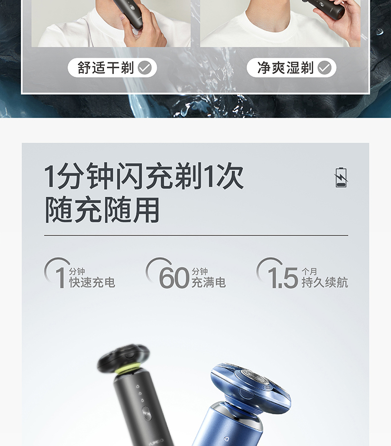 • 商品名称:允宝剃须刀男士电动快充水洗三刀头刮胡刀2022新款礼盒套装送男友