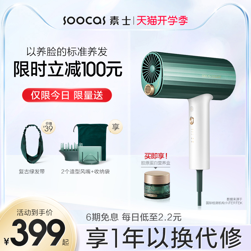 素士发膜吹风机家用负离子护发大功率胶原蛋白电吹风筒冷热风速干