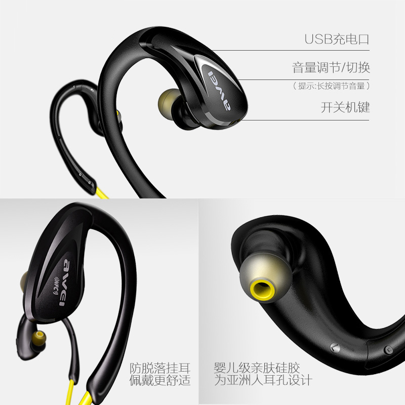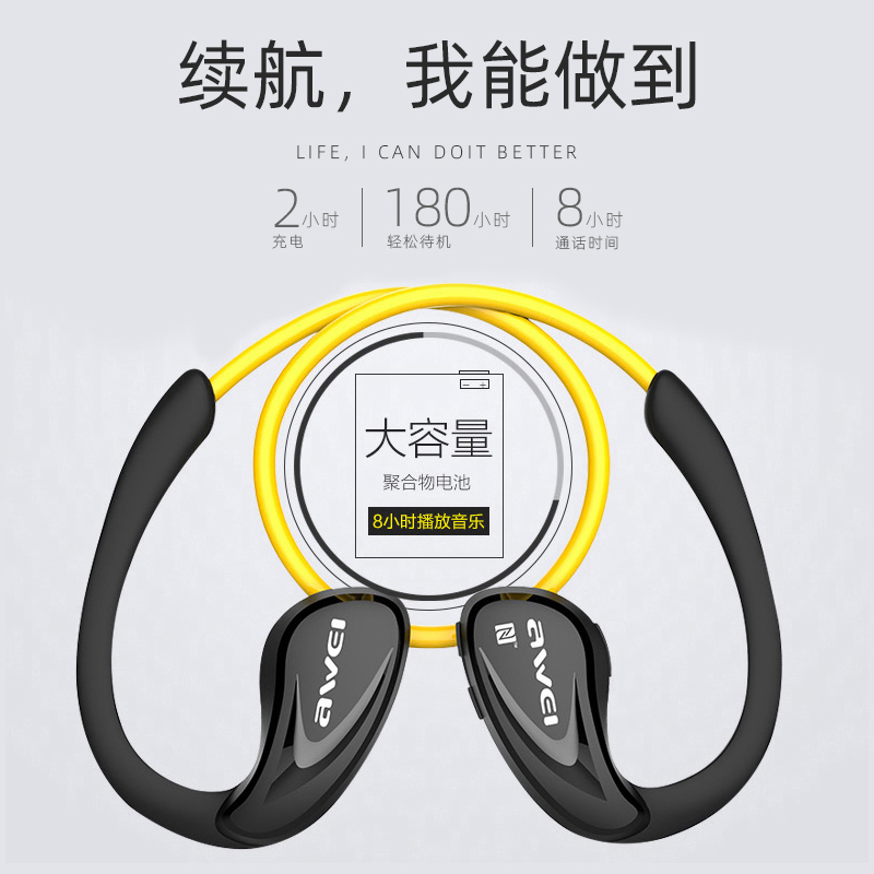 • 商品名称:AWEI用维A880BL运动型蓝牙耳机无线跑步专用狂甩不掉健身防水高音质男女士款适用于苹果华为超长续航待机挂耳