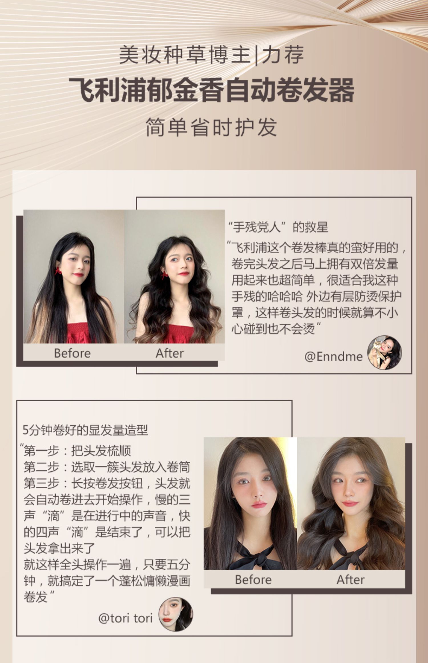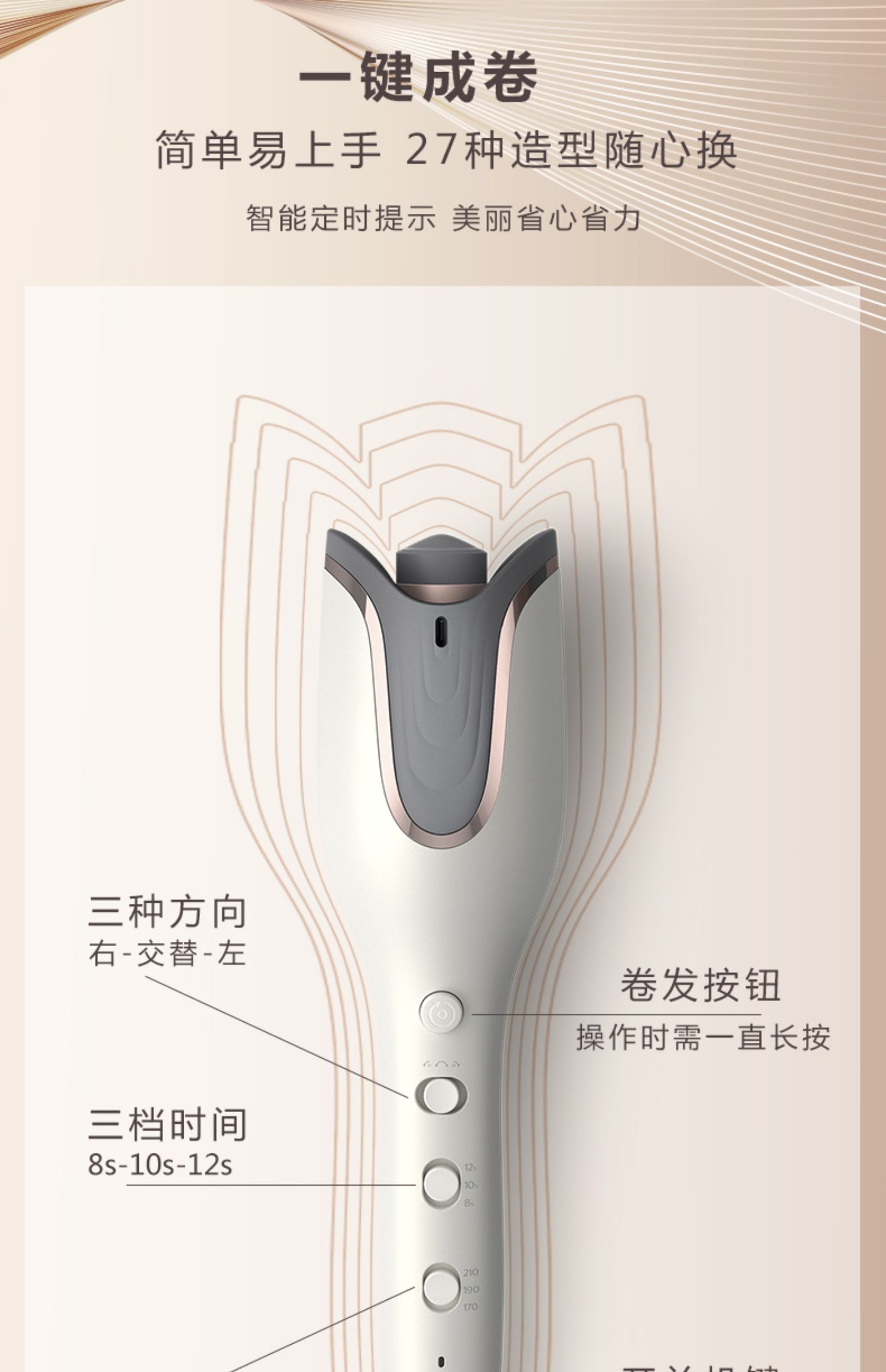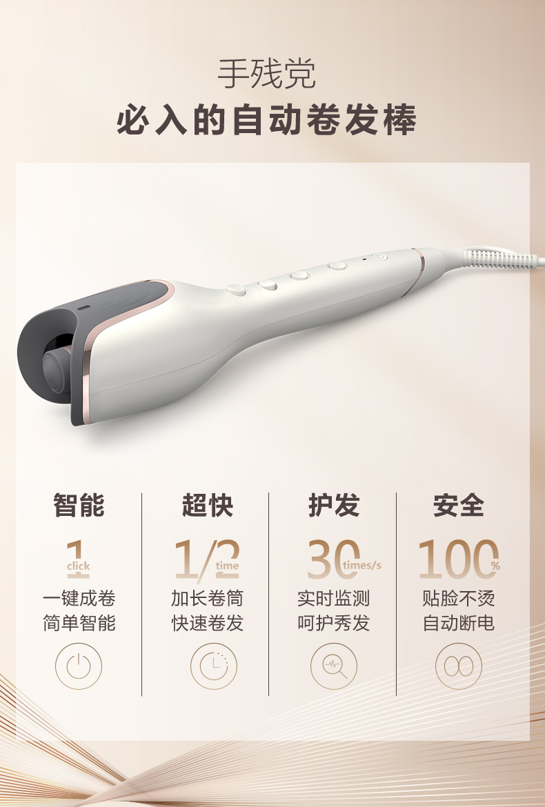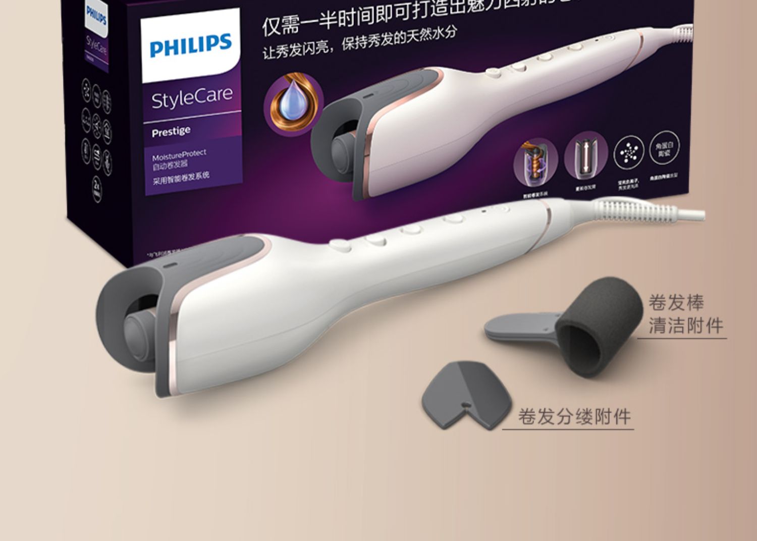 • 商品名称:飞利浦郁金香全自动卷发棒大卷蛋卷头小型卷发神器自动旋转BHB878
